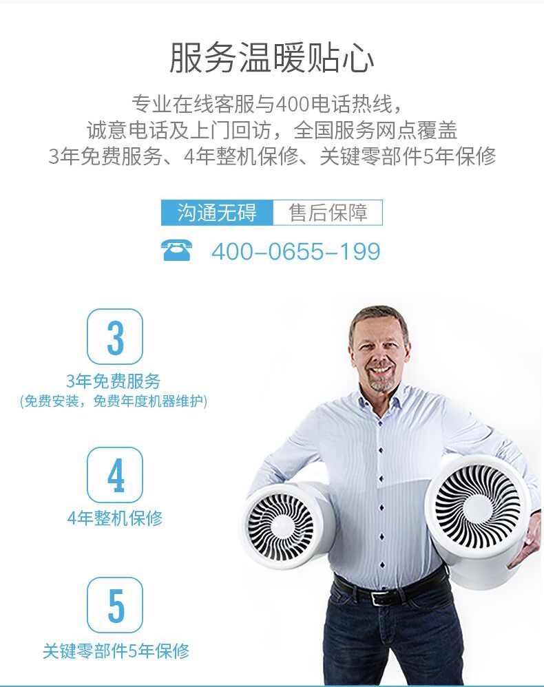 售后规则:新风机主质保4年,主要部件:如电机质保5年,监控器质保2年。
