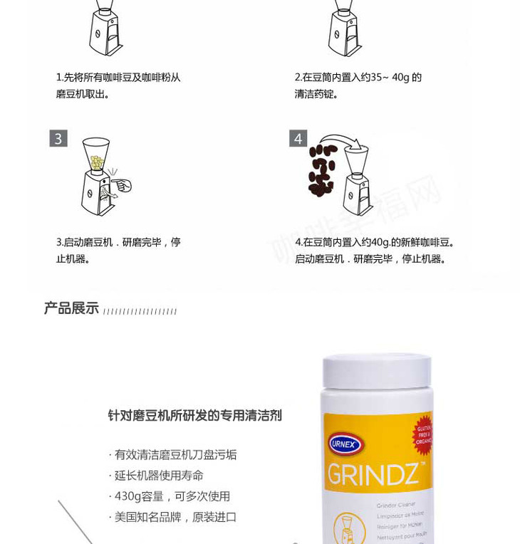 【咖啡机清洗药片】Urnex 咖啡磨豆机清洗药片 430g/罐