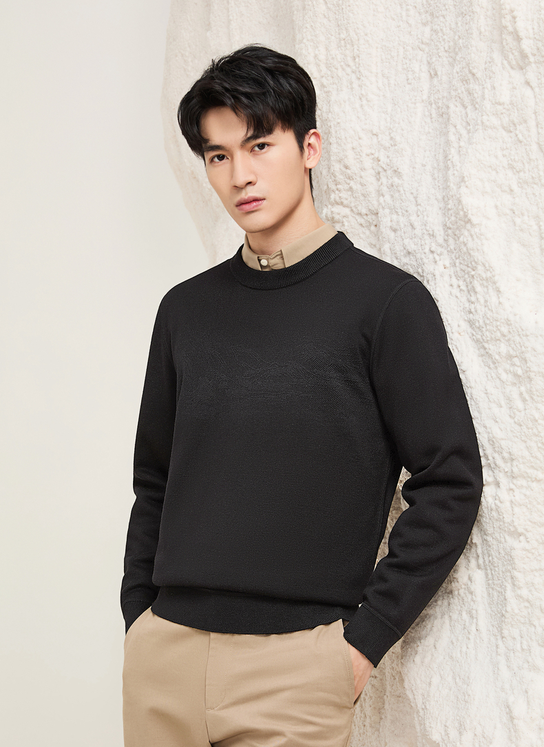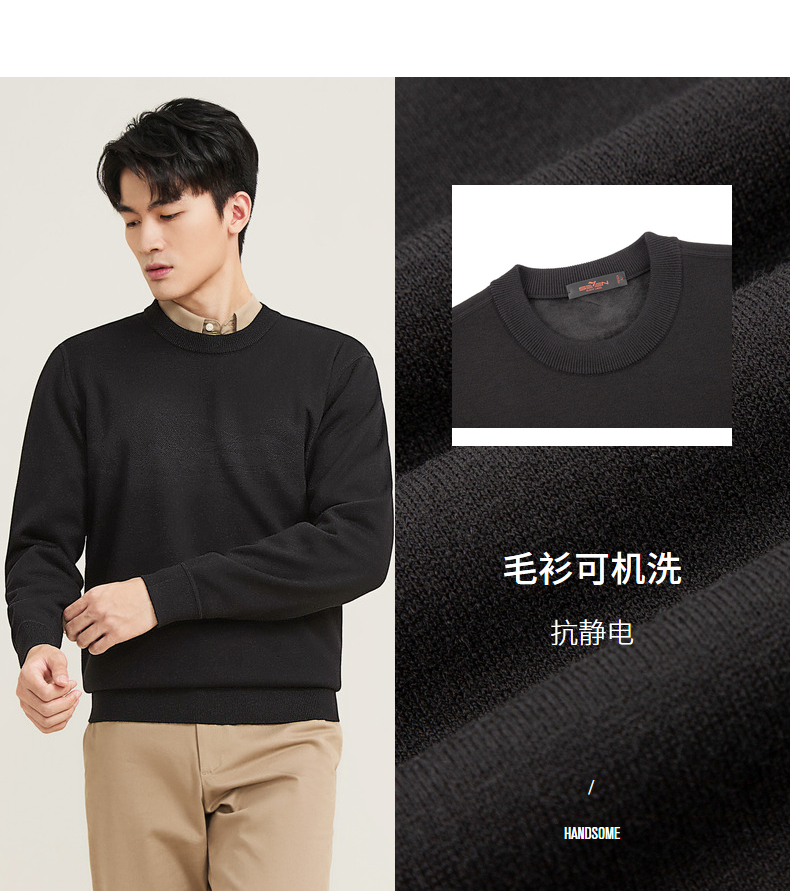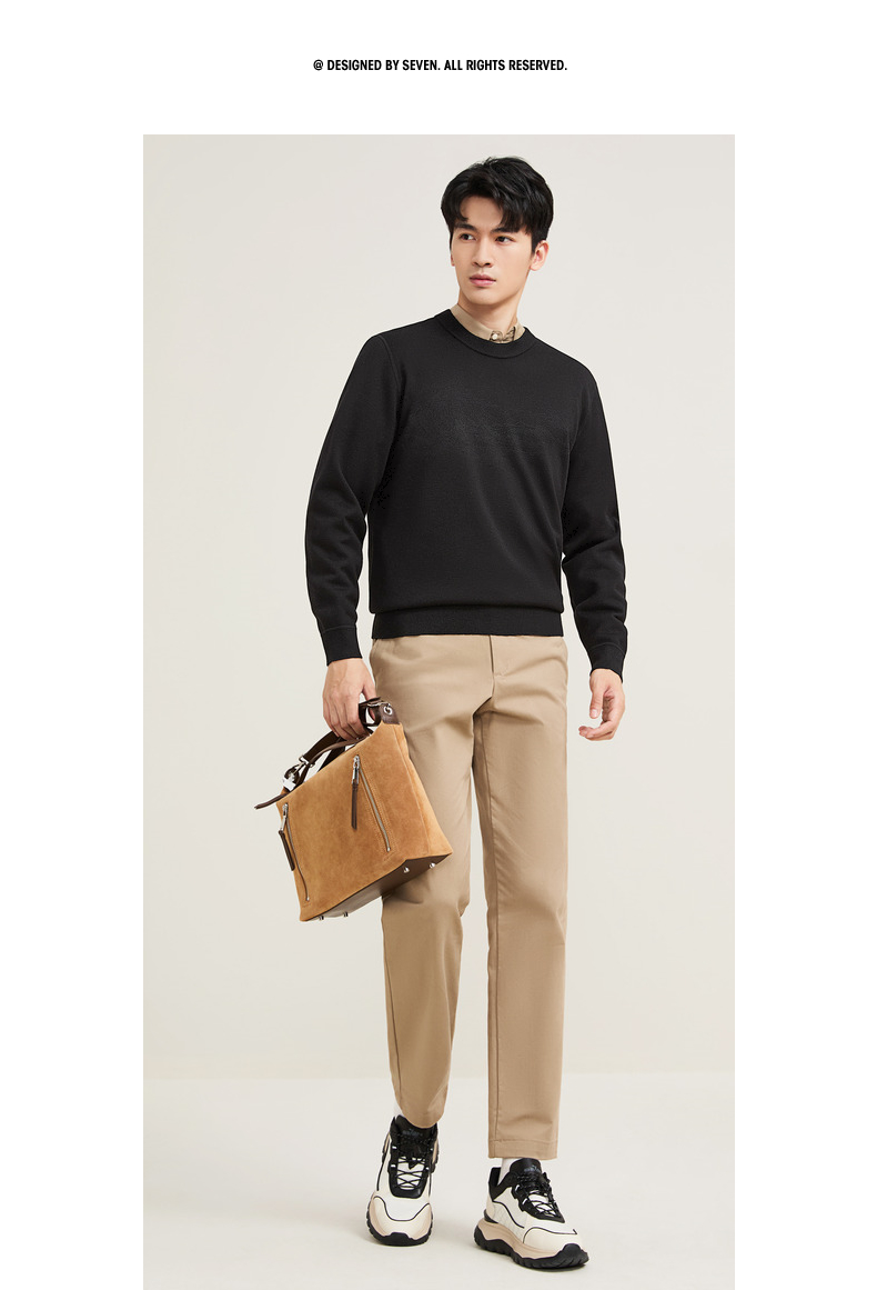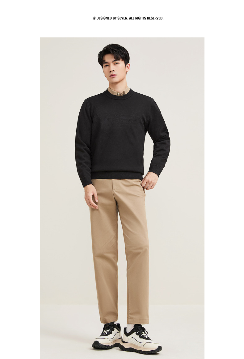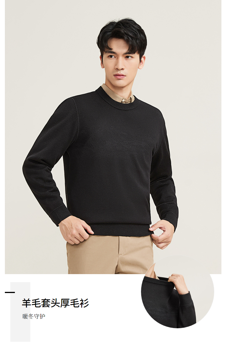 【含羊毛/桑蚕丝/加绒】柒牌套头厚毛衫2025新款圆领抗静电上衣129Y70720