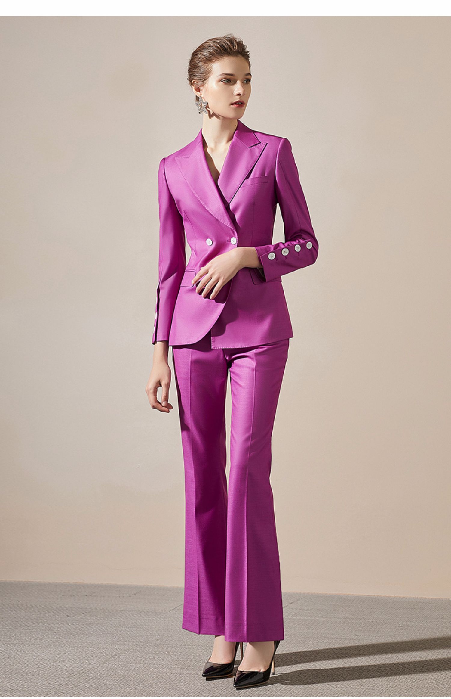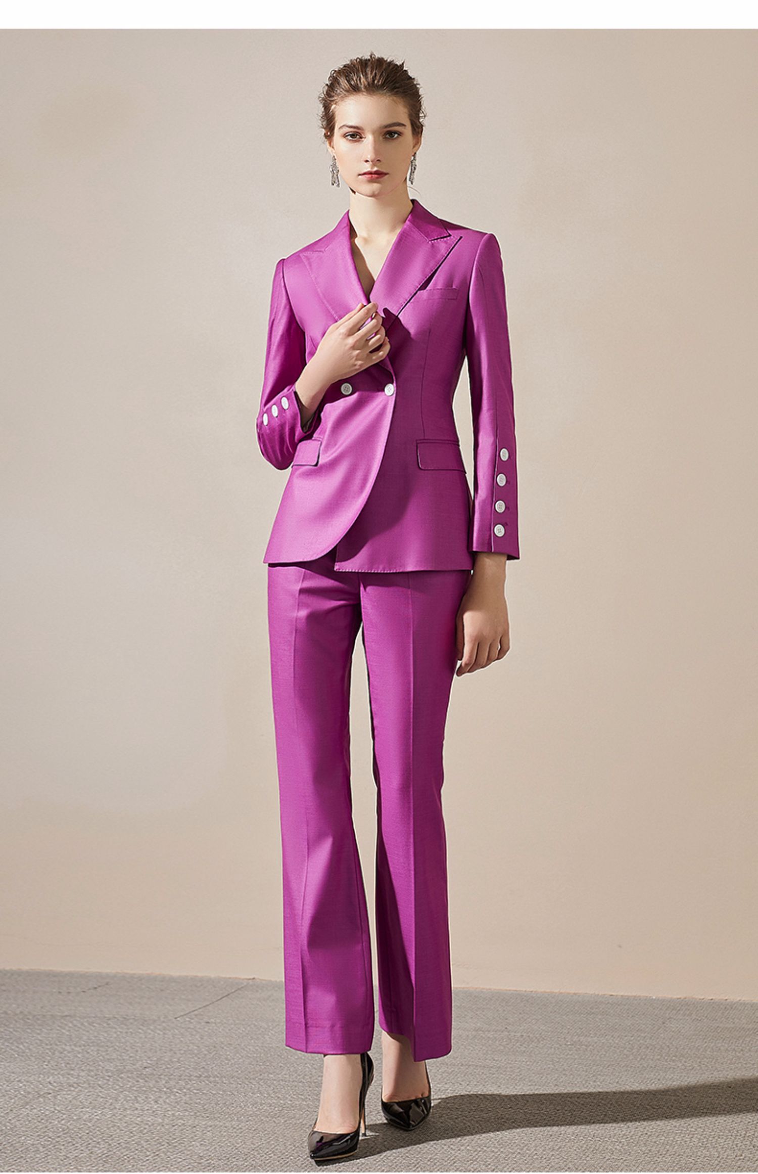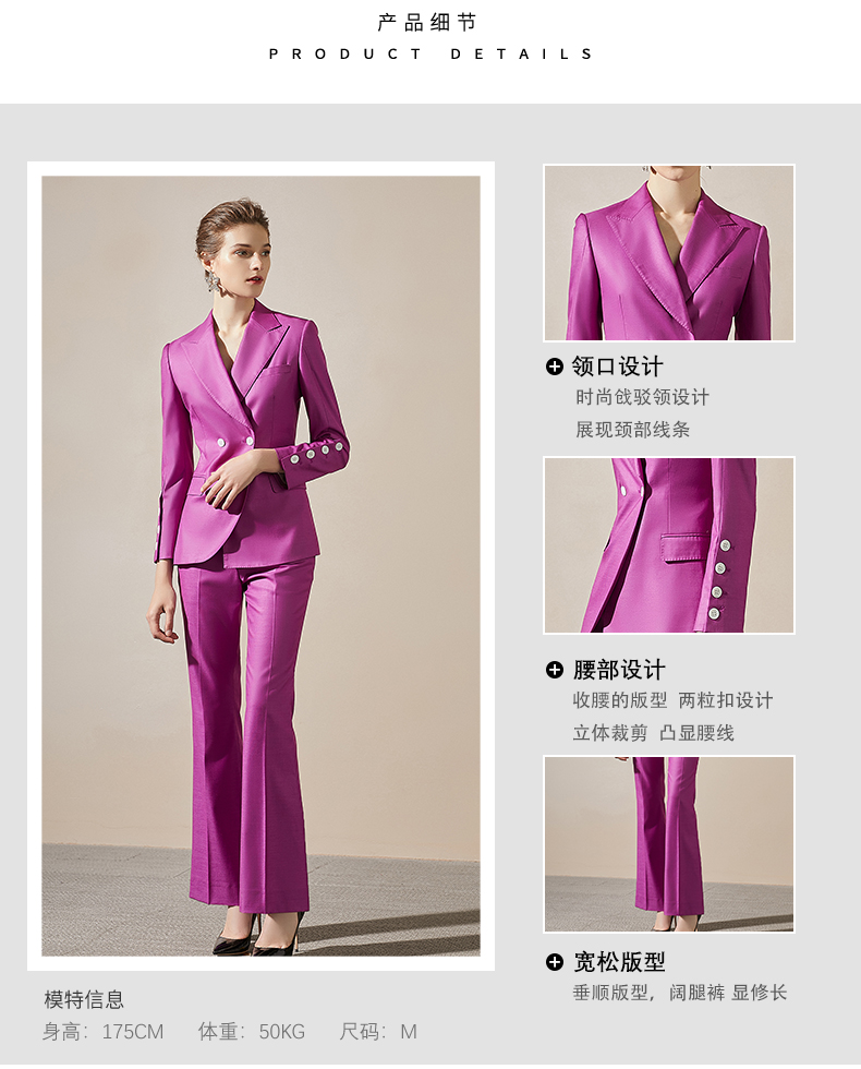 IWY/气质粉色上镜主持西装套装女时尚阔腿裤显瘦职业装美容院工作服233006C1+P6