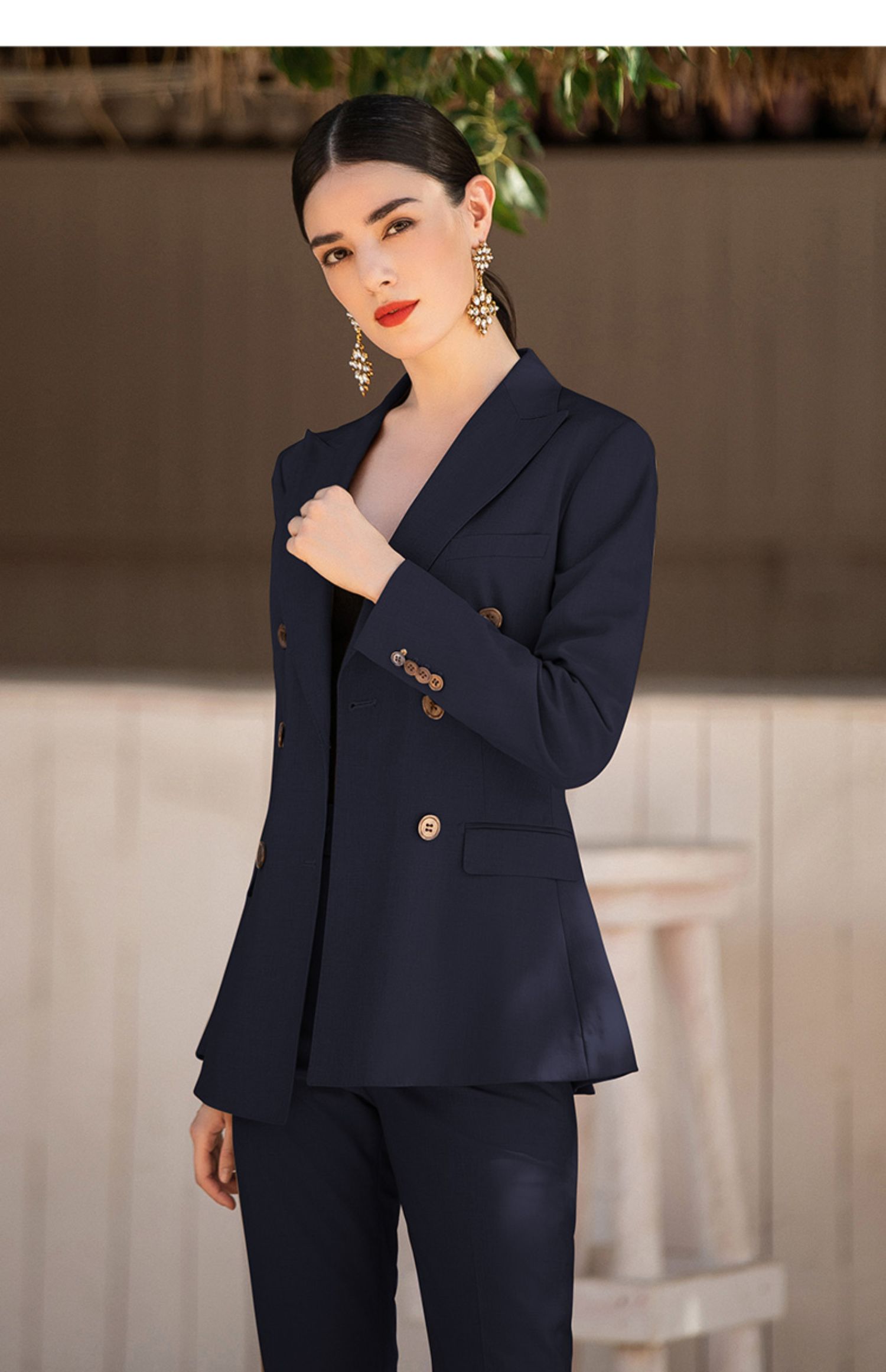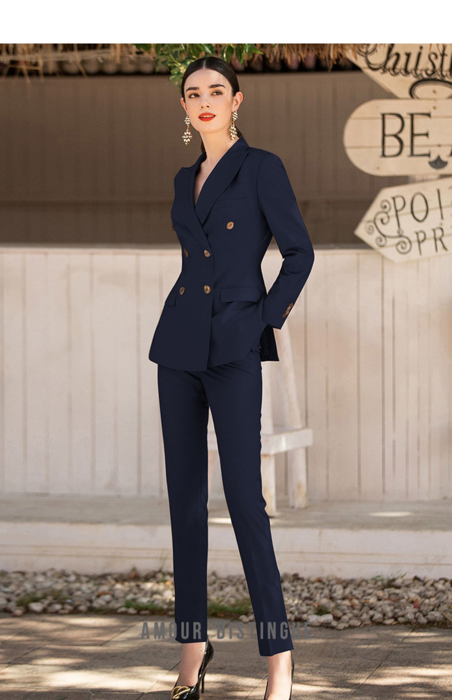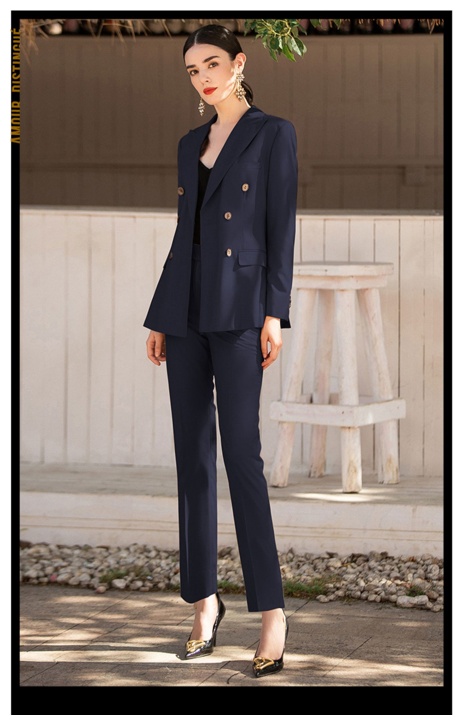 IWY/秋冬季修身显瘦西装套装女蓝色西服售楼部职业装气质工装C13102+P11356