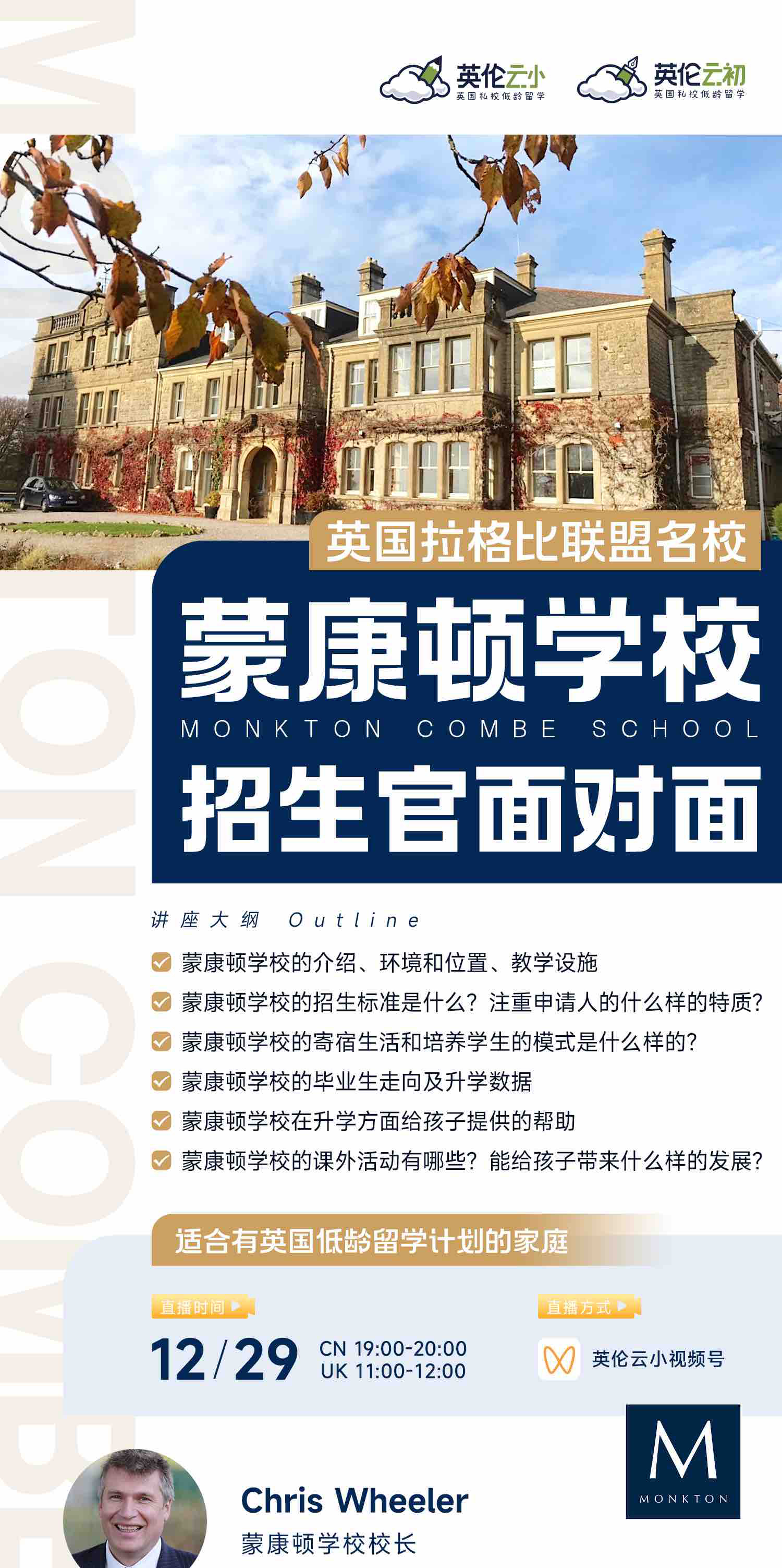 【招生官来了】英国拉格比联盟名校Monkton Combe School 蒙康顿学校 招生官面对面 商品图0