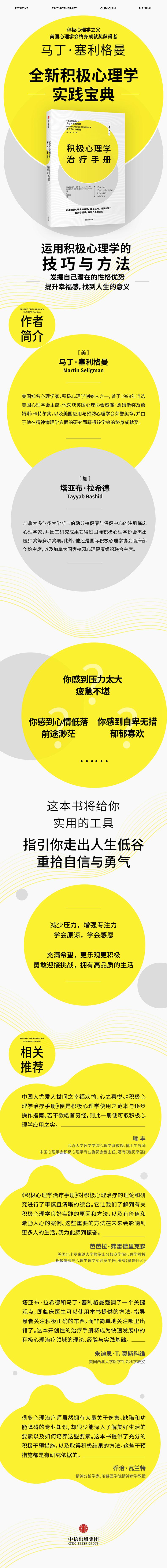 近一个多世纪以来,心理治疗过程通常是假定“通过挖掘过去的创伤、纠正错误的思维和恢复功能性失调的关系”,这种疗法是有效果的。然而,在急于发现和减少精神障碍症状的过程中,有一个重要的因素被忽视了:积极的态度与思维模式。积极心理学领域的知名专家马丁·塞利格曼与塔亚布·拉希德认为,提高幸福感,建立人格优势和美德,应该成为培养积极心理的明确目标。本书为我们提供了一套基于积极心理学理论的实践方法。本书首先概述了积极心理学的理论框架,探索了人类的性格优势,然后介绍了积极心理学的实践方法、过程及变革机制。本书后半部分包含15种积极心理学的实践方法,每种方法都包含其核心概念、具体实践技巧及相关参照表。本书提供的方法能够帮助读者找到人生意义,让大家通过这些方法有效地提升自己的幸福感,同时减少压力,增强专注力,能够高效快乐地工作与生活。