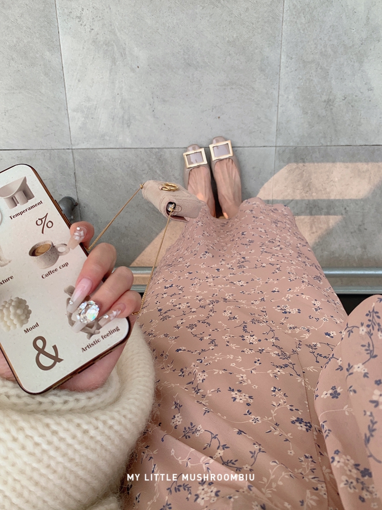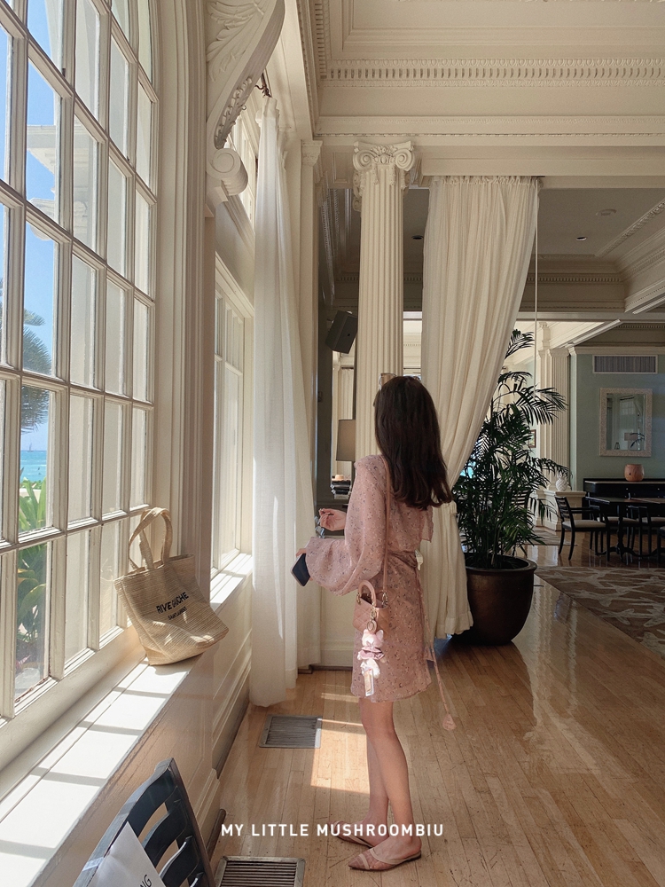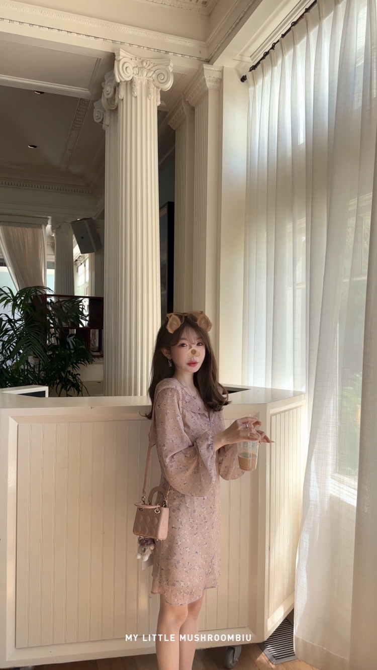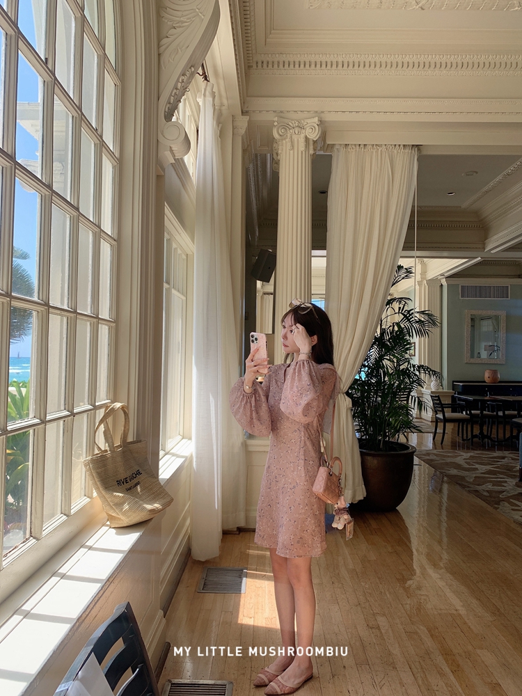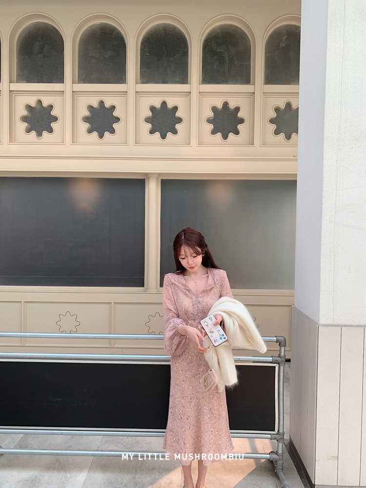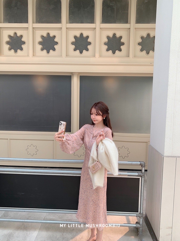 金蘑菇菇 crush 假日情诗 / 法式v领灯笼袖碎花裙高腰仙女连衣裙