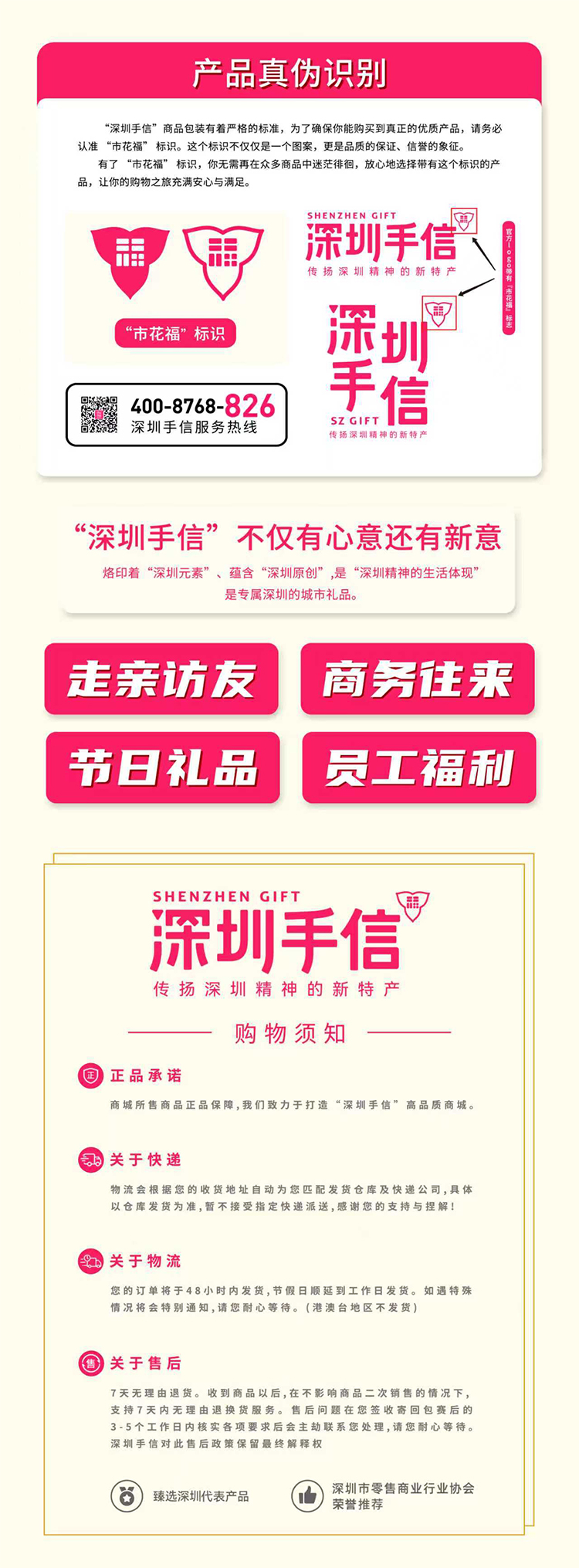欢迎关注【深圳手信商城】 深圳手信是城市礼品的选购平台,臻选深圳八大优势产业代表产品,深圳市零售商业行业协会推荐。 闭着眼睛挑,每一份都是好礼,是商务往来、旅游出差、走亲访友、员工福利的好礼