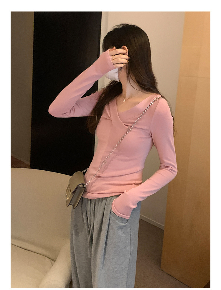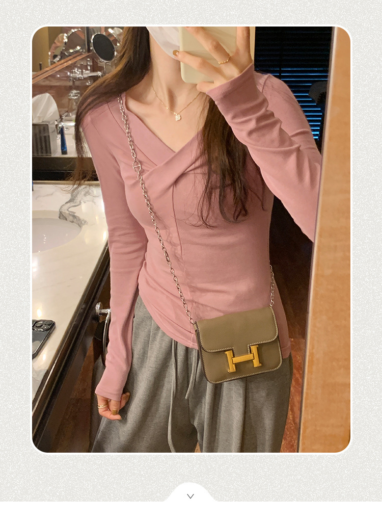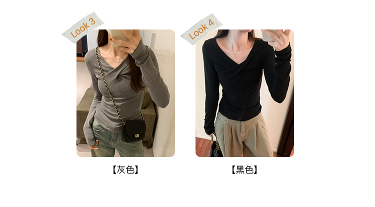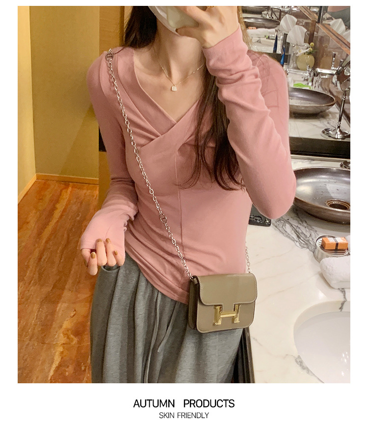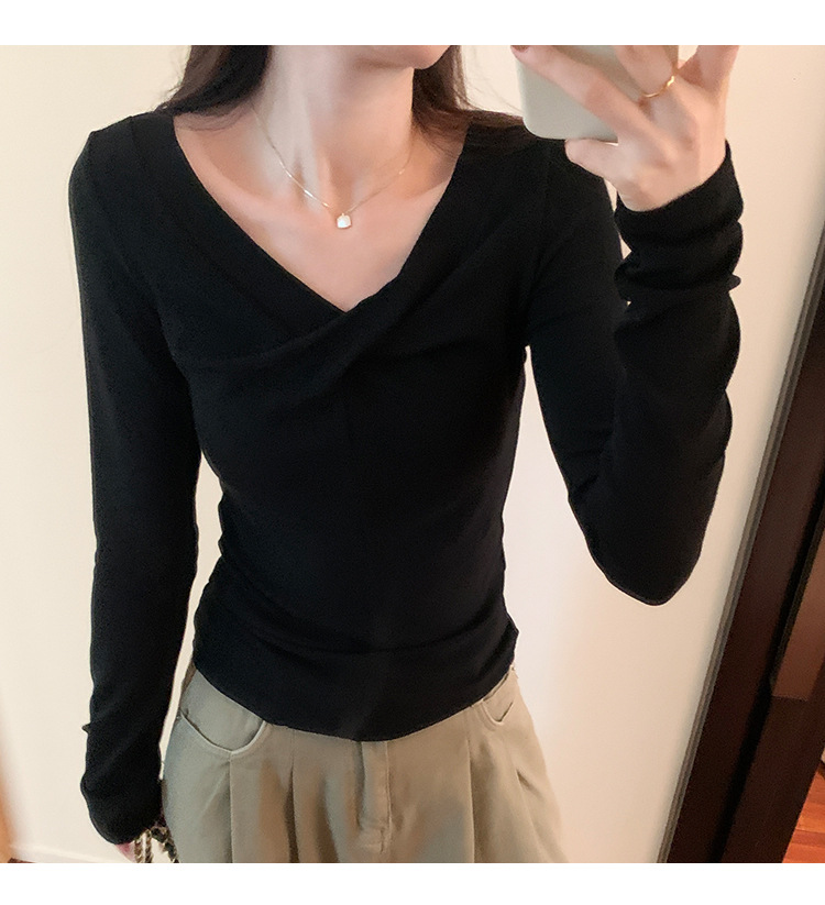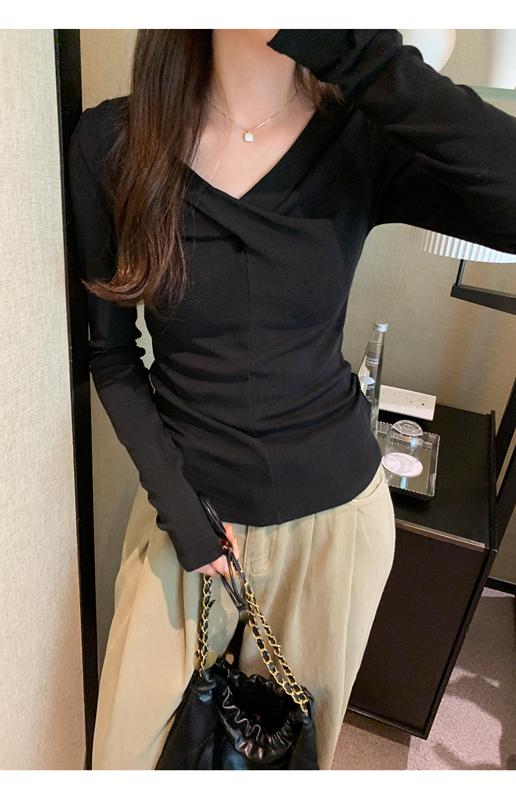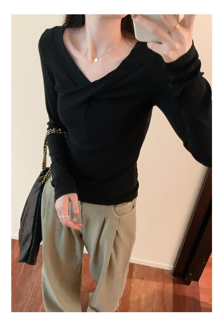 【纯色内搭V领打底衫】秋冬新款 设计感修身显瘦短款长袖上衣ins