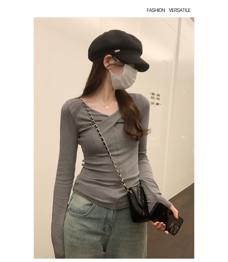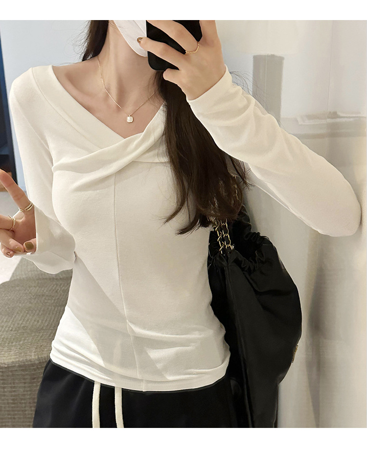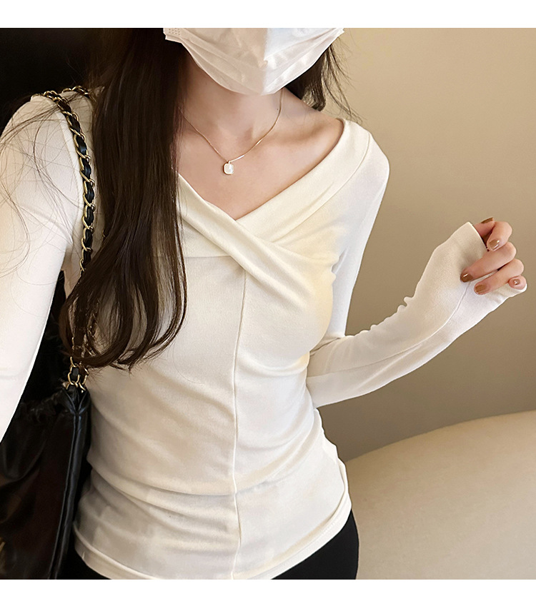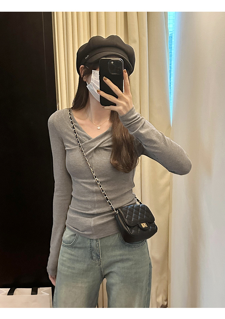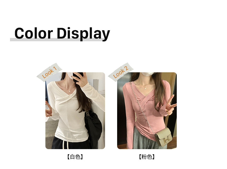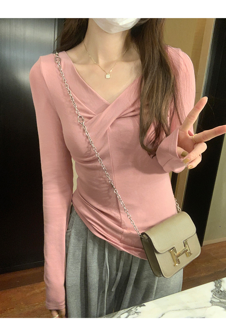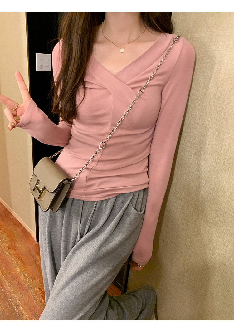 【纯色内搭V领打底衫】秋冬新款 设计感修身显瘦短款长袖上衣ins