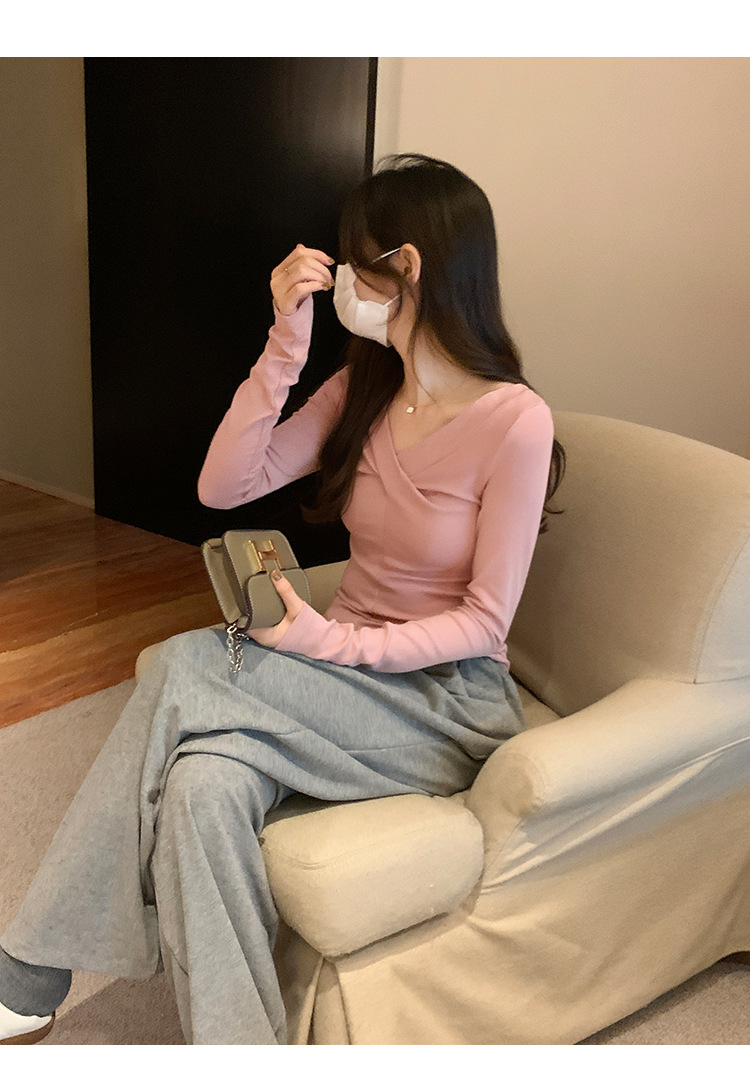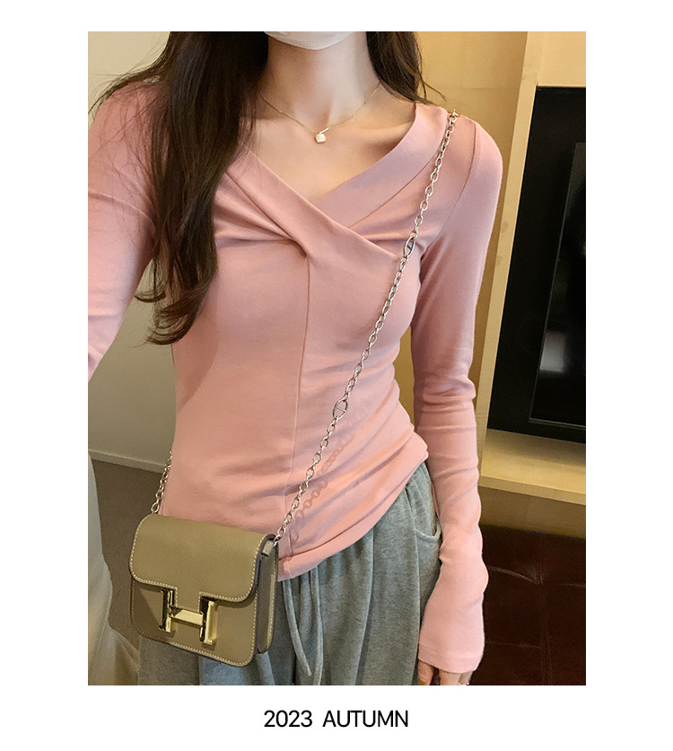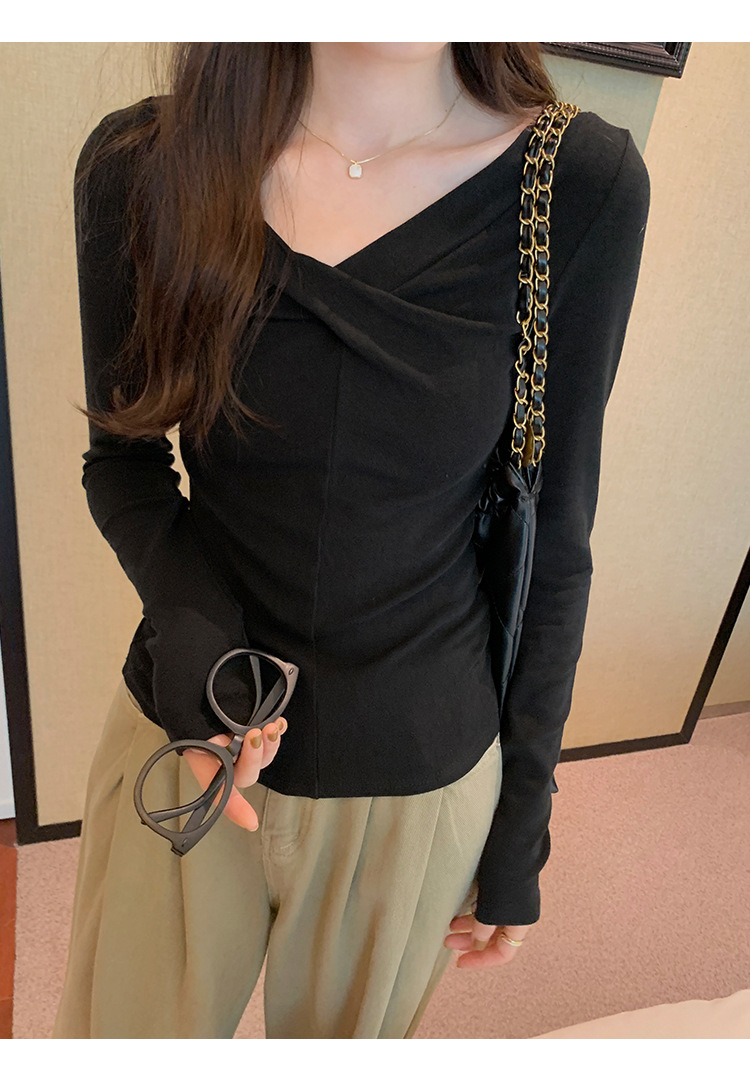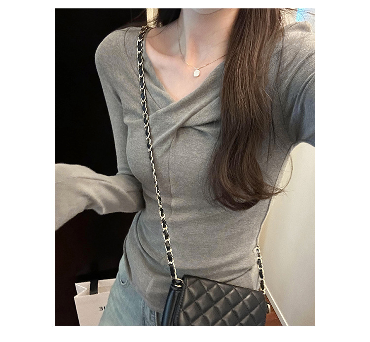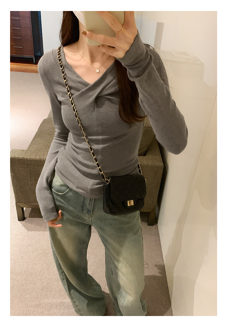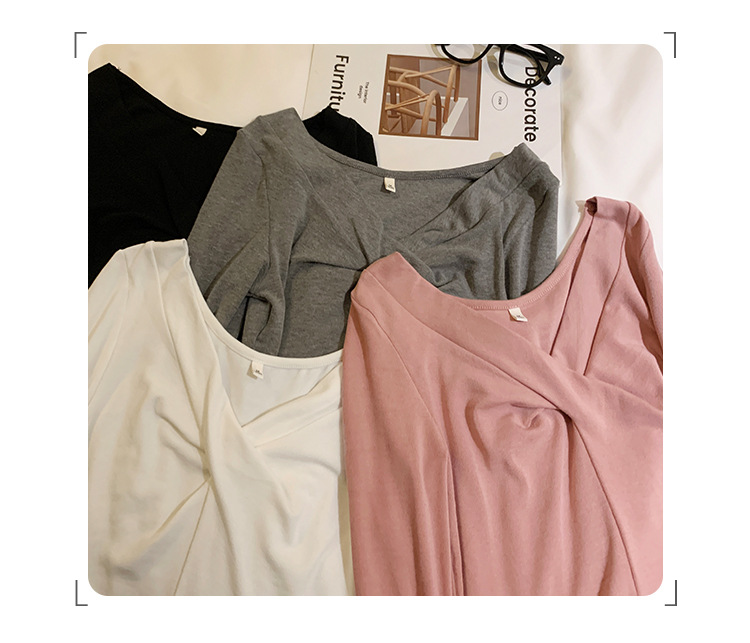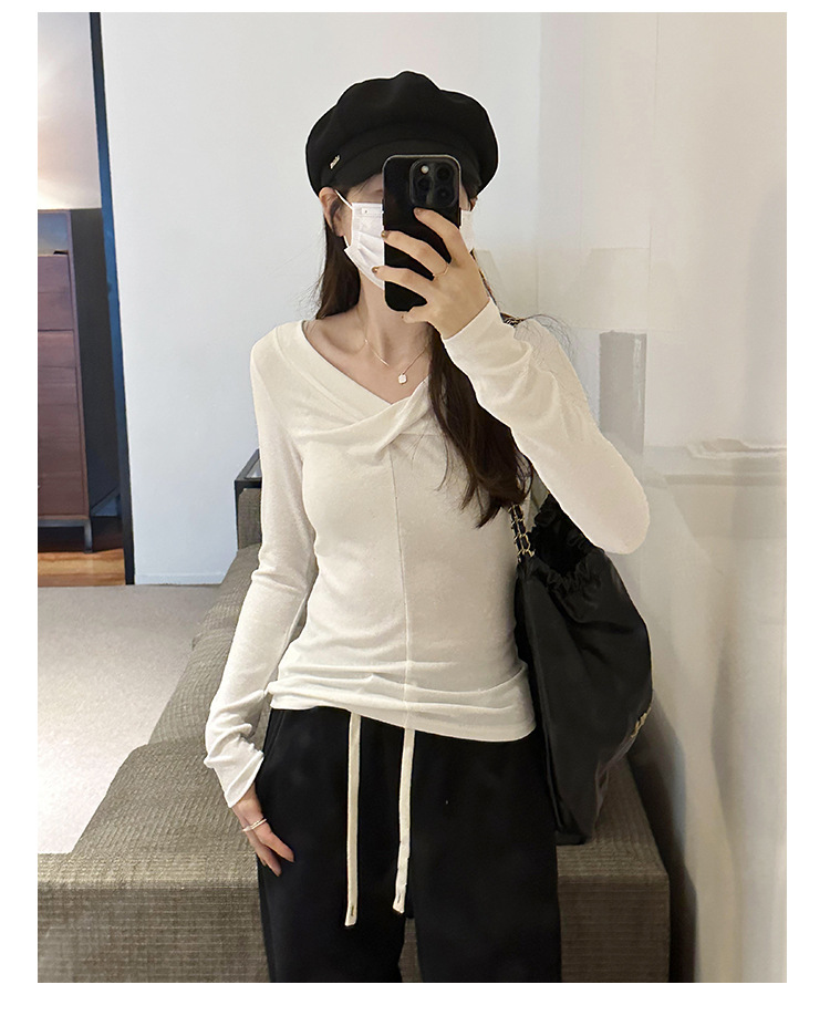 【纯色内搭V领打底衫】秋冬新款 设计感修身显瘦短款长袖上衣ins