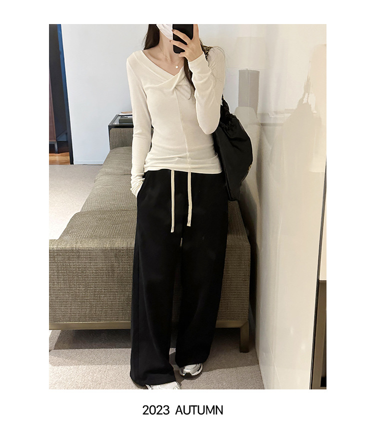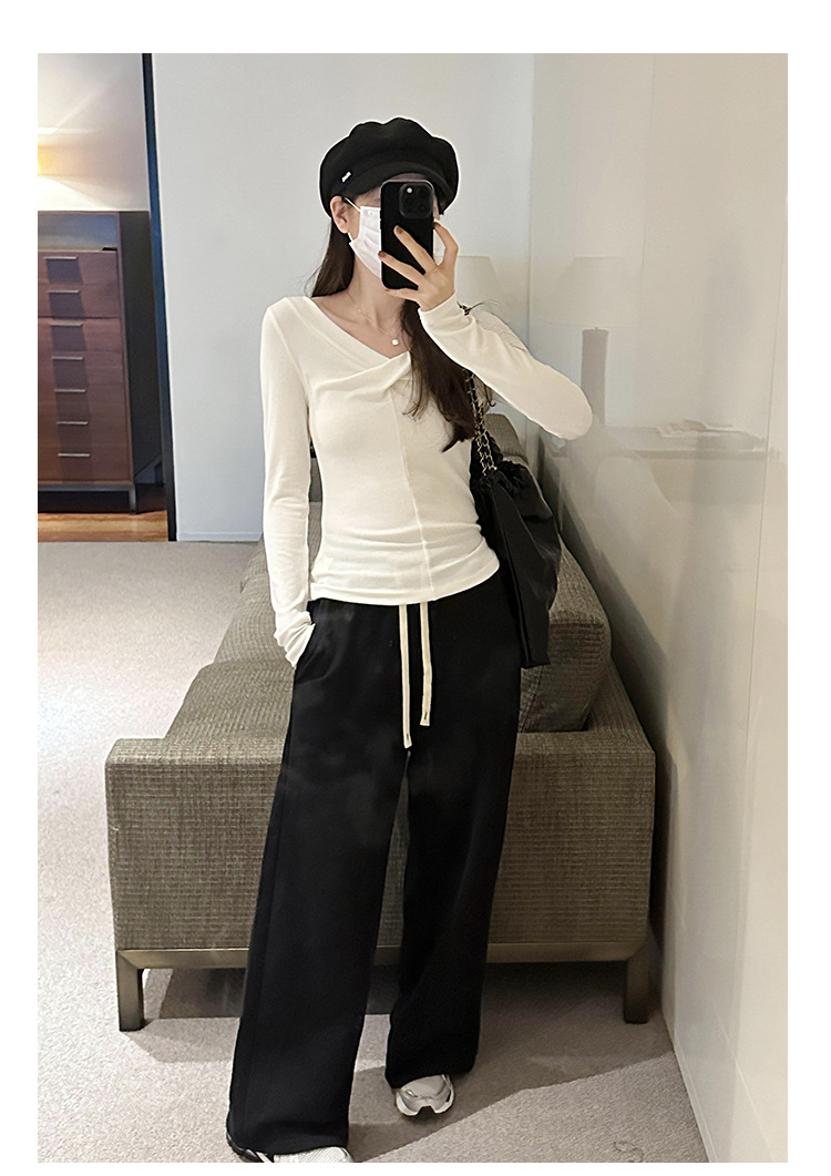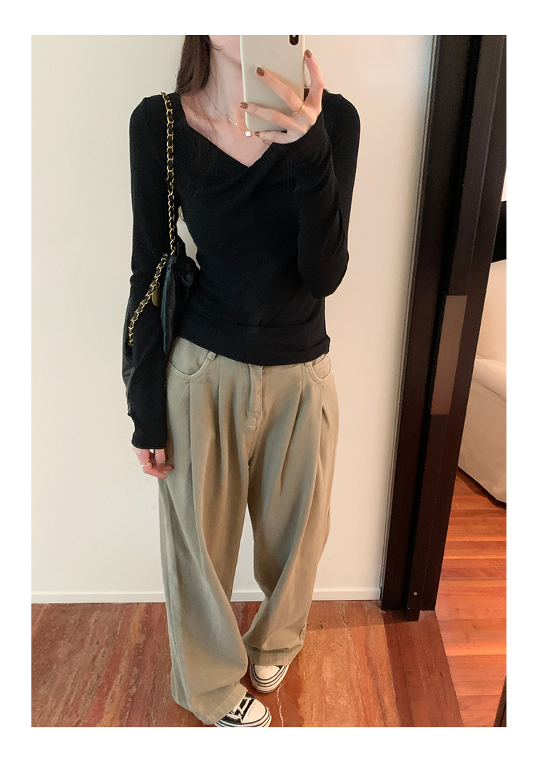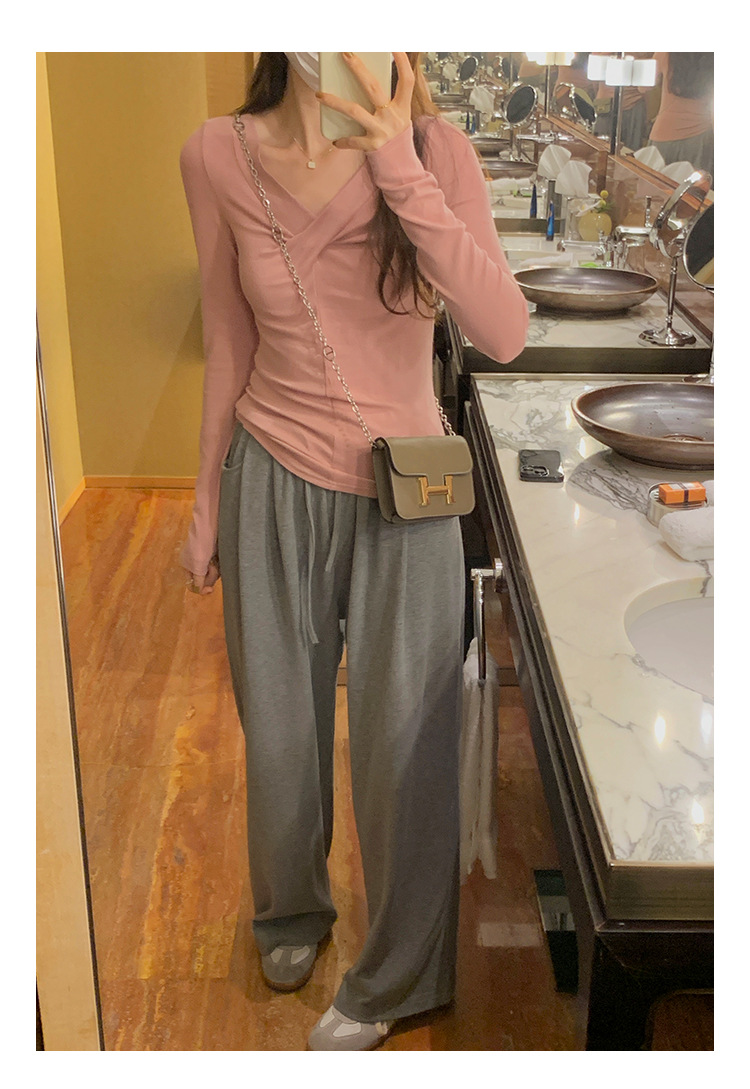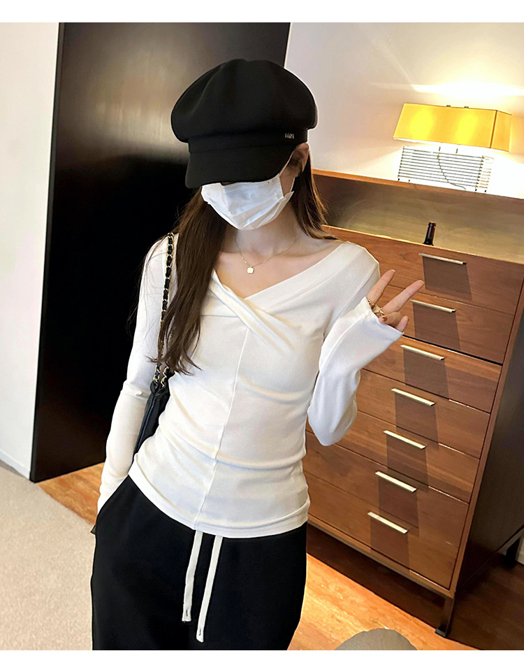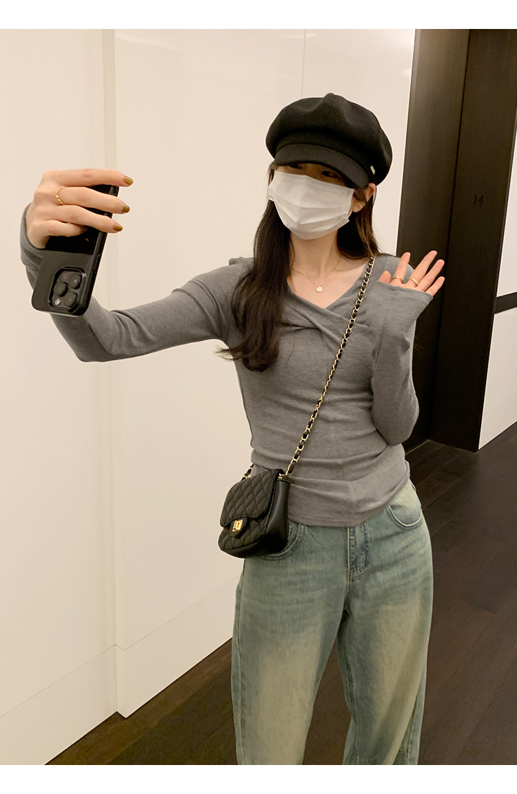 【纯色内搭V领打底衫】秋冬新款 设计感修身显瘦短款长袖上衣ins
