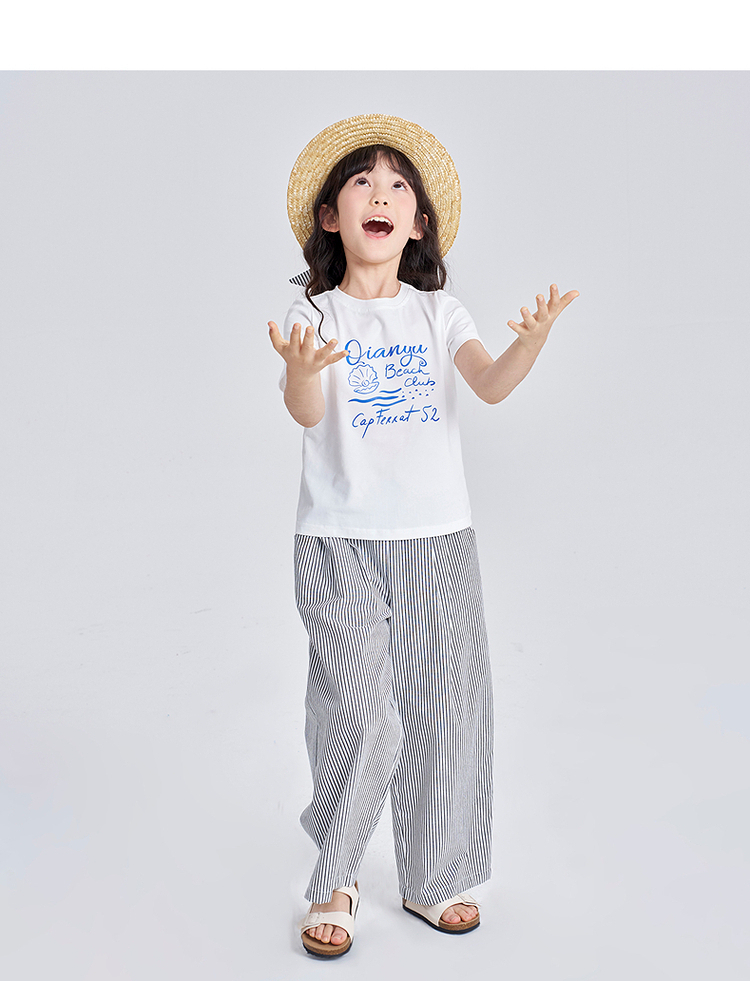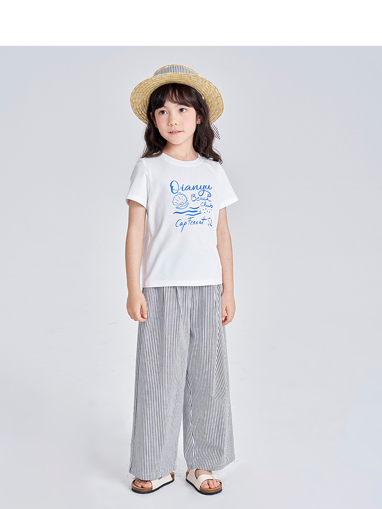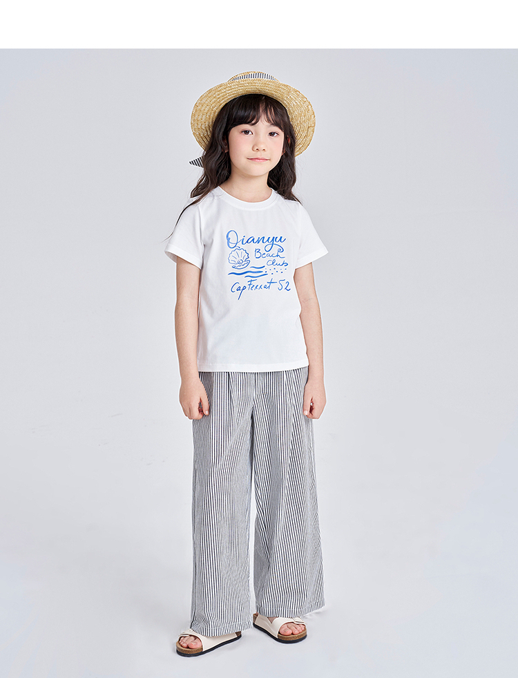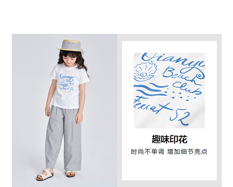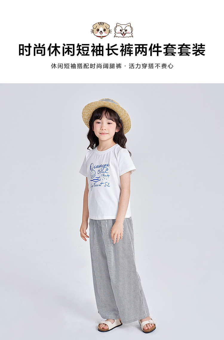笛莎千与2025夏季新款女童时尚休闲短袖长裤两件套套装