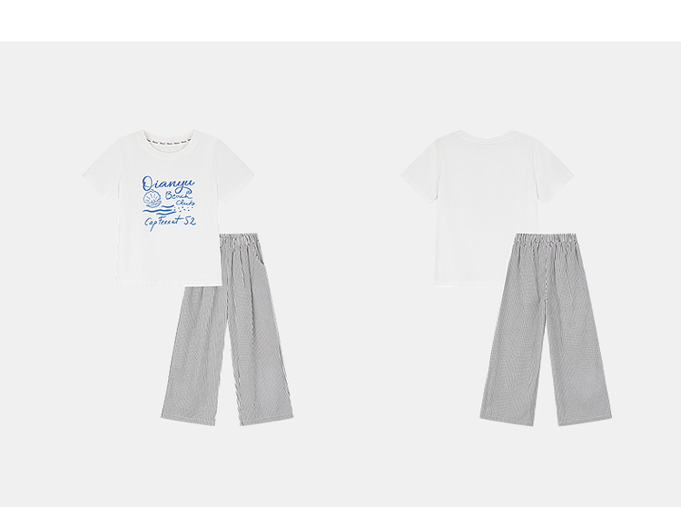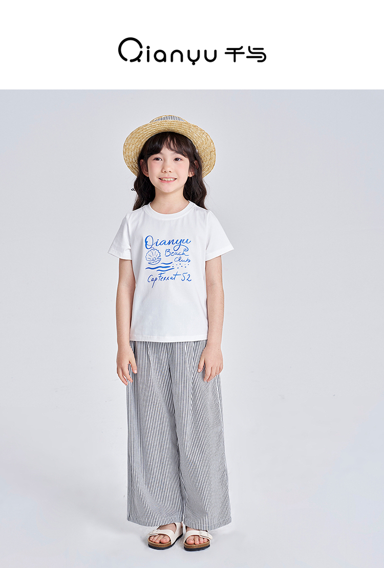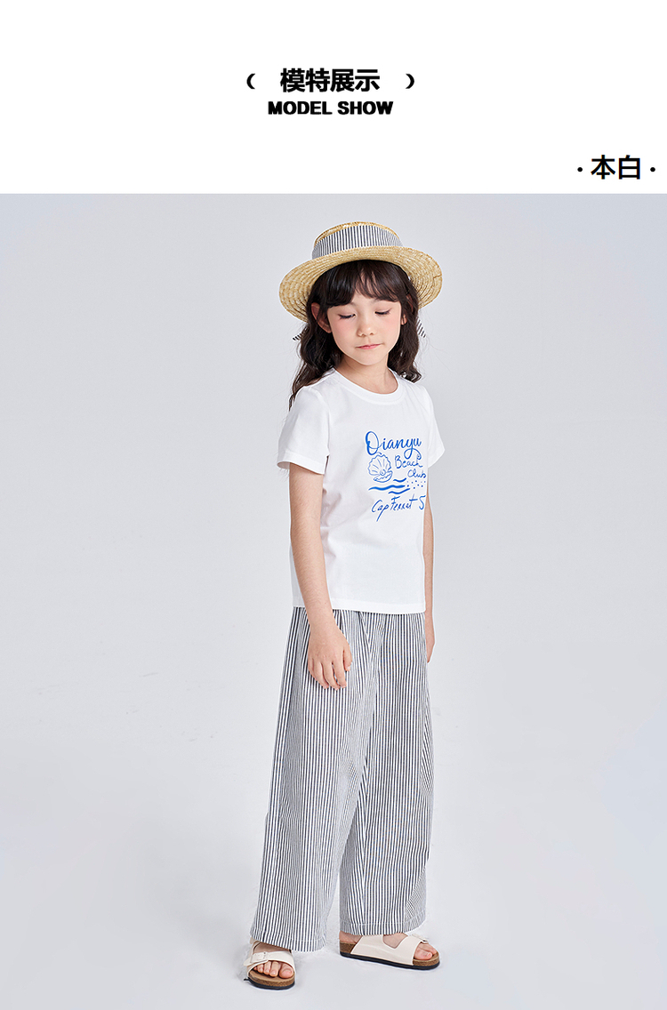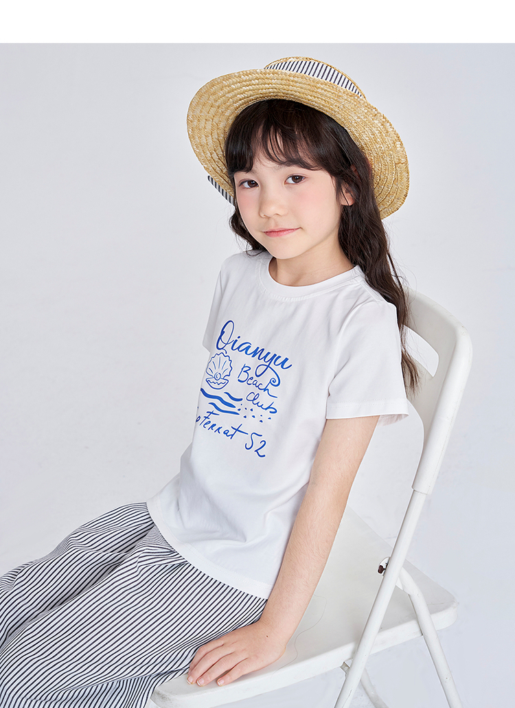 笛莎千与2025夏季新款女童时尚休闲短袖长裤两件套套装