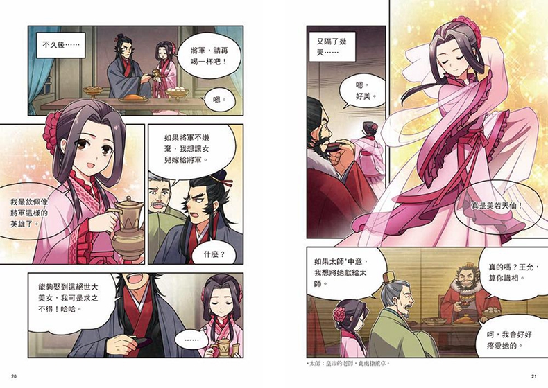 和大家一樣,我的中小學階段很愛看「漫畫」,一入迷就從天亮到天黑了,絲毫不輸給今天的「動漫迷」。因此,我誠心推薦各位小讀者在進入三國動漫世界前,先接觸這套兼具史實與趣味的歷史漫畫,那麼對歷史人物的認識,就會朝著領袖人物的氣度、資質及領導才能的方向前行,在潛移默化中成就無限的未來。──許媛婷(故宮博物院圖書文獻處副研究員)