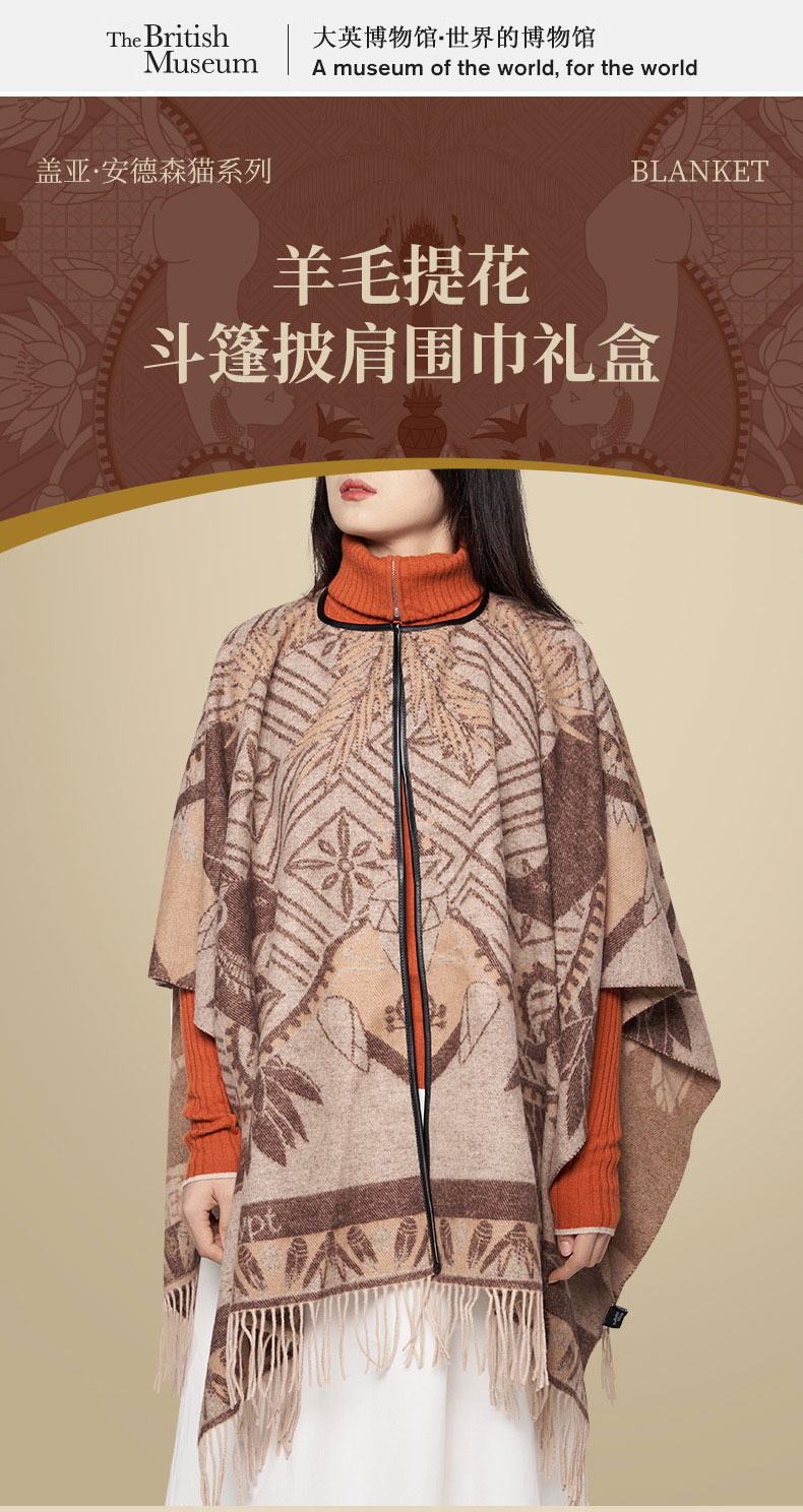 大英博物馆 盖亚·安德森猫系列 羊毛提花 斗篷披肩 围巾礼盒