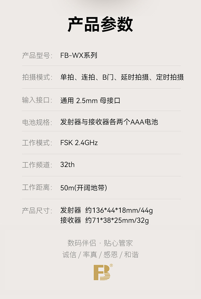 FB沣标 无线定时快门线遥控器 延时摄影 B门间隔定时拍摄 微单反相机快门线 FB-WX