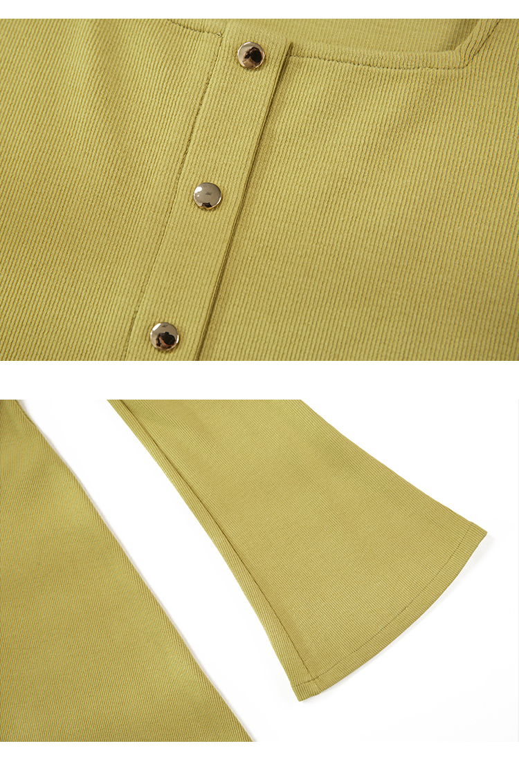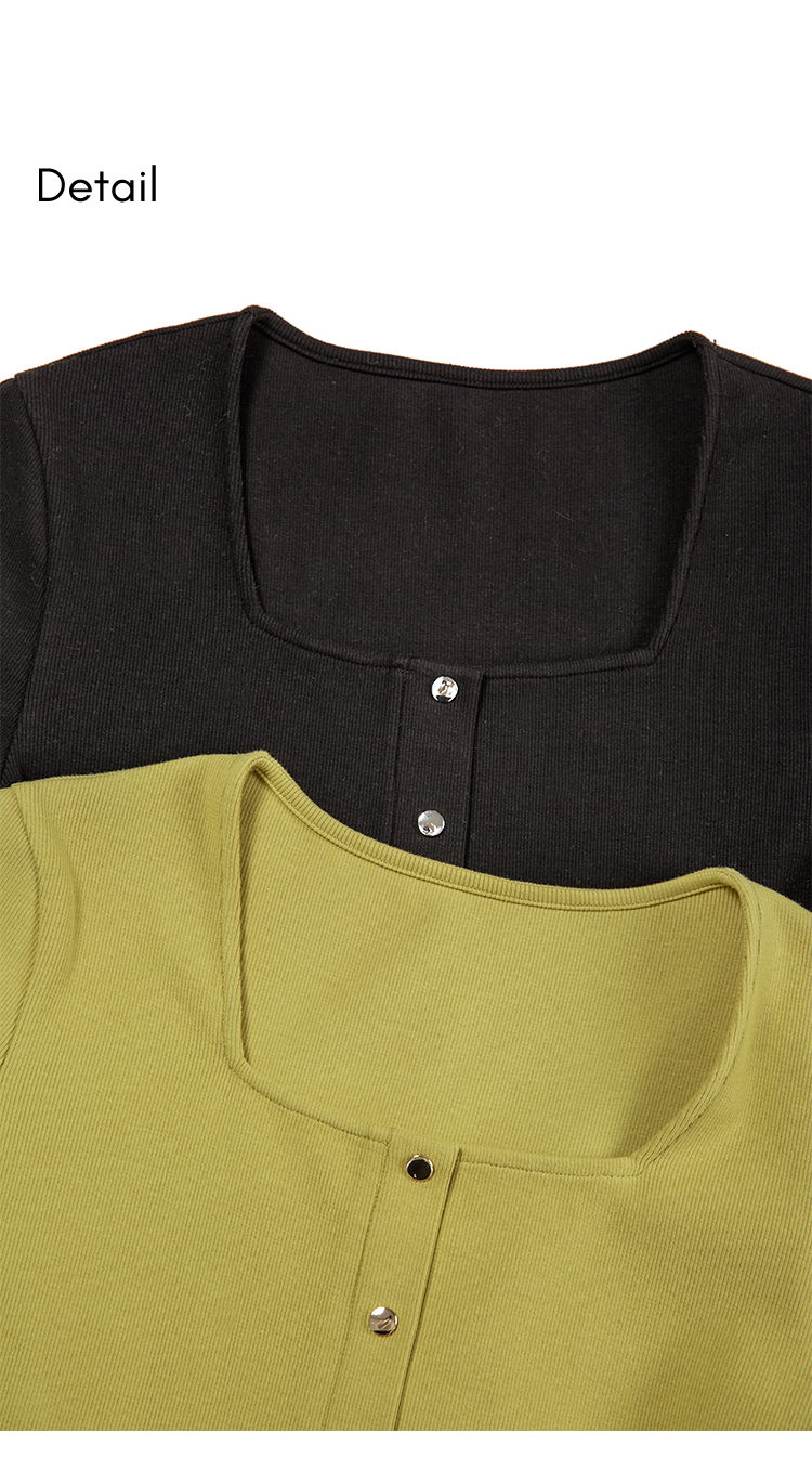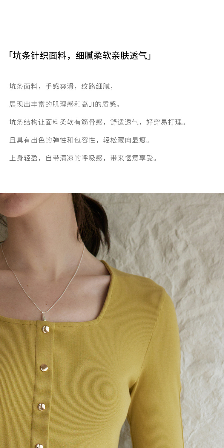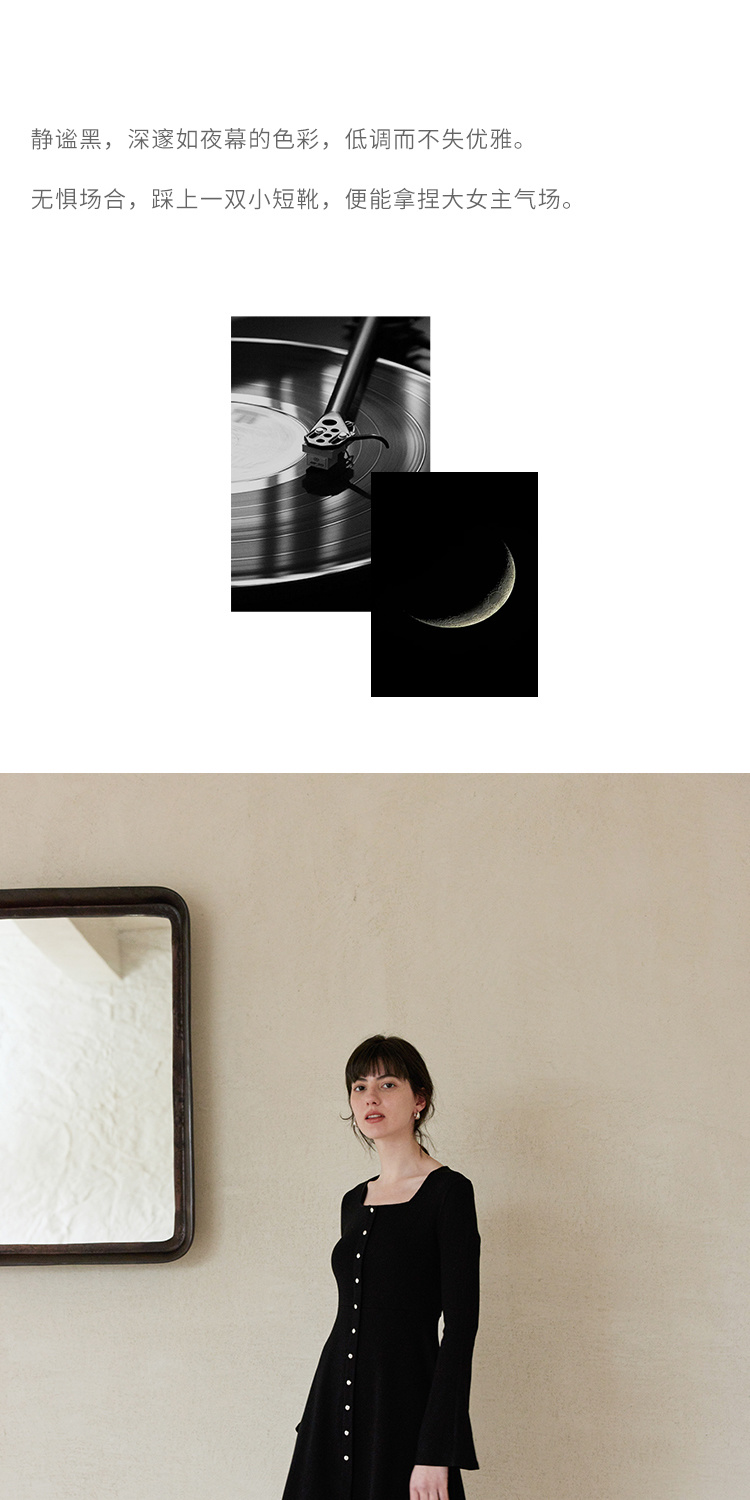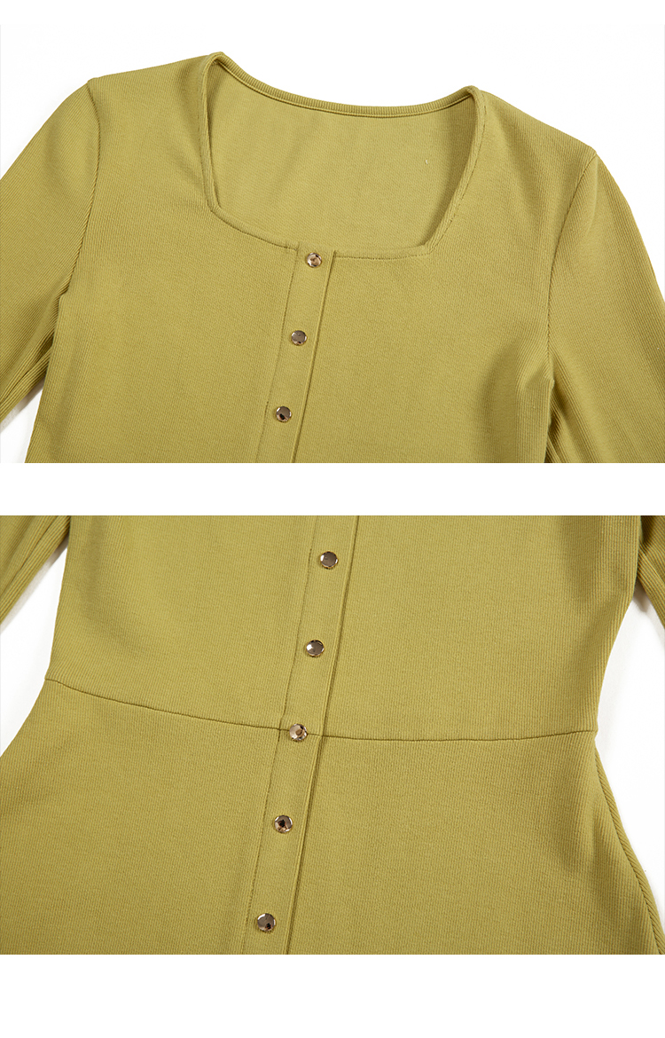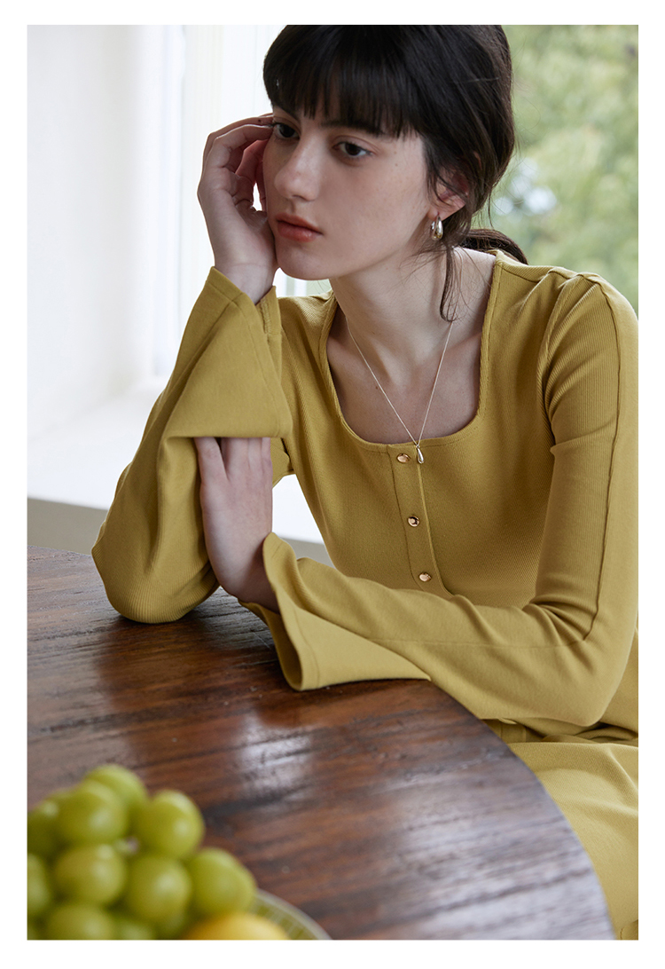 HeyDress法式方领针织连衣裙女春季复古排扣收腰设计长袖黑色裙子
