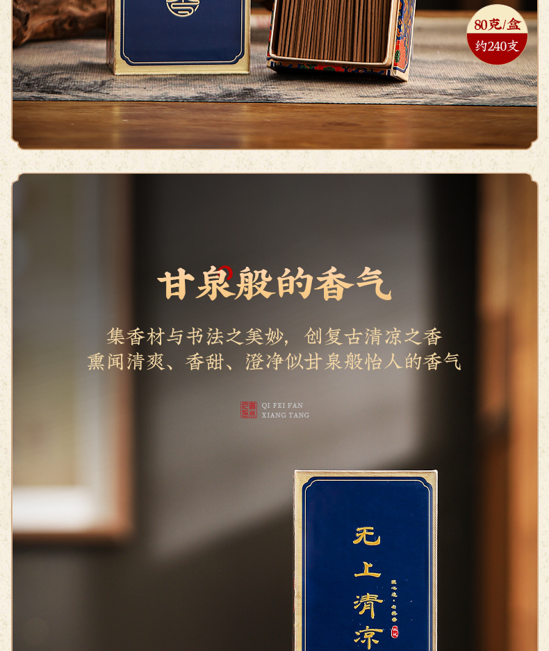 无上清凉线香80g 大包装240支 鹅梨/沉香/檀香乳香