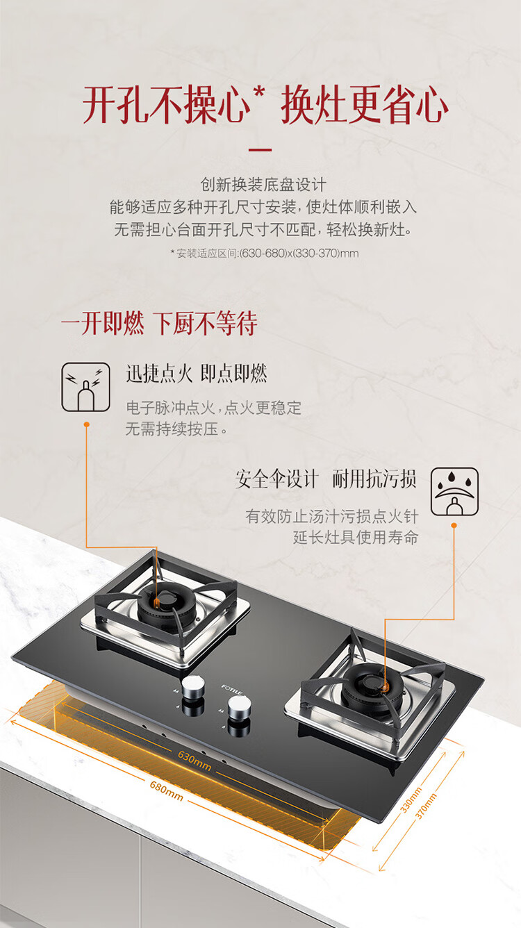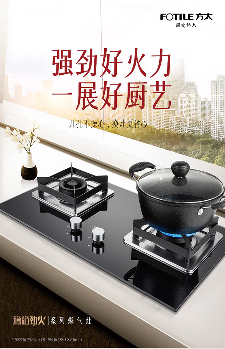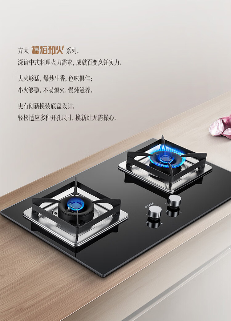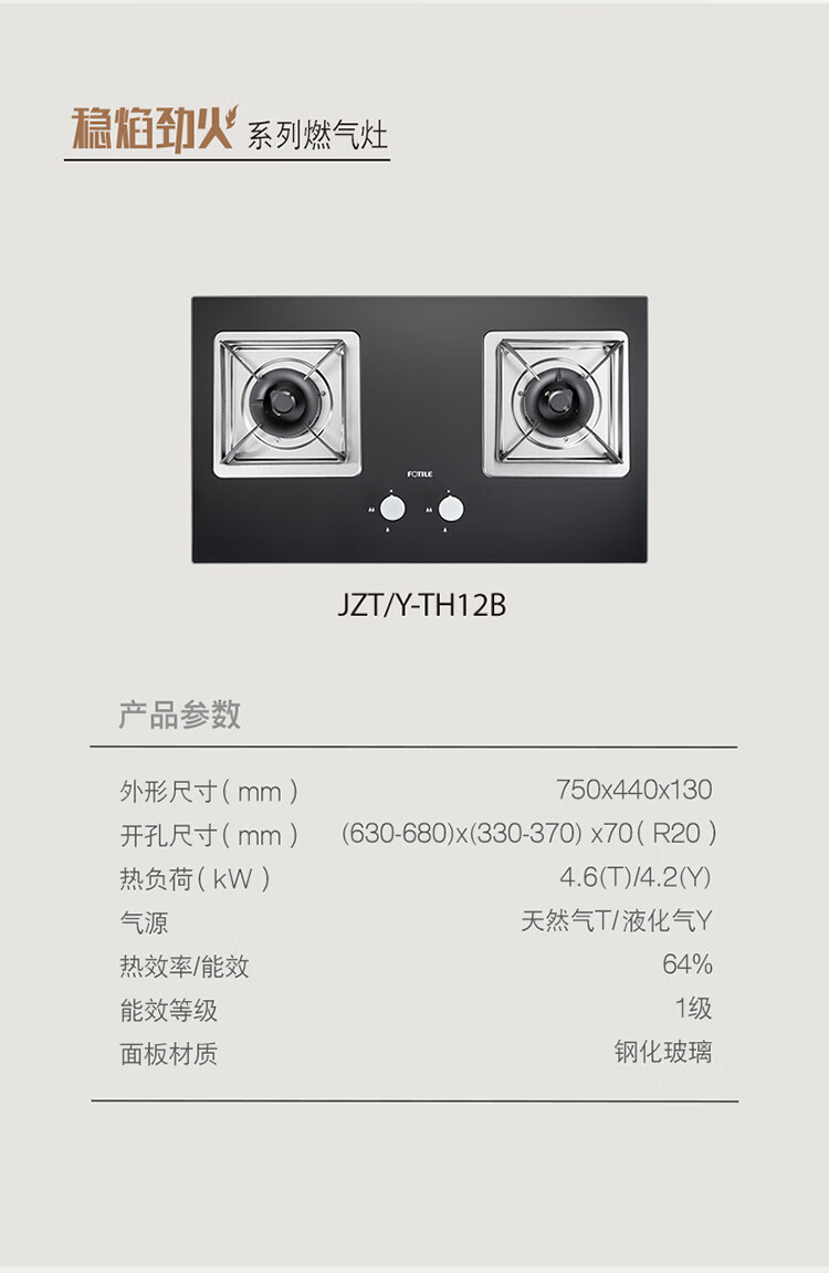 方太(FOTILE)家用燃气灶 4.6W劲猛火力 双灶眼 一级能效 换灶更省心JZT-TH12B 天然气
