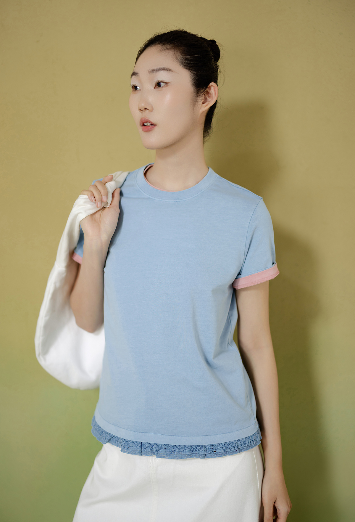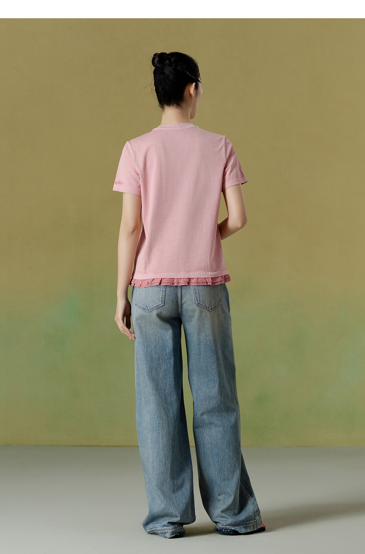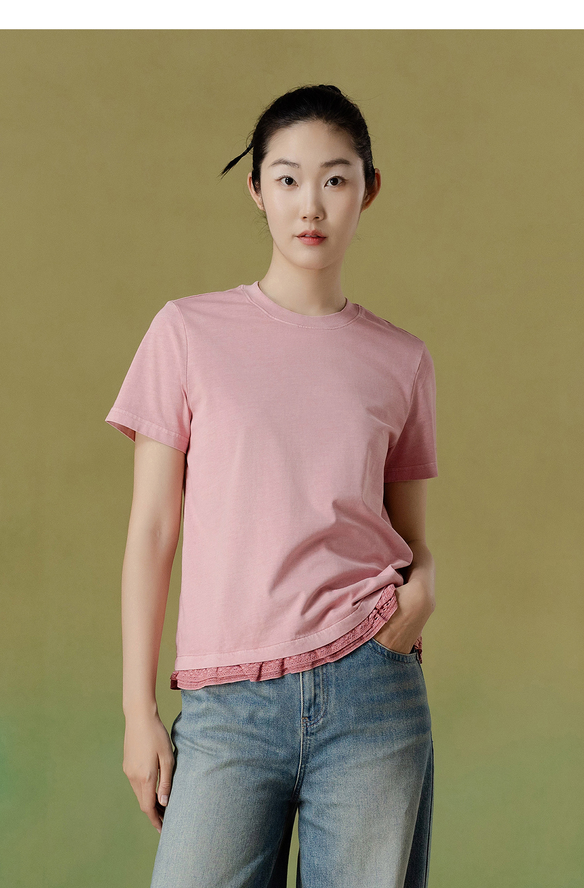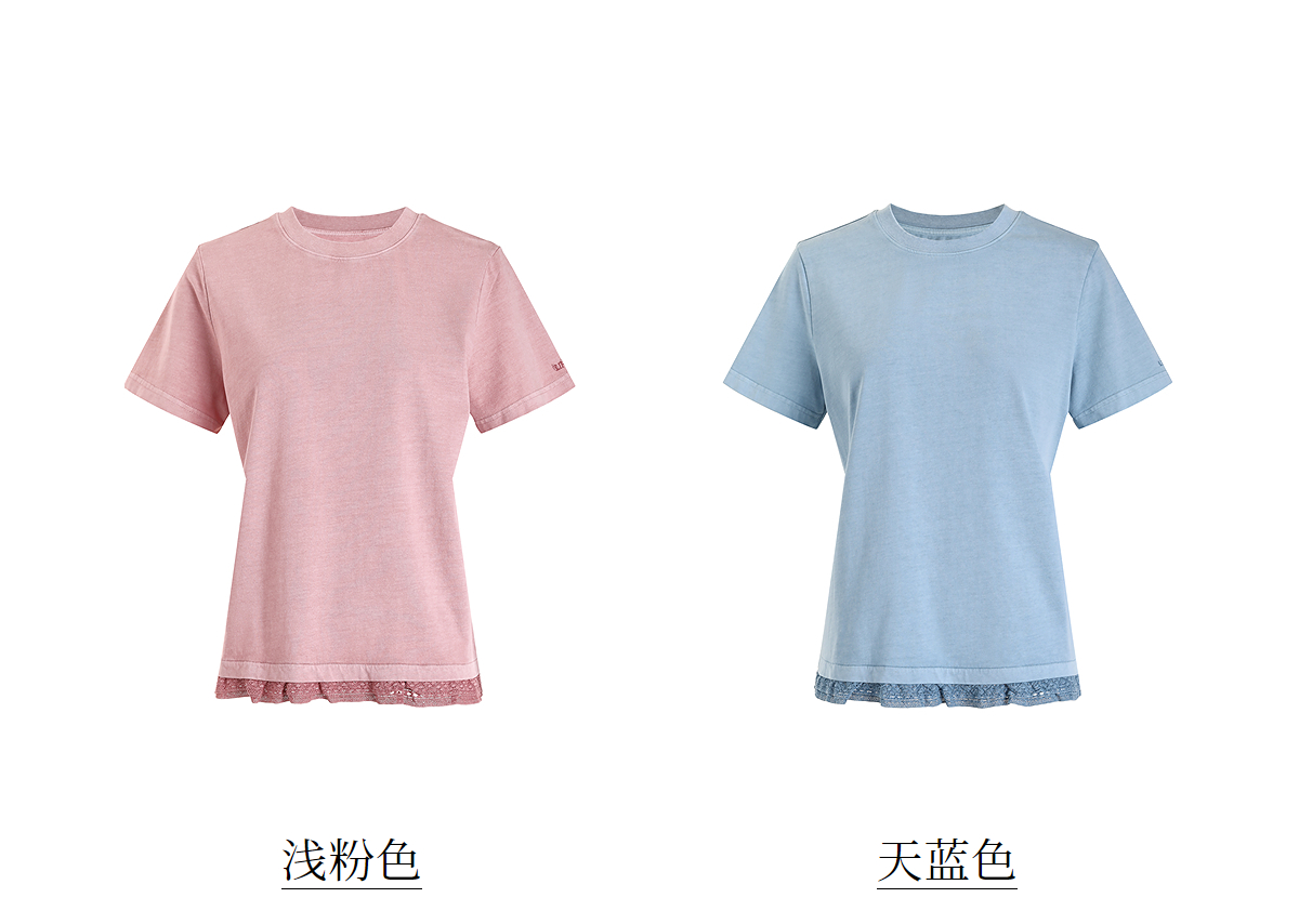 【林栖设计小店】(少量现货)【植物染】纯棉T恤优雅多色镂空花边2025夏季新品上衣女1952140