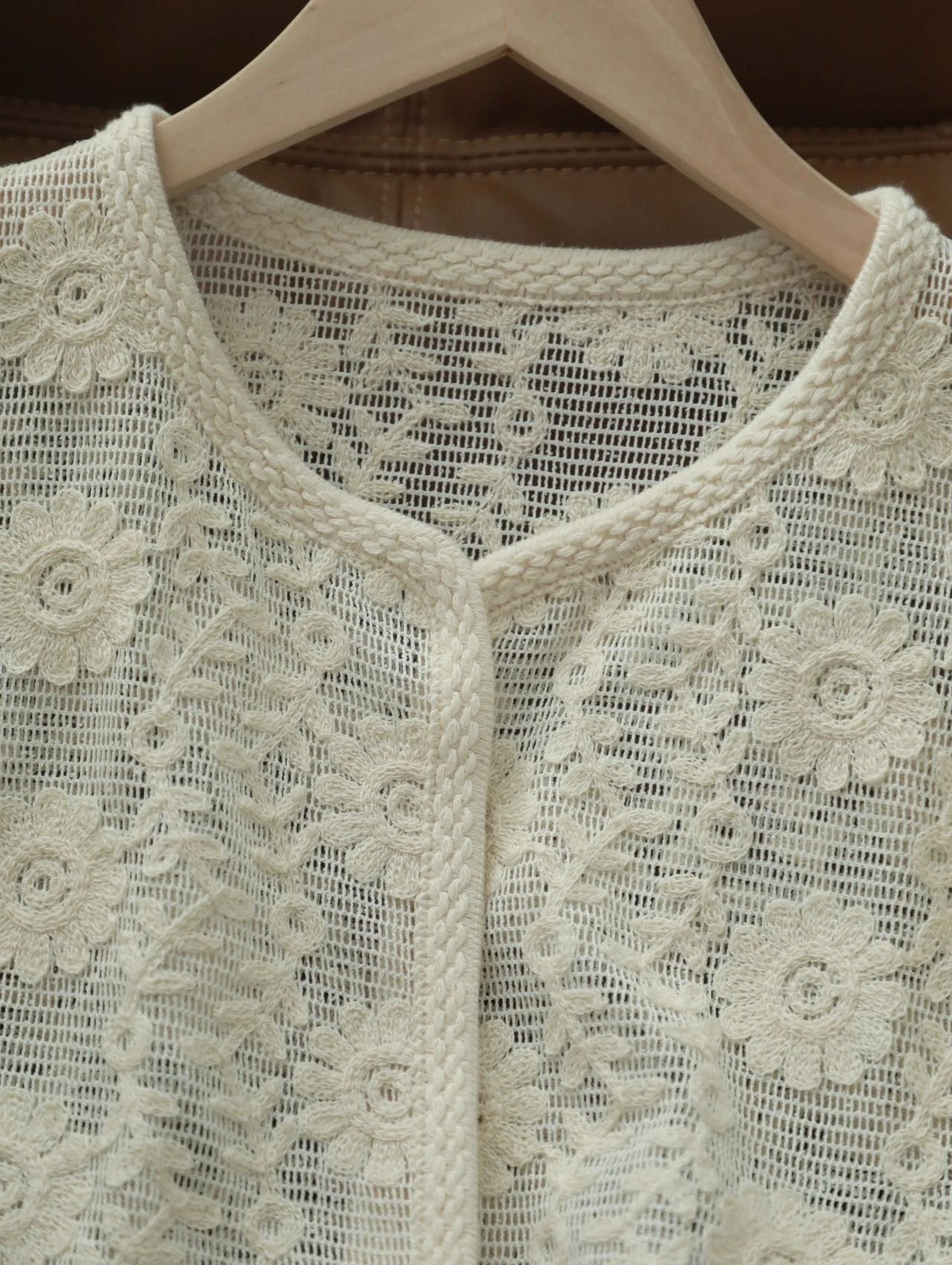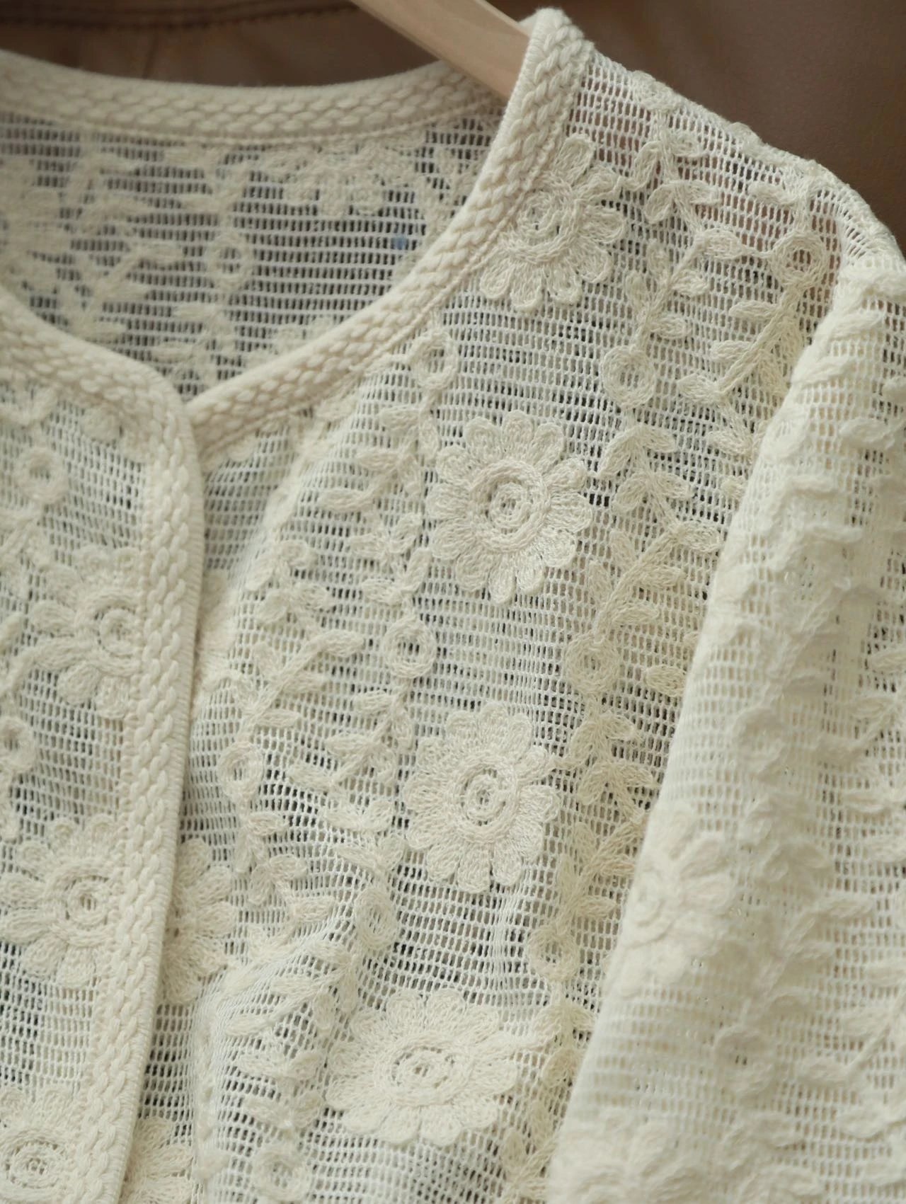 【商品品名】纯手工立体镂空钩花刺绣外套