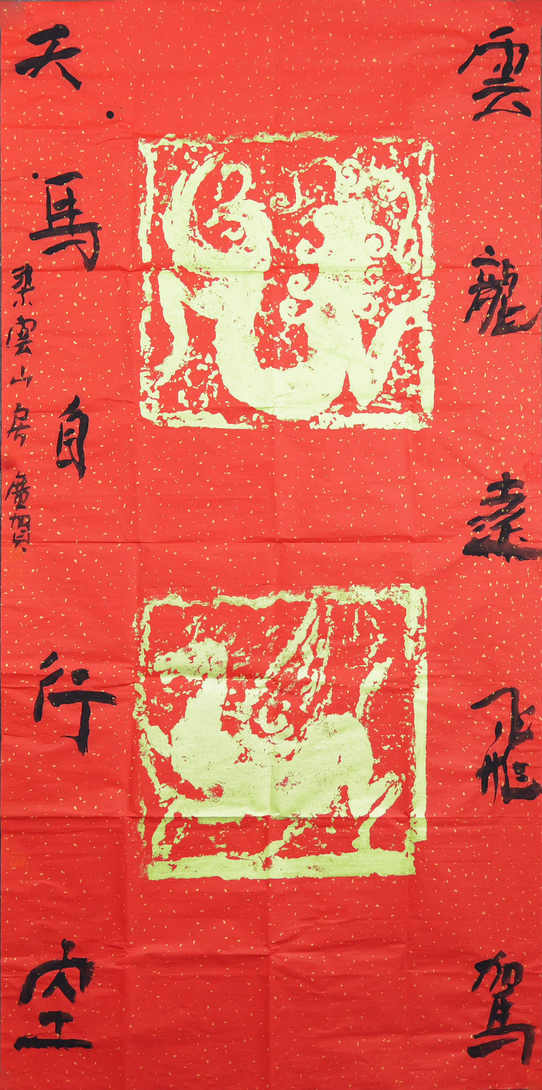朱广贺《云龙远飞驾,天马自行空》136x68cm 手写纸本宣纸书法作品