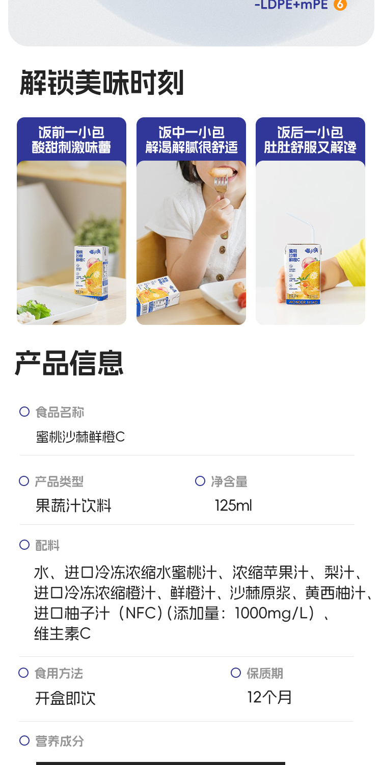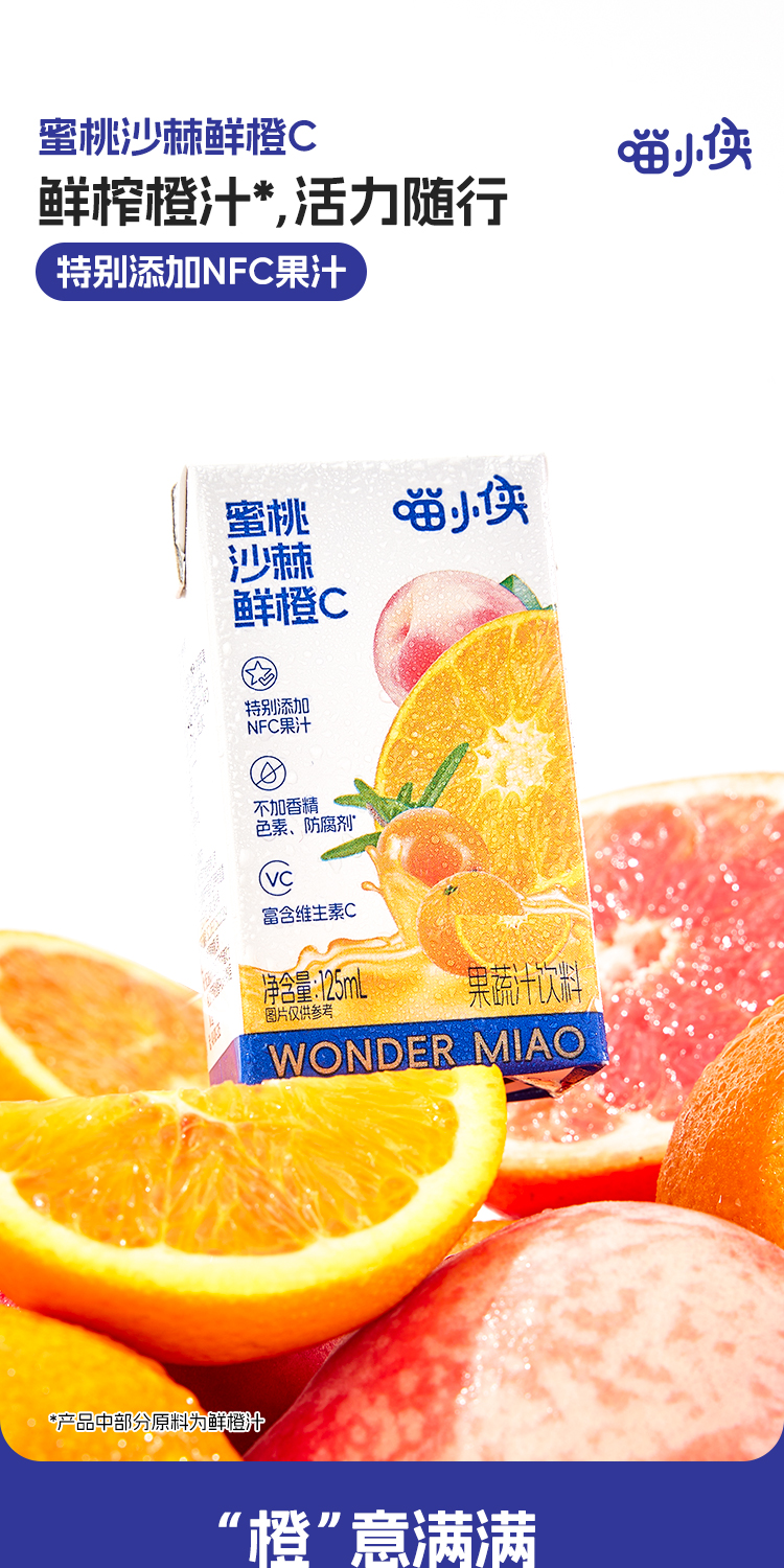 【产品名称】:喵小侠 蜜桃沙棘鲜橙C/125mL