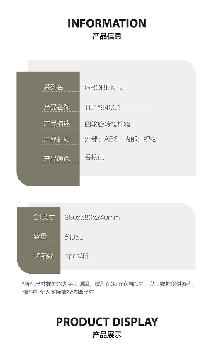 TE1*94001 四轮旋转拉杆箱58/21-香槟色