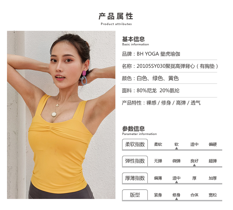 【七十二小时发货】壁虎瑜伽【2105SY030】聚拢高弹背心(有胸垫)