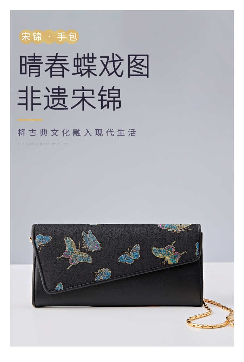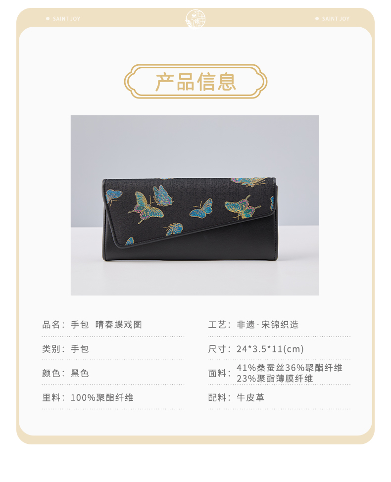 SAINTJOY/上久楷 新中式宋锦女士 手包 晴春蝶戏图 BWS25B0201