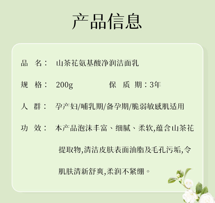 | 品名: | 【孕期可用】植物主义山茶花氨基酸净润洁面乳200g洗面奶护肤品 |