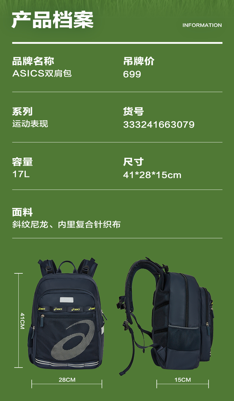 【商城同款】ASICS/亚瑟士新品书包双肩包耐磨减负大容量书包新款