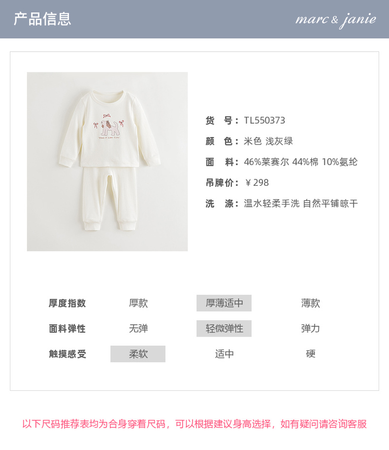 马克珍妮男女童吸湿透气内衣套装 宝宝睡衣2025年春装新款550373