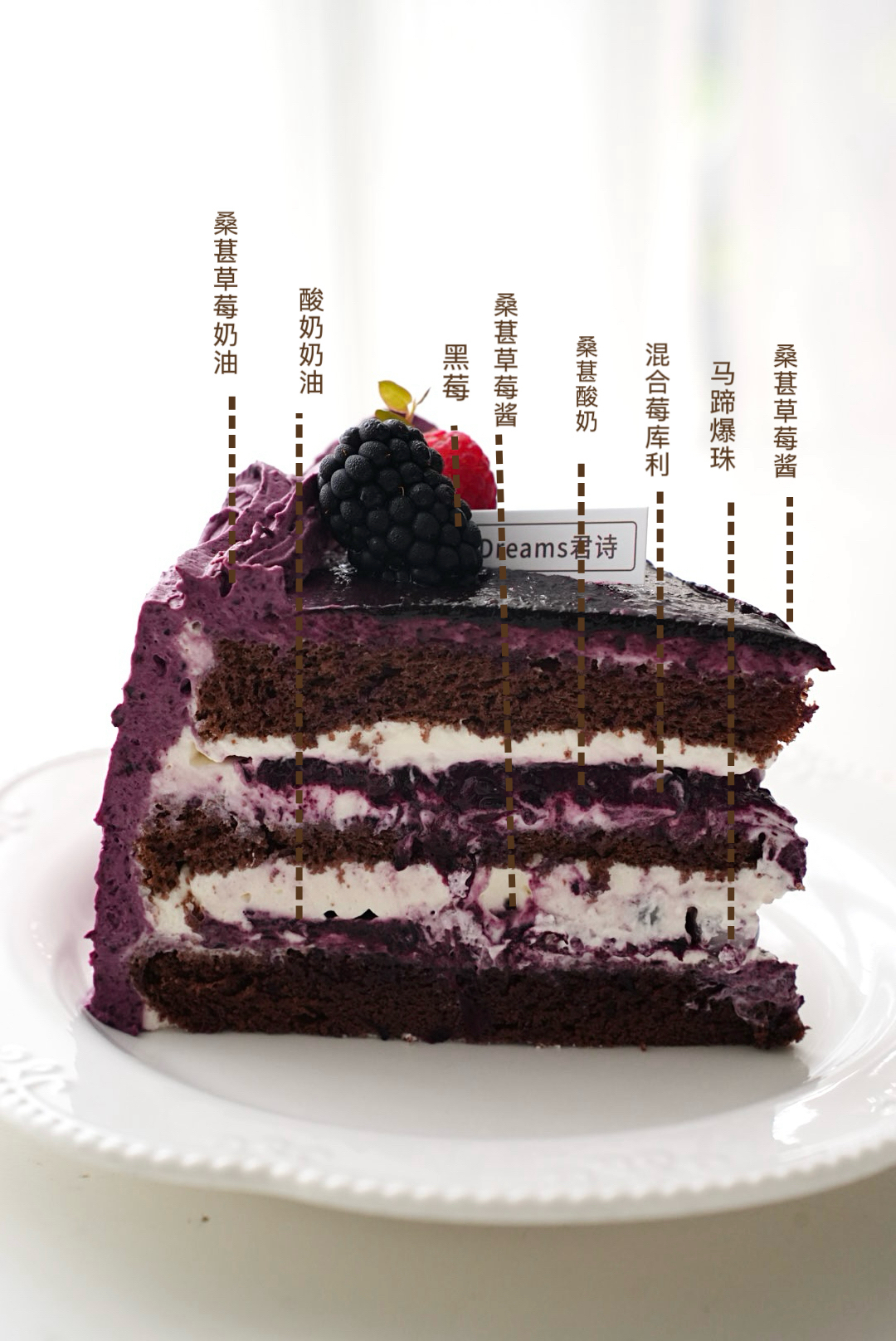 温馨提示:自熬天然桑葚酱调色,由于每一批次桑葚不同,熬出的果酱颜色也会不同,蛋糕颜色也会有所变化。