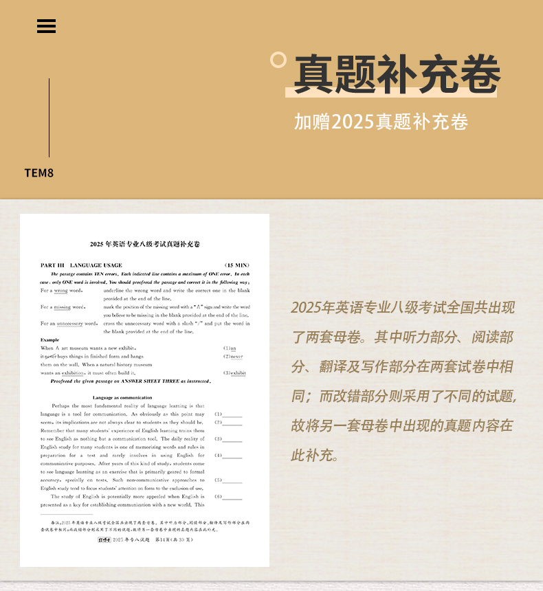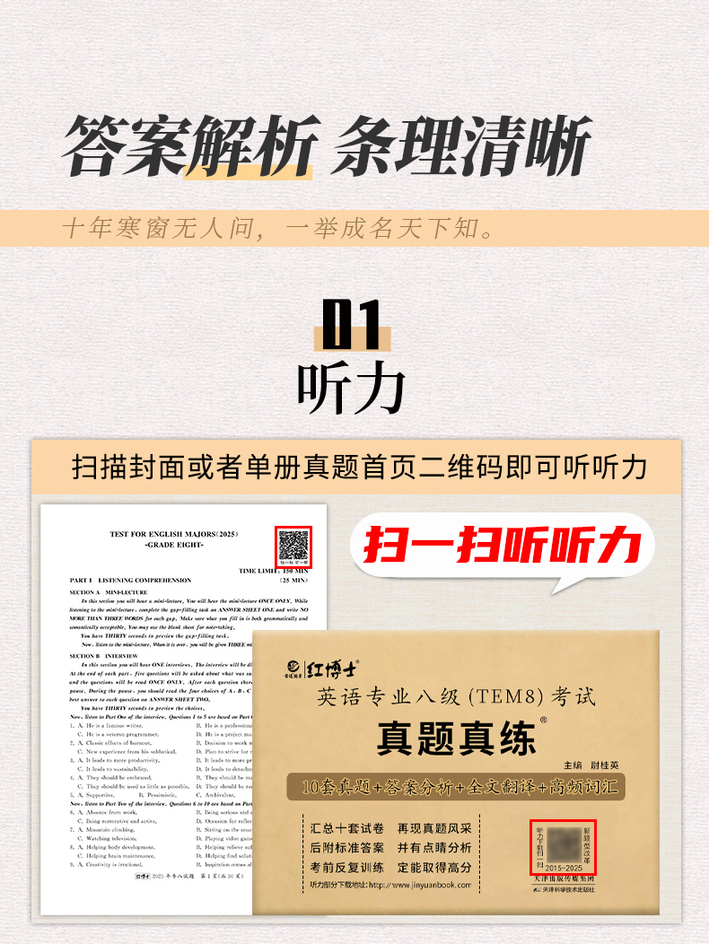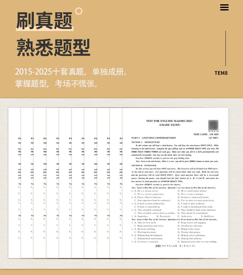 2026英语专业八级真题真练 2015-2025历年真题试卷 改革后新题型 10套真题 官方答案 精准解析