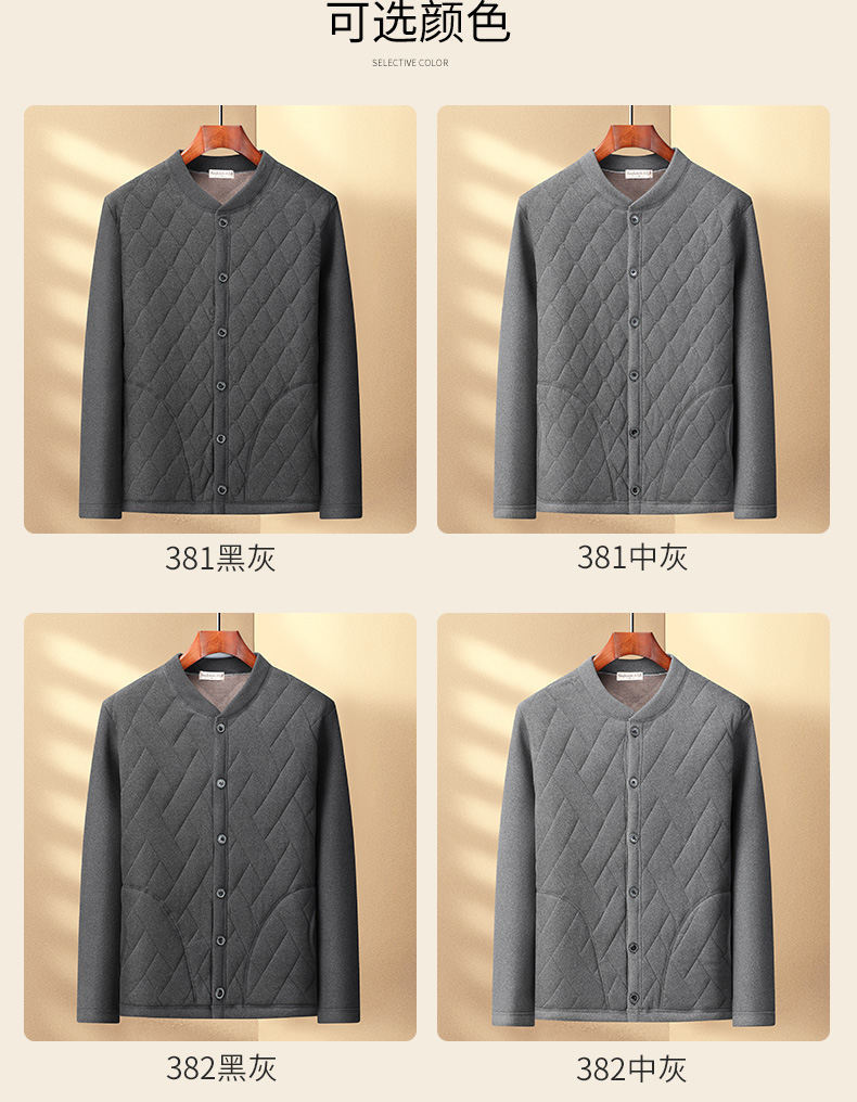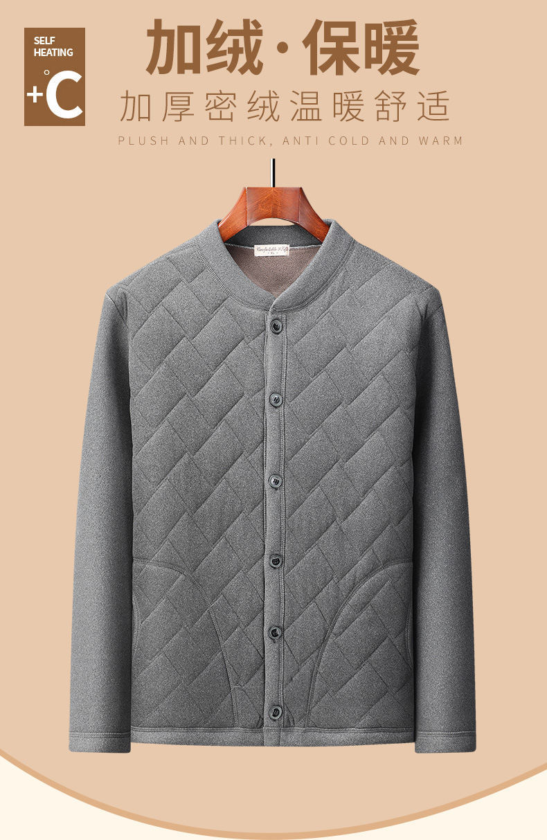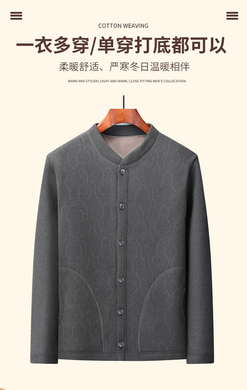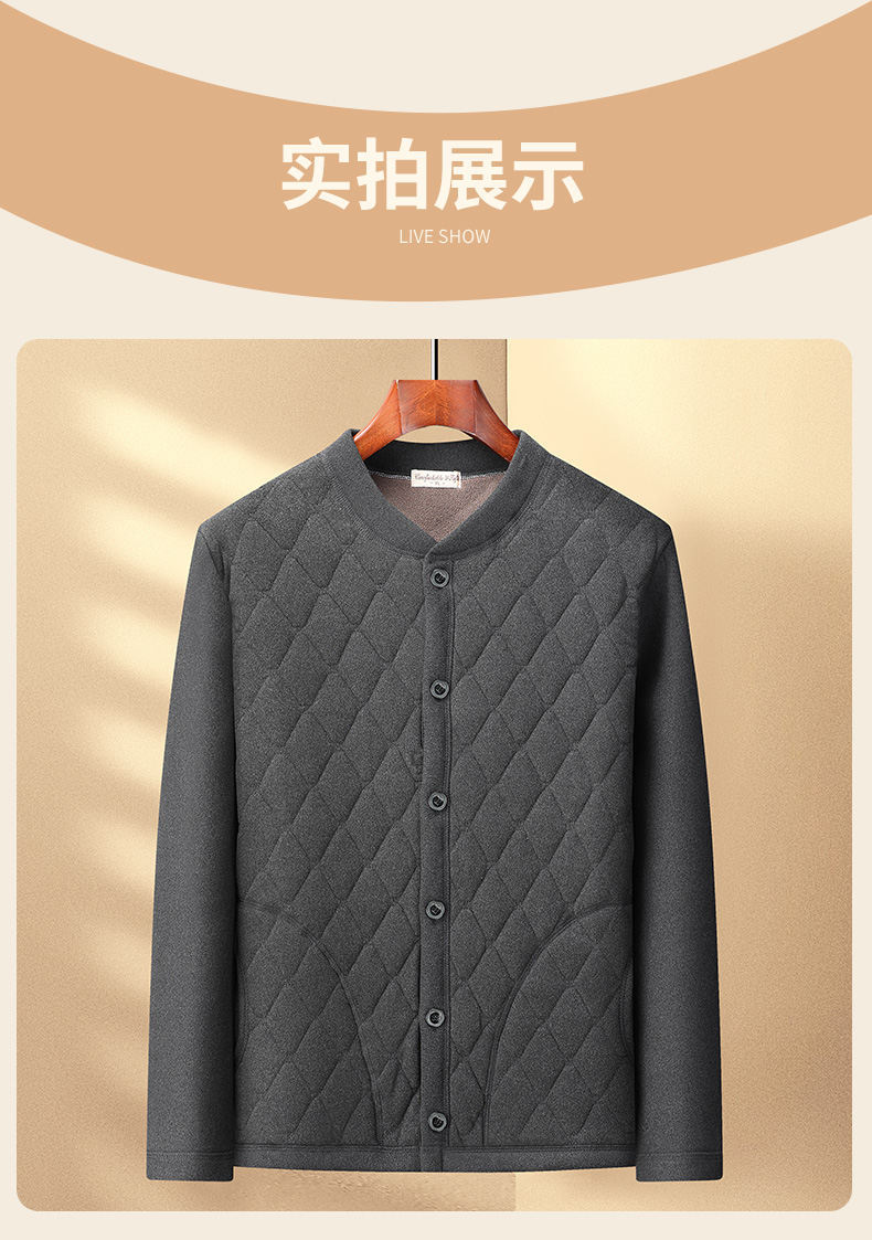 冬季【中老年男装保暖开衫棉衣】加绒加厚棉袄外穿 老人爸爸冬季内搭套装