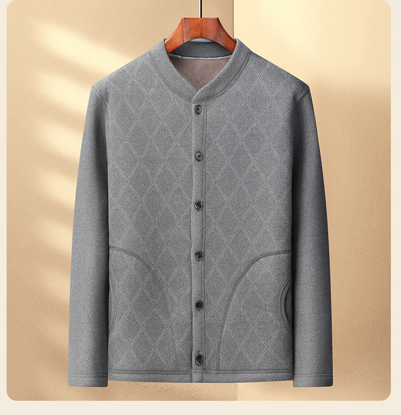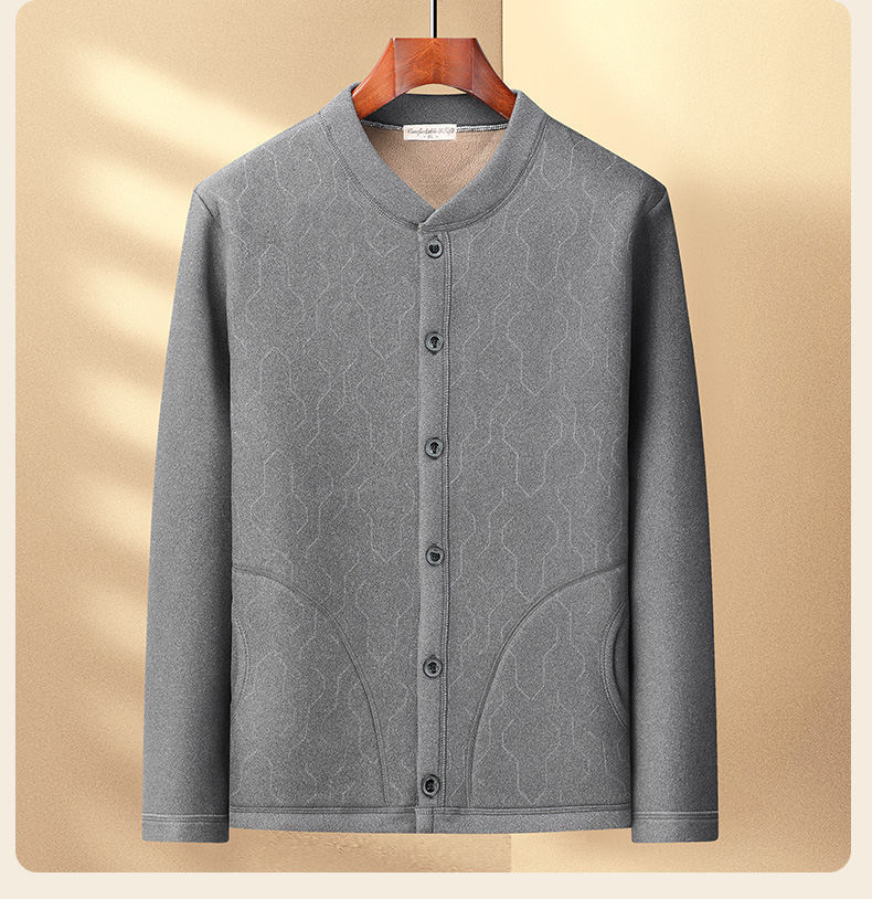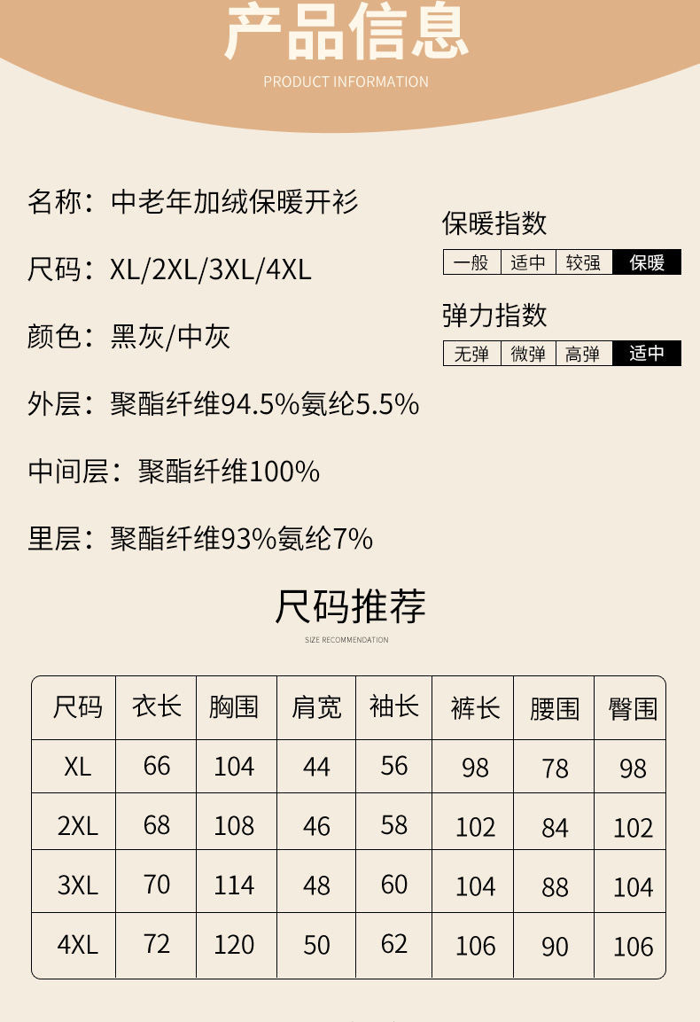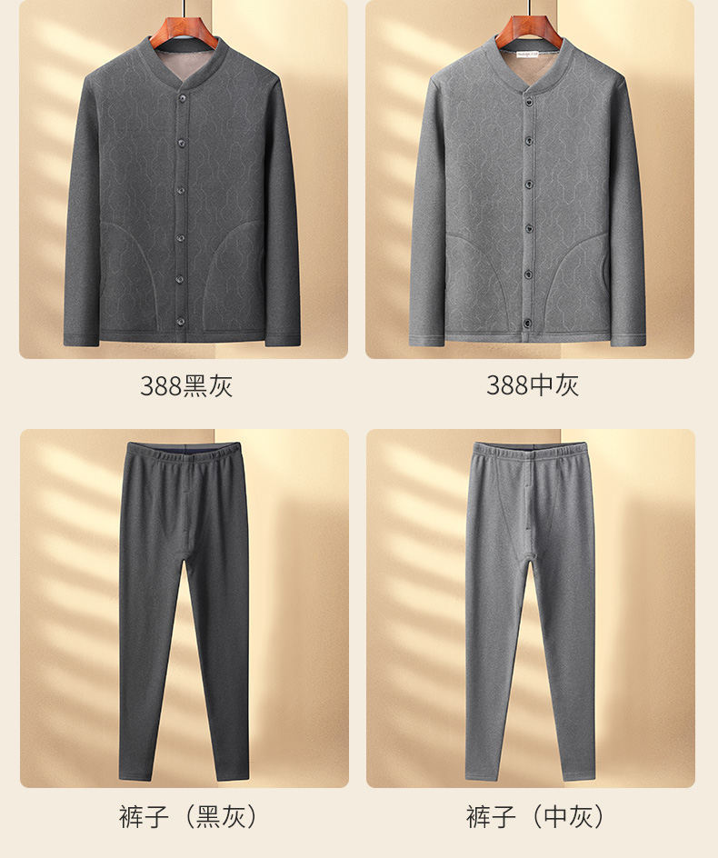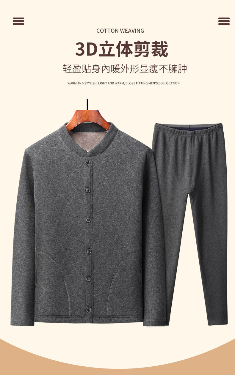冬季【中老年男装保暖开衫棉衣】加绒加厚棉袄外穿 老人爸爸冬季内搭套装