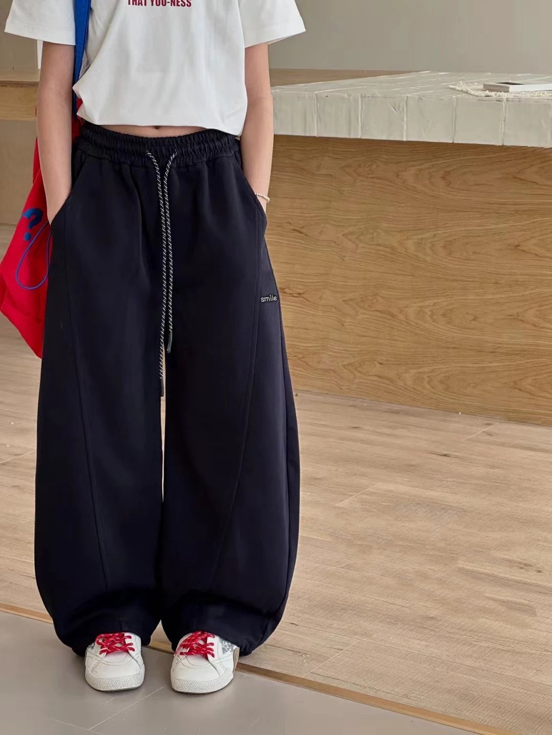 男女宝通穿的神仙卫裤!弯刀版型,双用裤脚,区别于普通卫裤,我们对卫裤的版型拿捏稳稳的,上身舒服又洋气!!