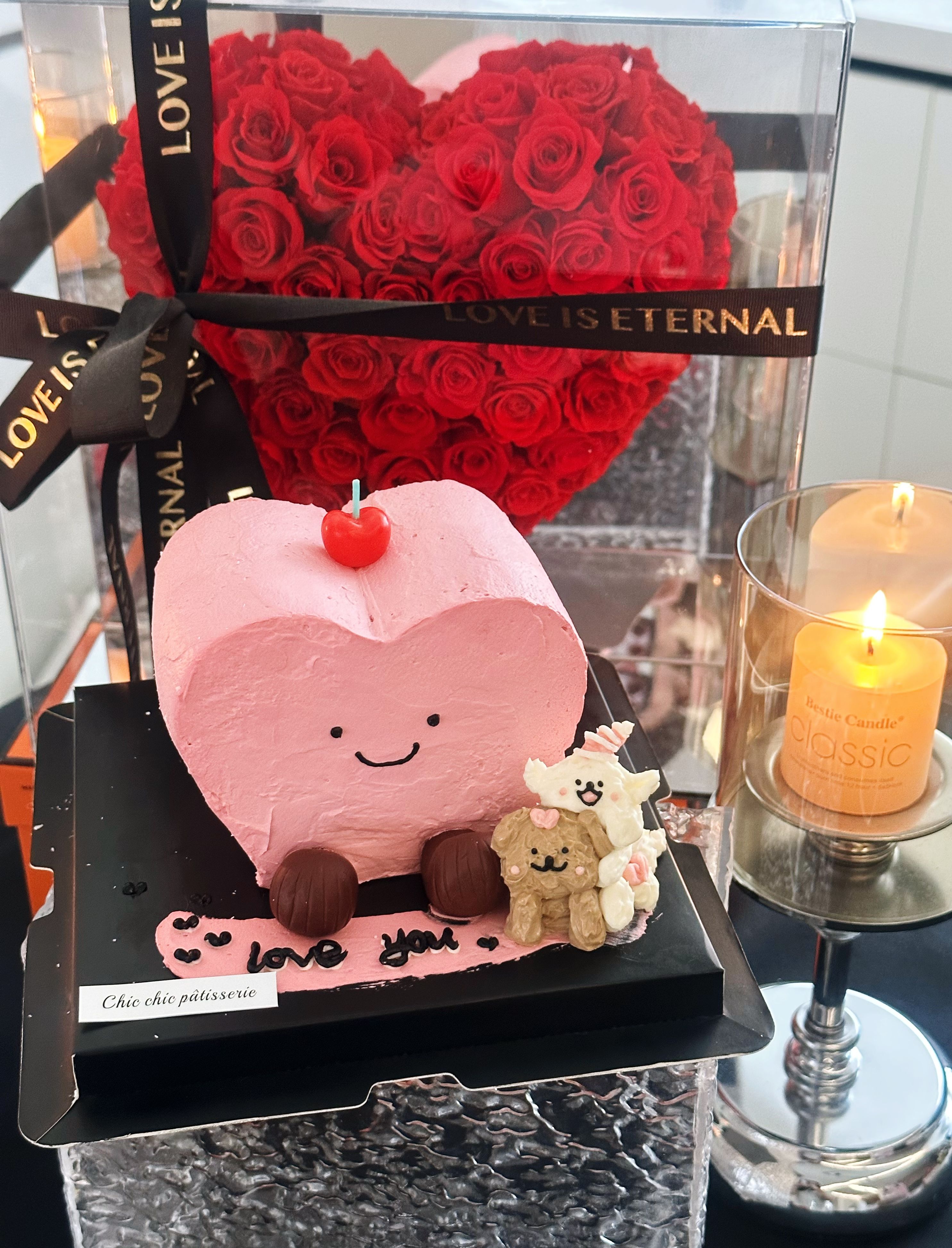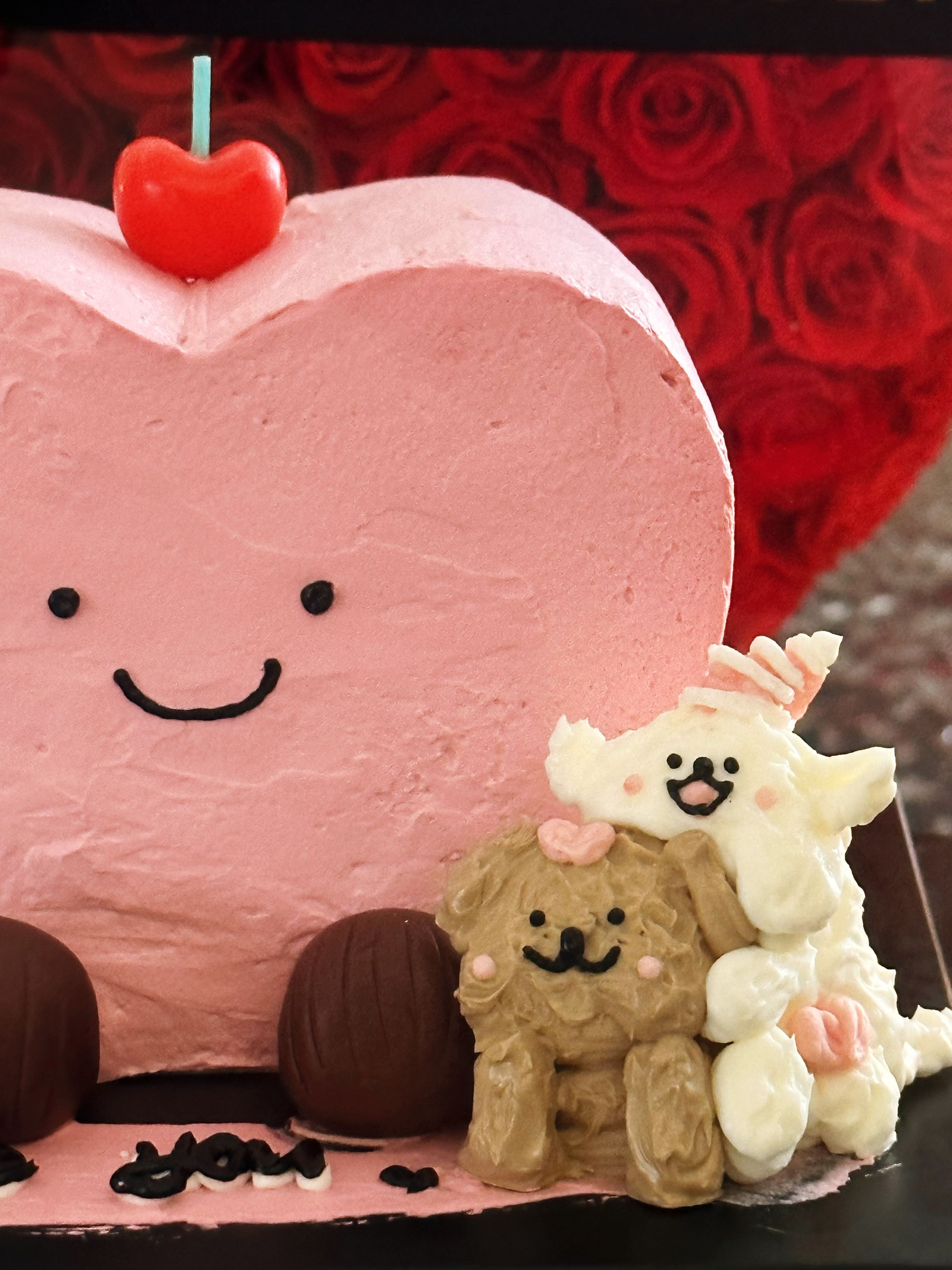 粉色爱心小狗贴贴蛋糕 | 昔果