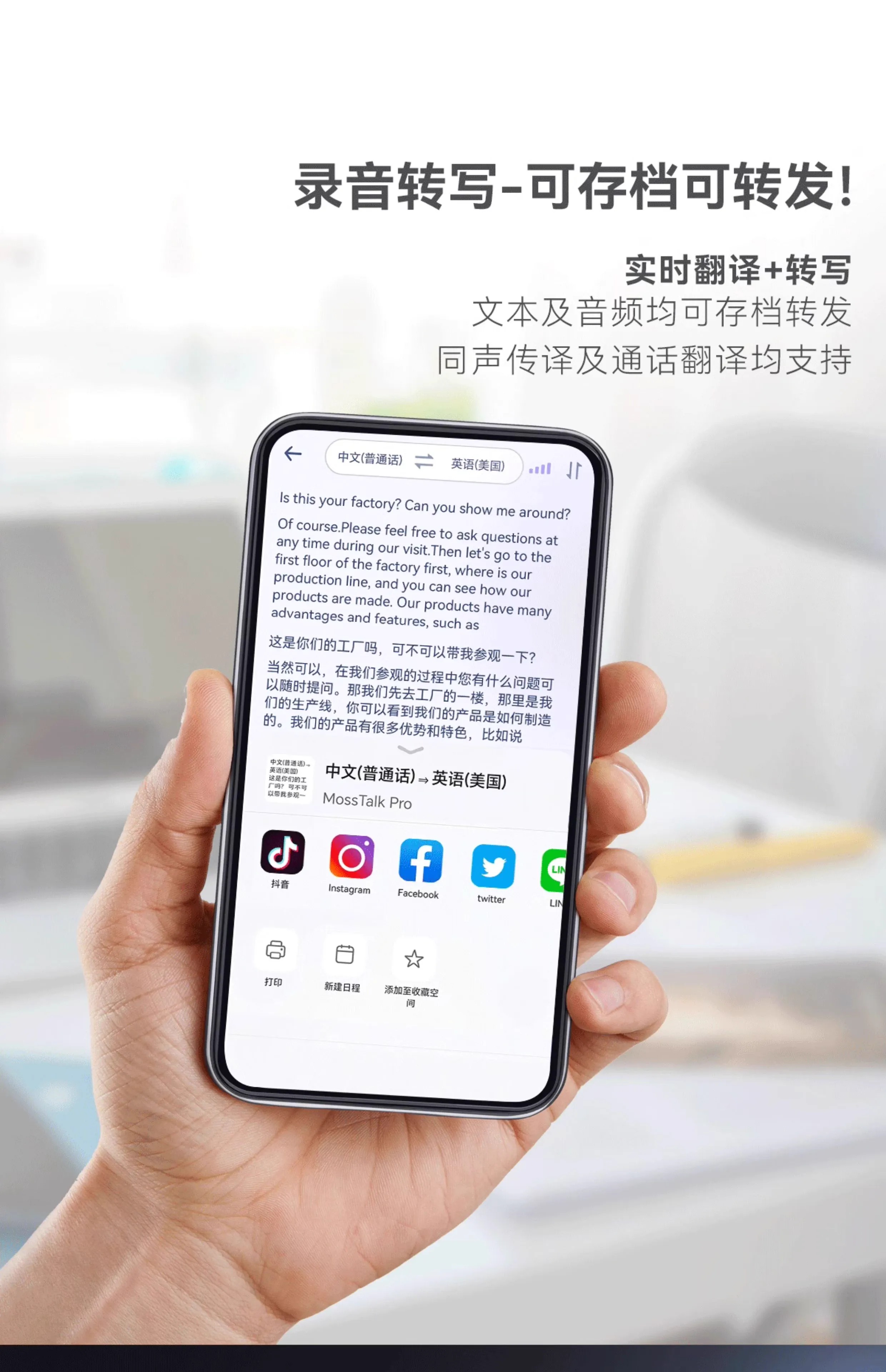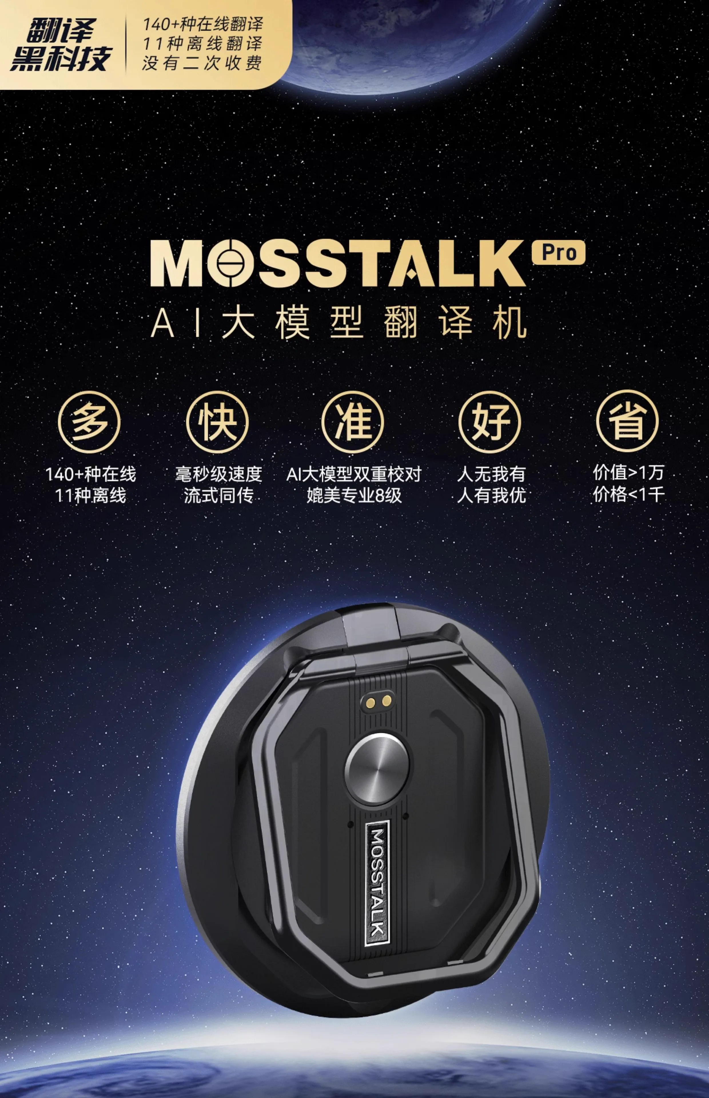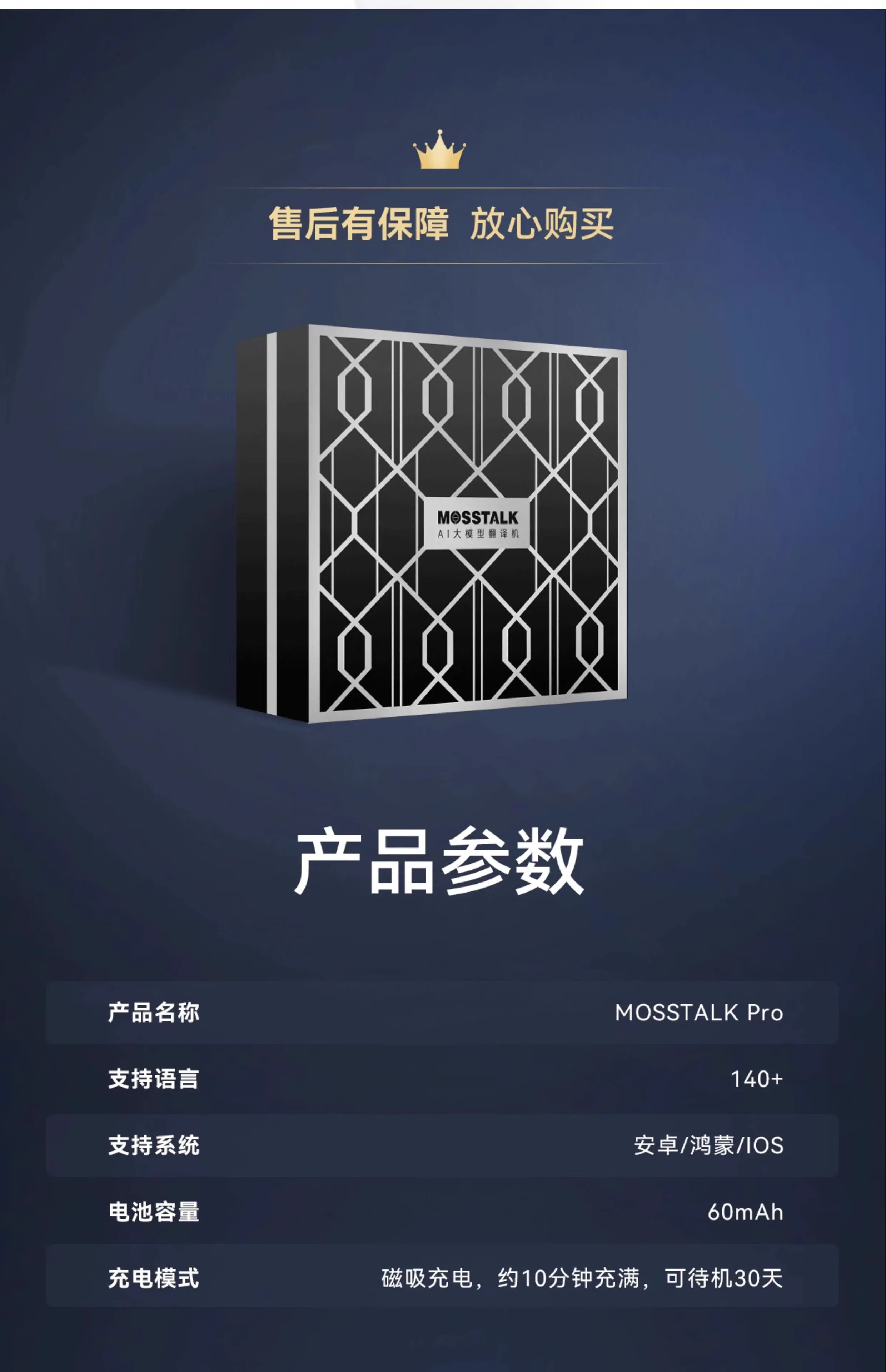 最新款!【语音视频实时翻译 】MOSSTALK PRO打电话翻译器AI微信视频翻译机蓝牙语音同声实时翻译智能远程通话