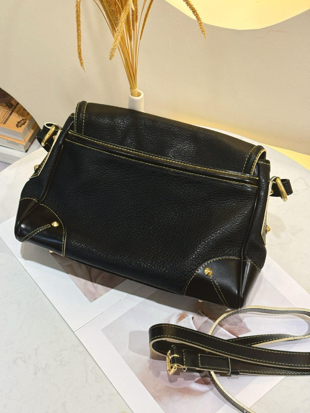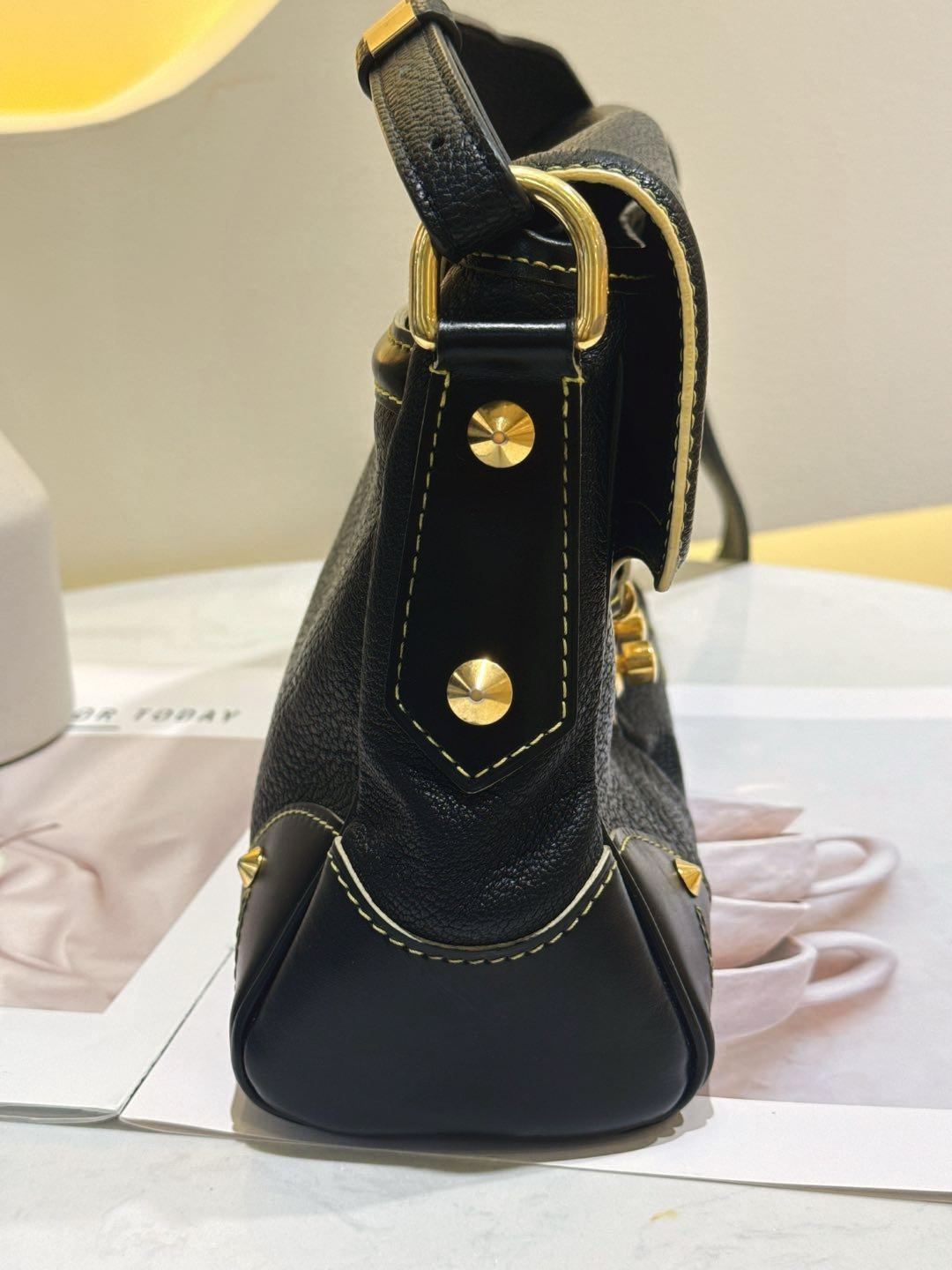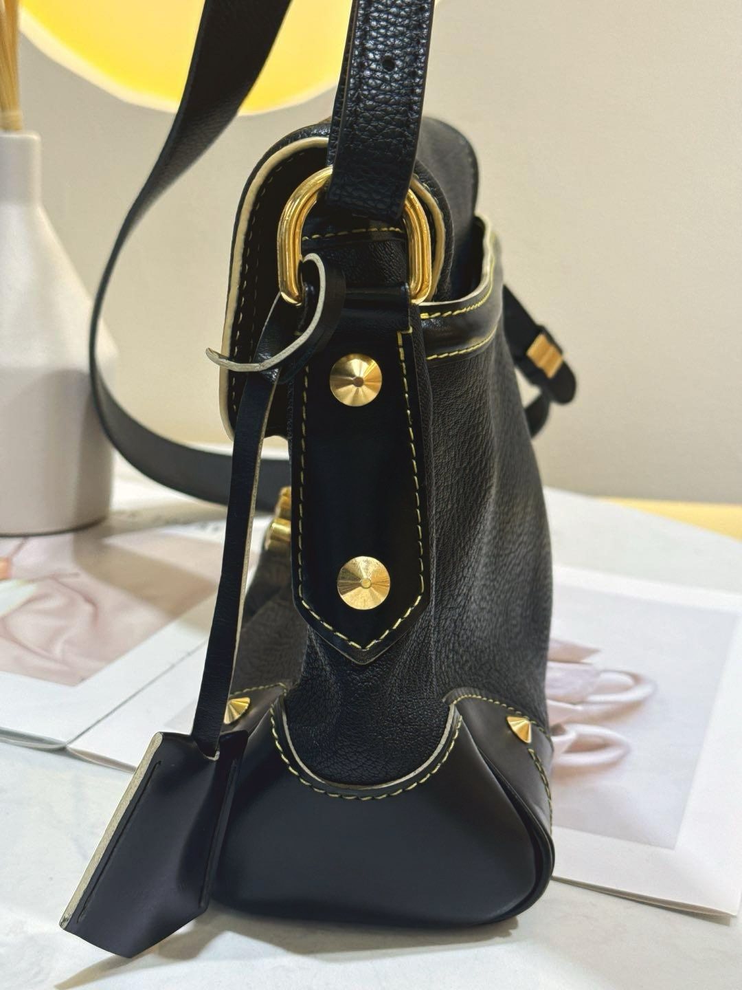 【商品詳情】正品二手 LV 中古 黑金 苏哈里 羊皮 斜挎包🍖 95新 30*19 配件:肩带。包扣五金有使用摩擦 包底角配皮有一处正常使用压痕。绝版限量好成色