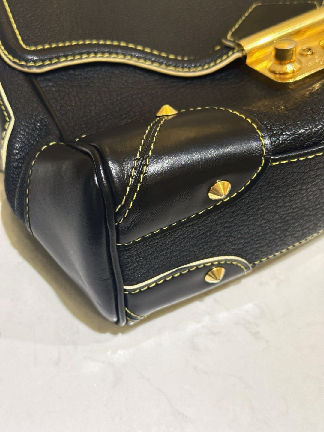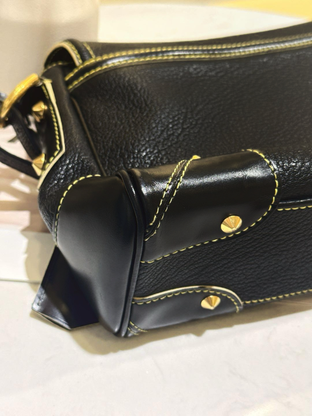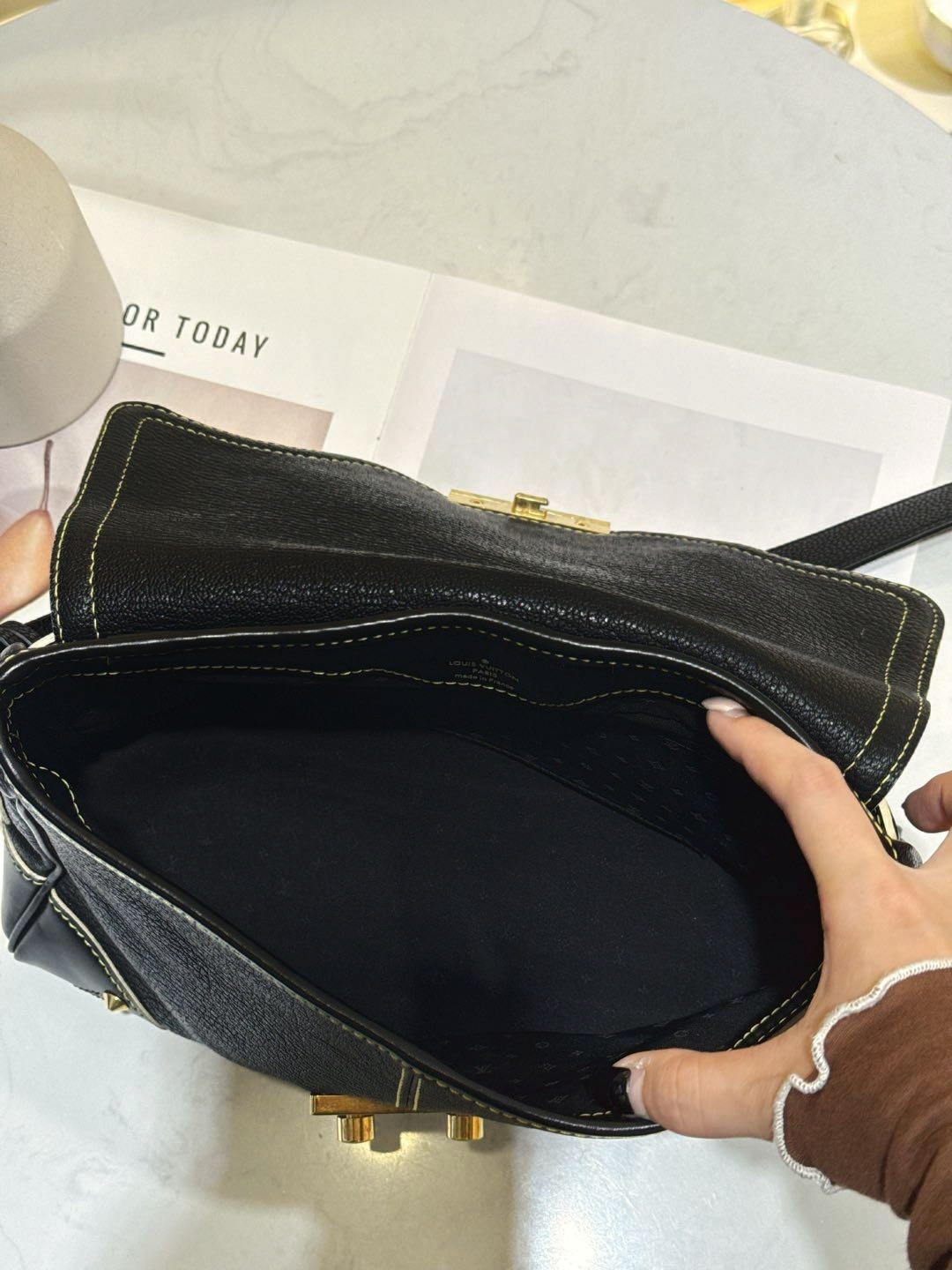 【商品詳情】正品二手 LV 中古 黑金 苏哈里 羊皮 斜挎包🍖 95新 30*19 配件:肩带。包扣五金有使用摩擦 包底角配皮有一处正常使用压痕。绝版限量好成色