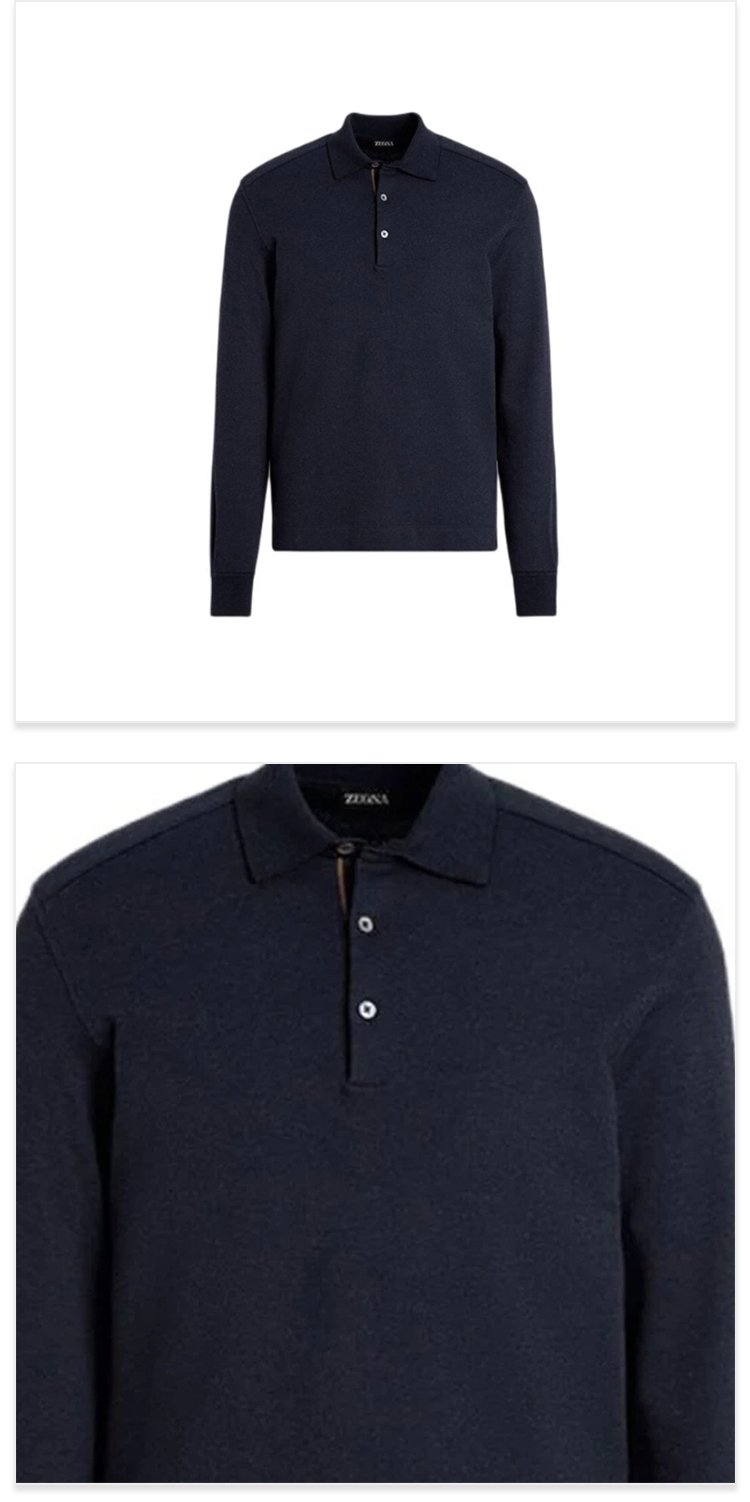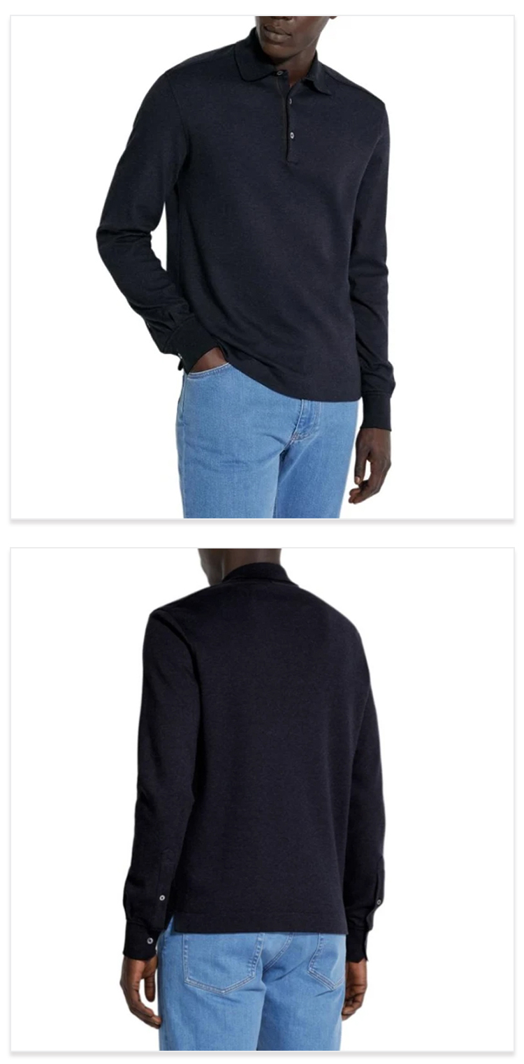 ZEGNA 杰尼亚 男士棉质长袖polo衫 蓝色 UE394A8 E739 B09