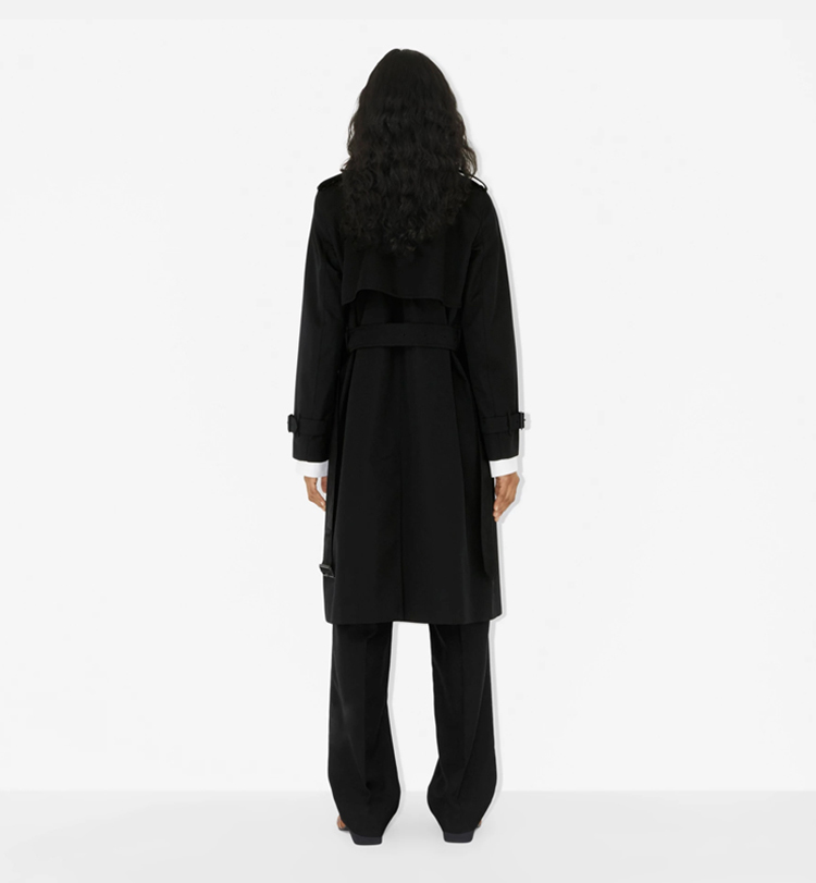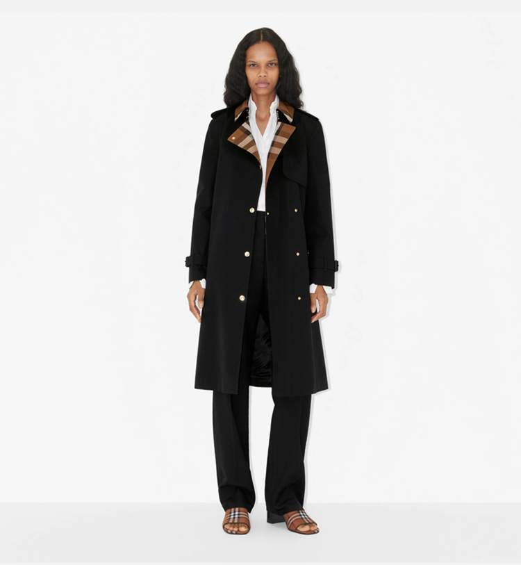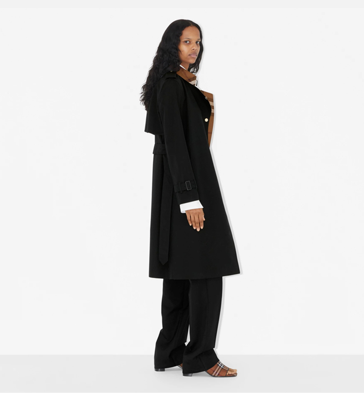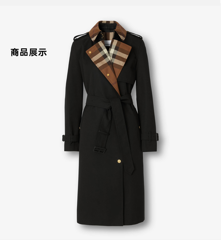 BURBERRY 巴宝莉 女士格纹裁片棉质嘎巴甸 Trench 风衣 黑色 8060739 A1189