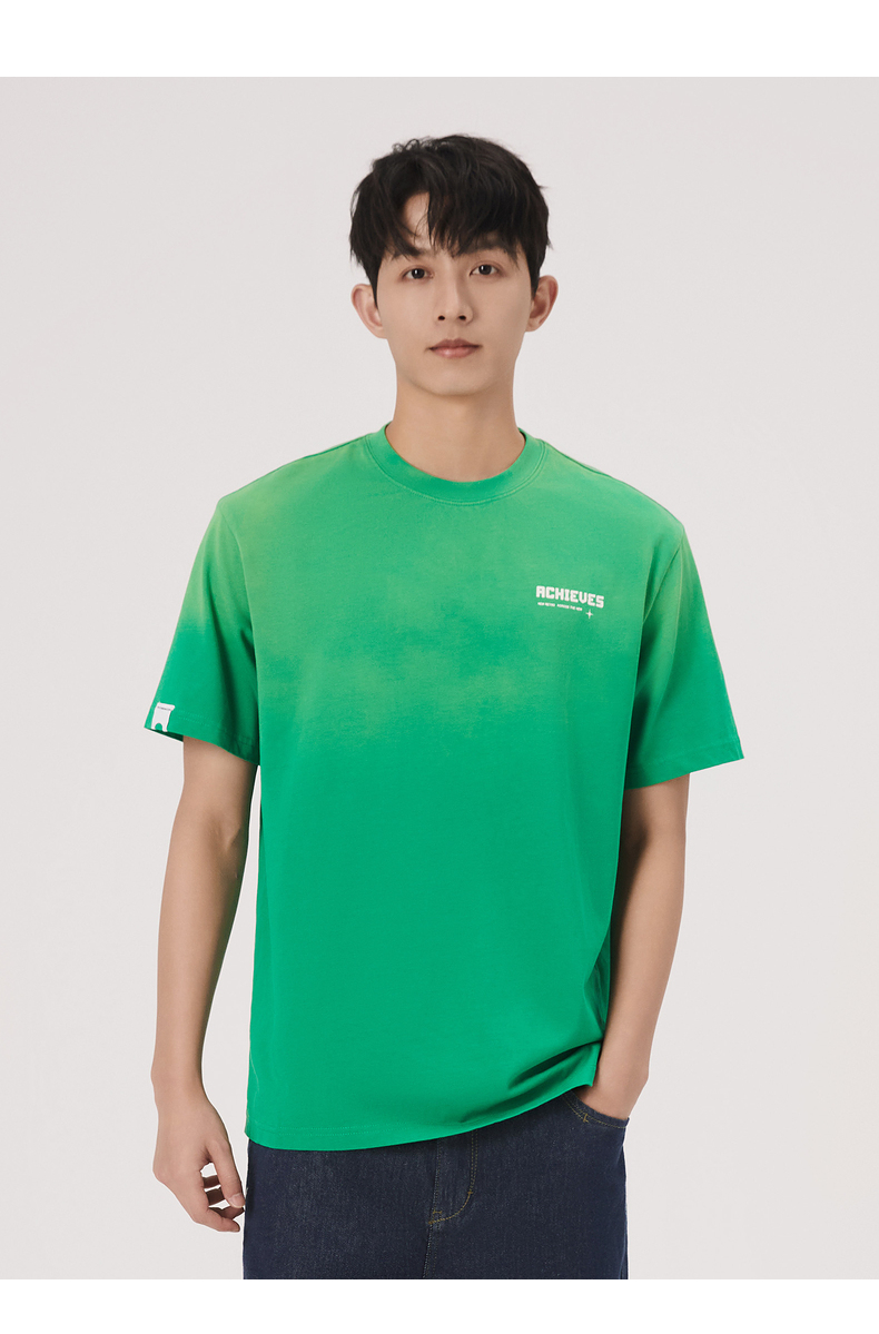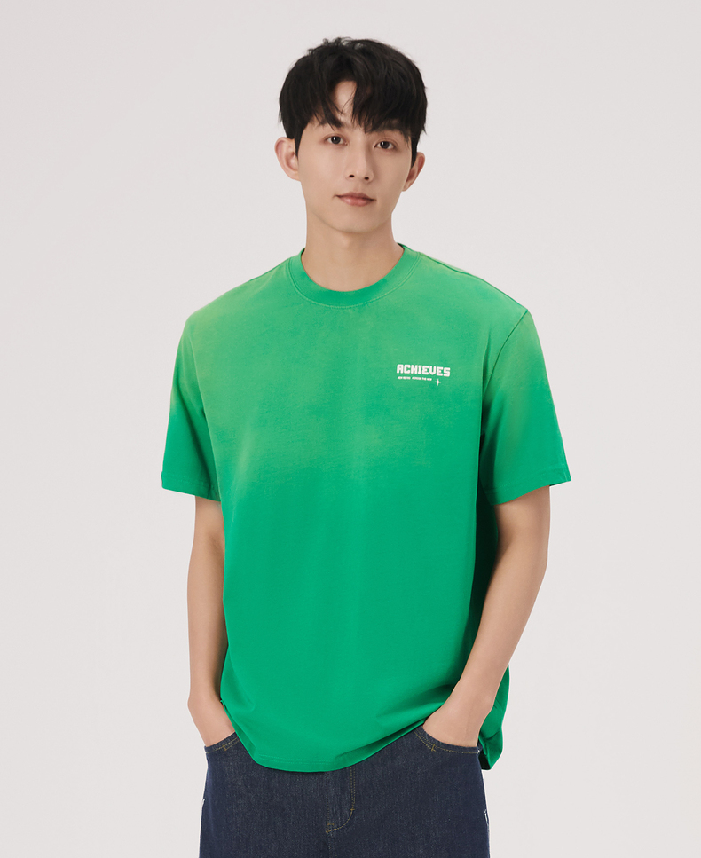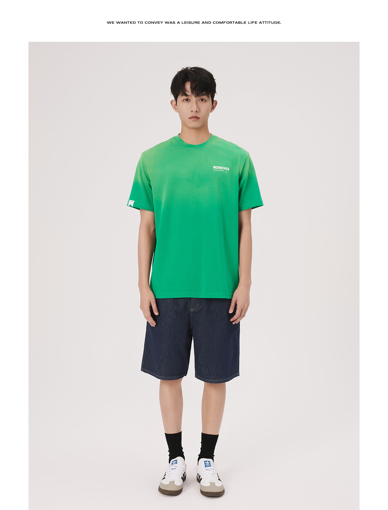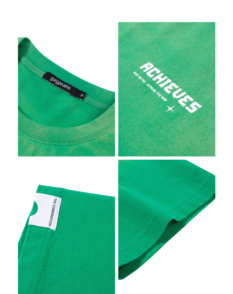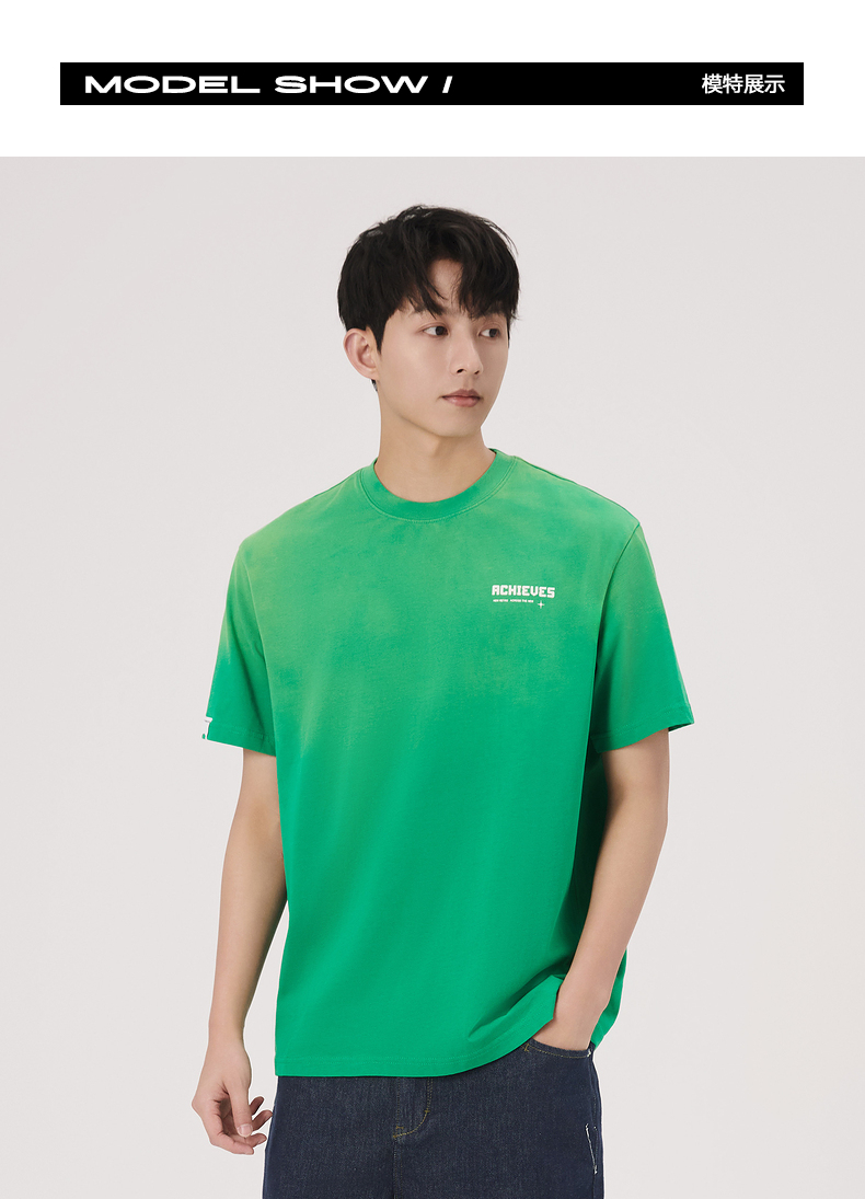 gxgjeans男装265g重磅短袖T恤男夏季宽松圆领绿色体恤11E1440079BT恤