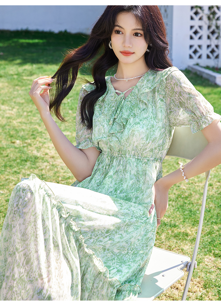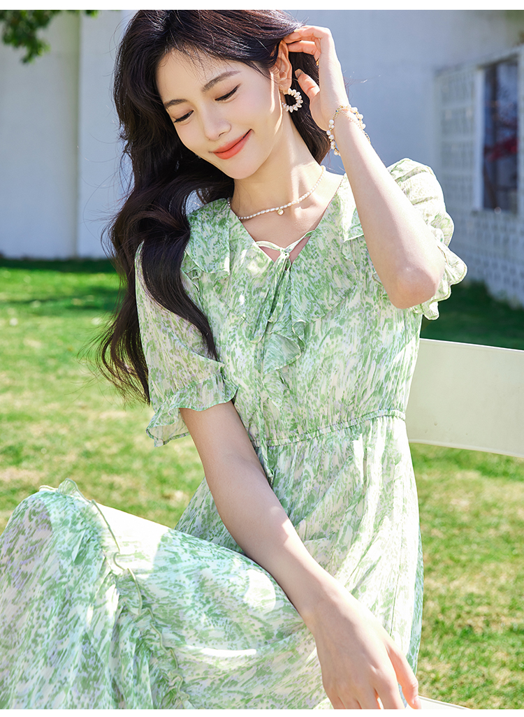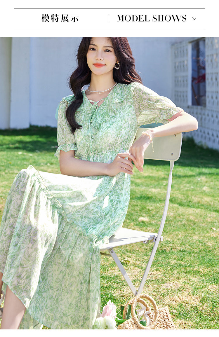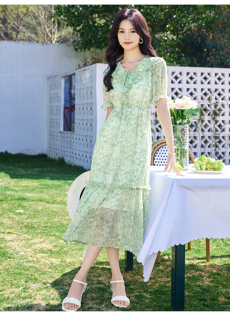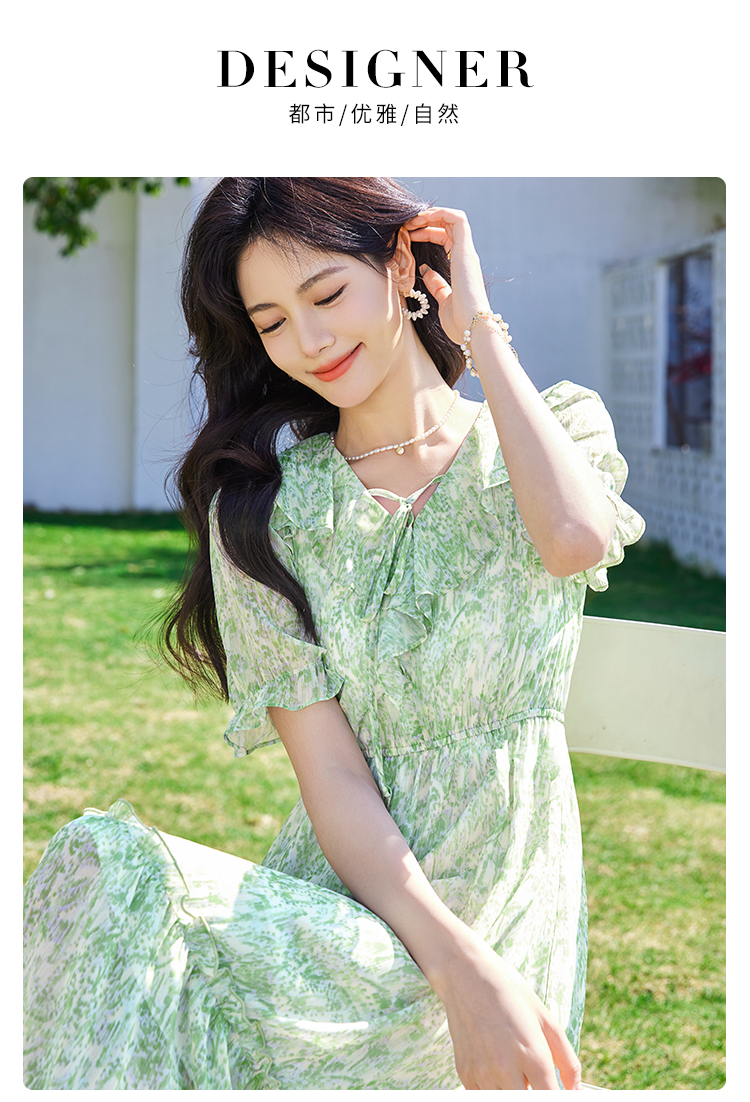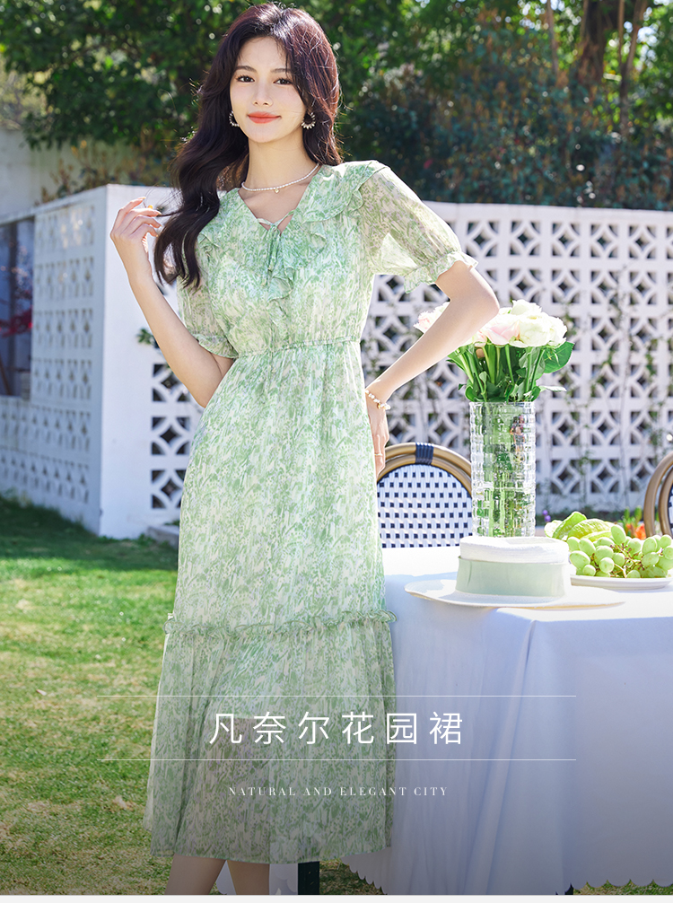 【专属特价】熙世界浪漫清新碎花连衣裙女法式荷叶边雪纺仙女裙子2025夏季新款
