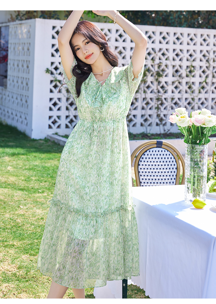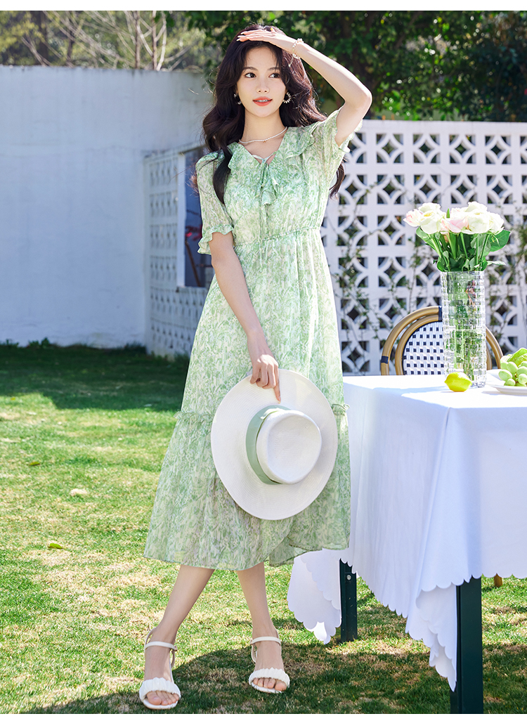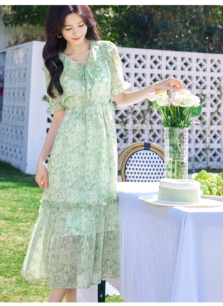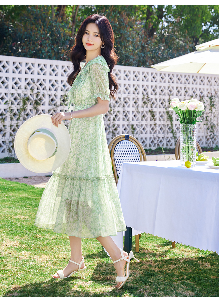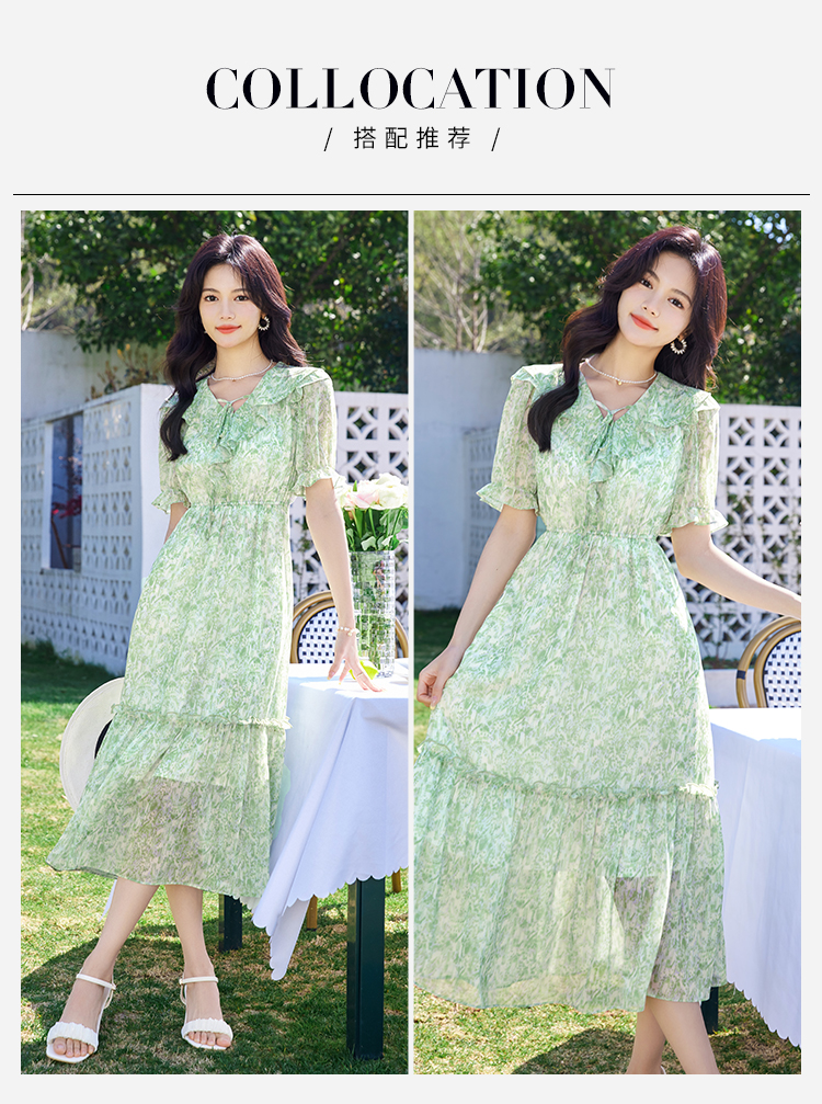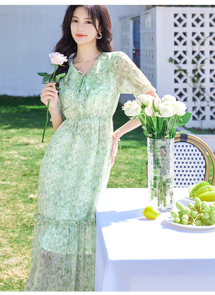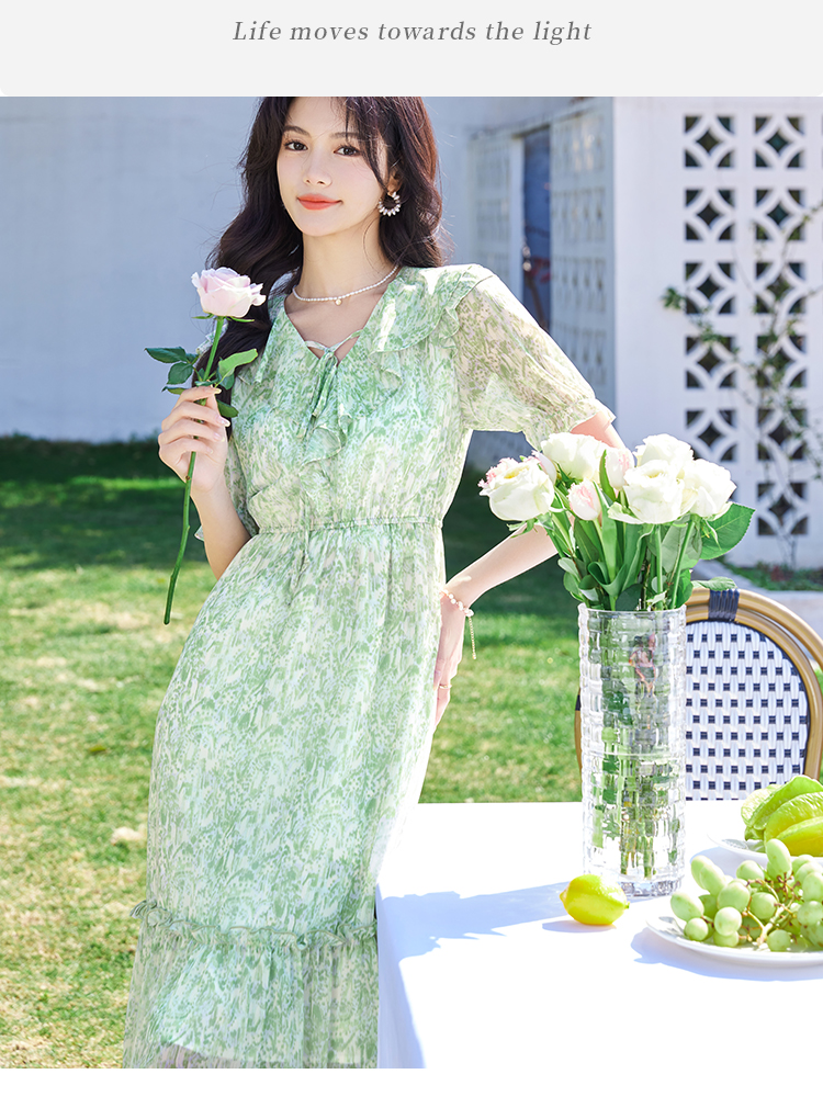 【专属特价】熙世界浪漫清新碎花连衣裙女法式荷叶边雪纺仙女裙子2025夏季新款
