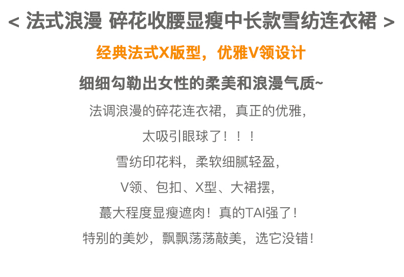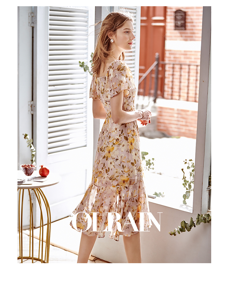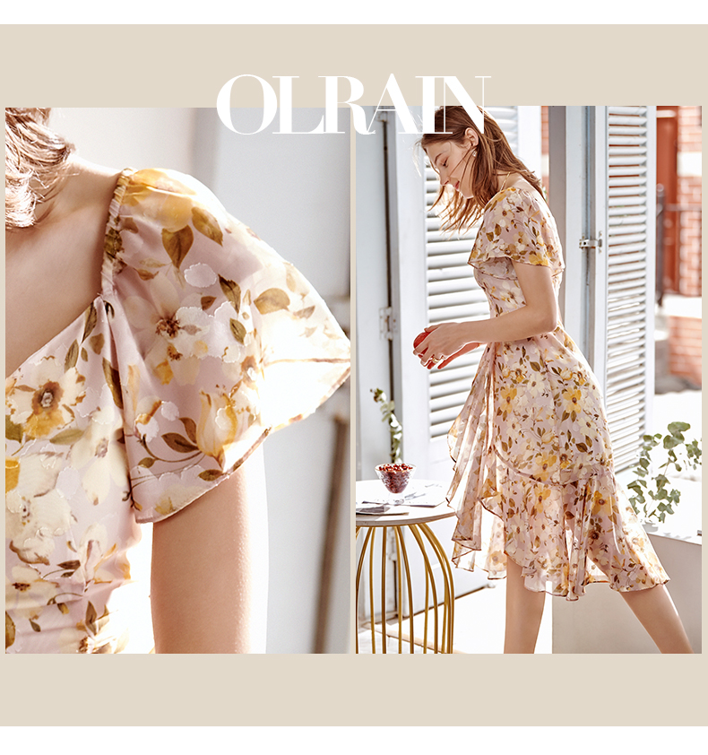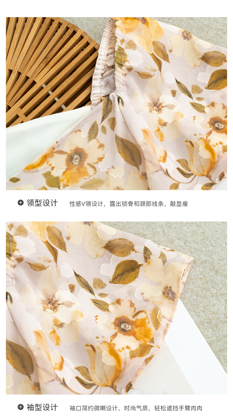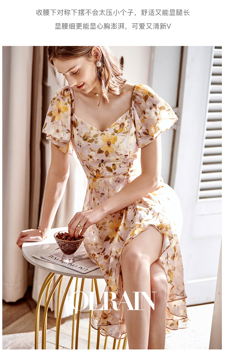 欧芮儿碎花雪纺连衣裙2021新款夏收腰显瘦法式优雅复古V领中长裙