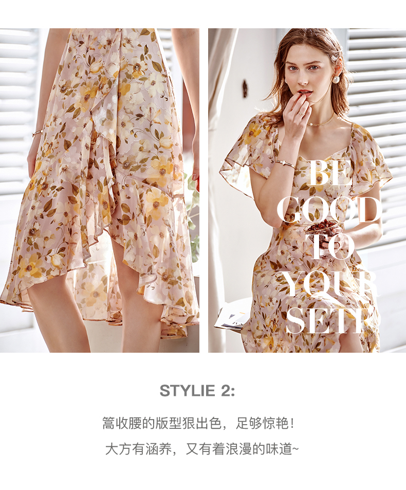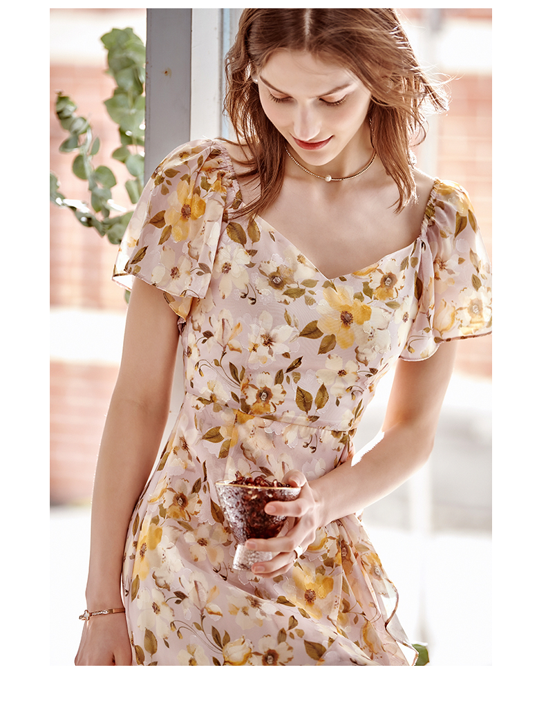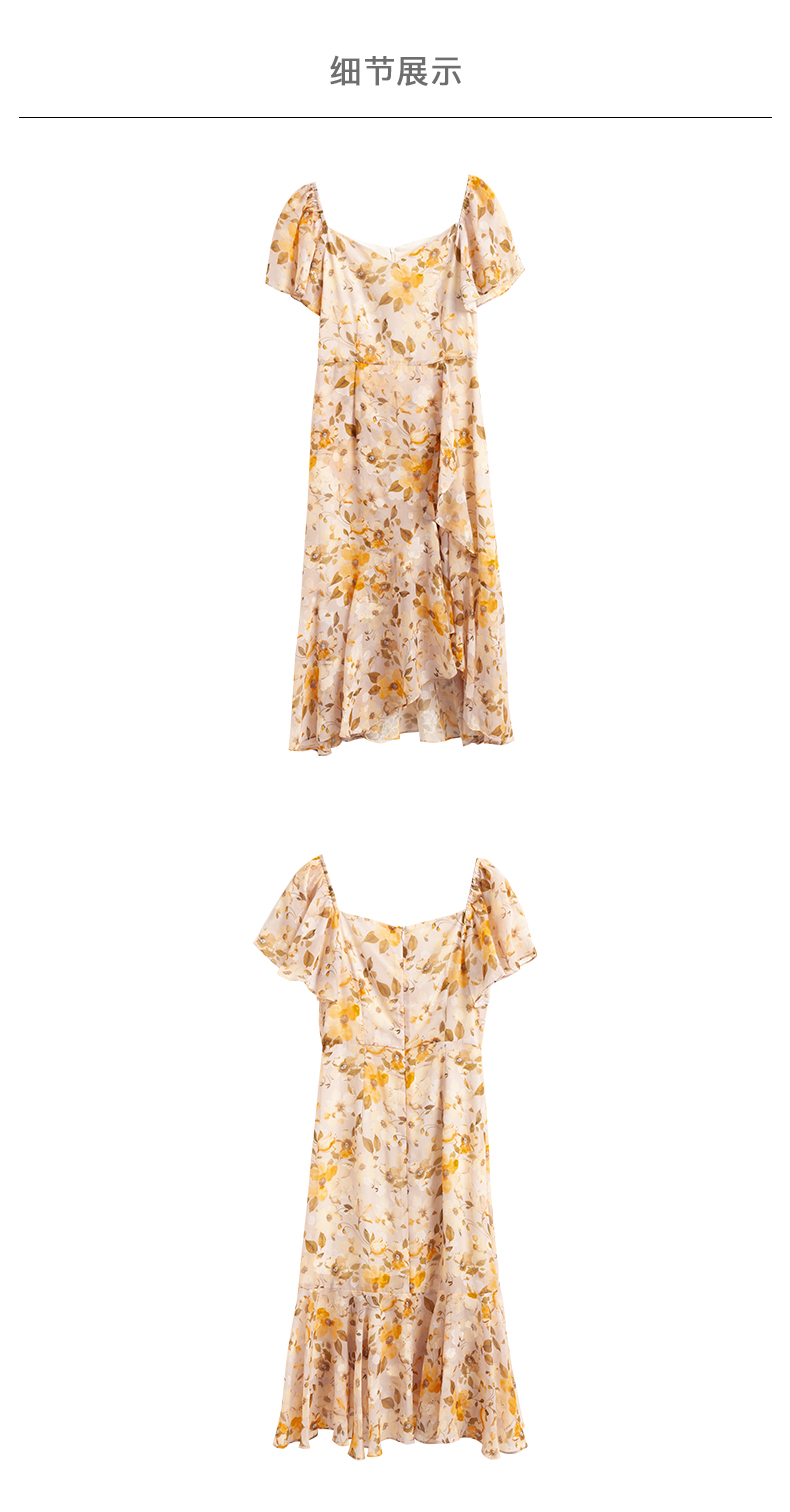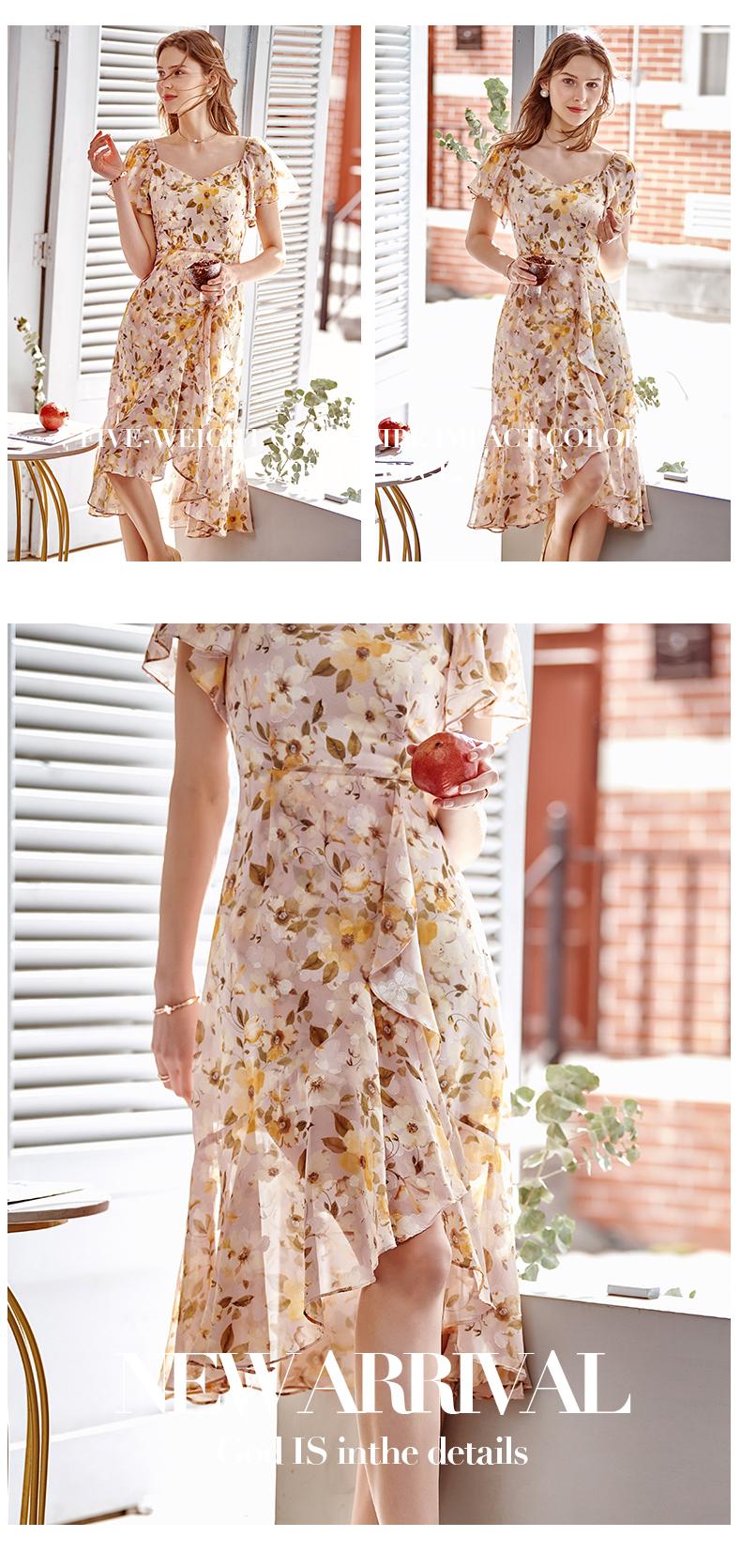 欧芮儿碎花雪纺连衣裙2021新款夏收腰显瘦法式优雅复古V领中长裙