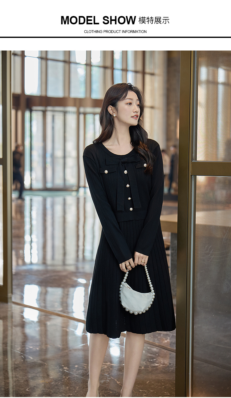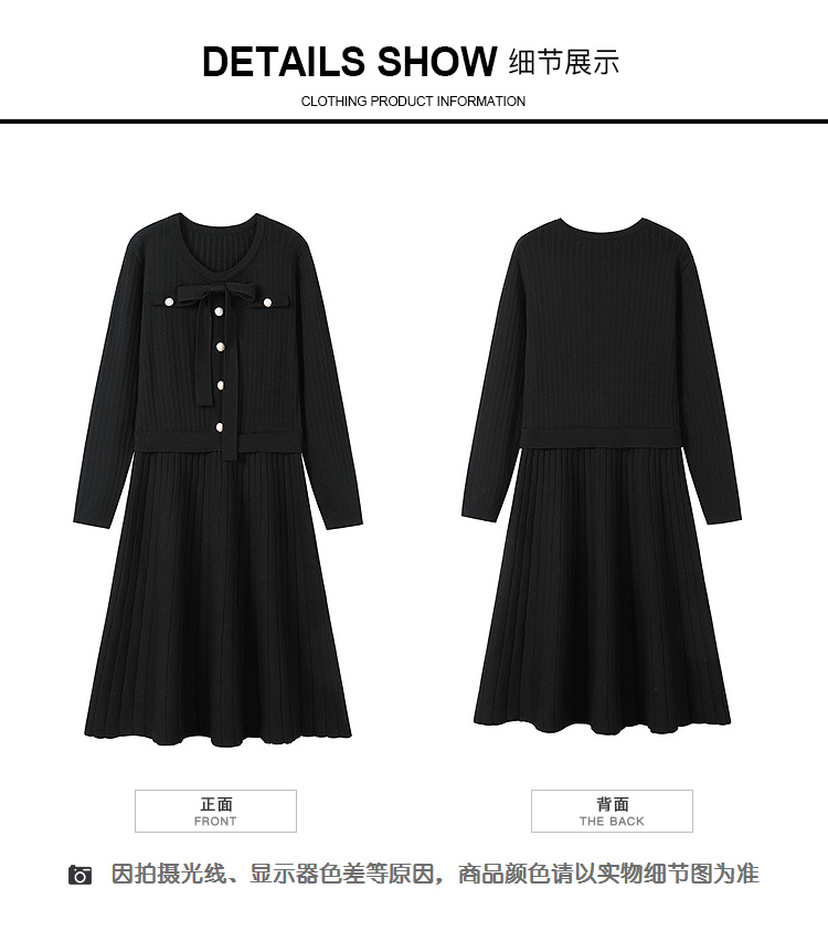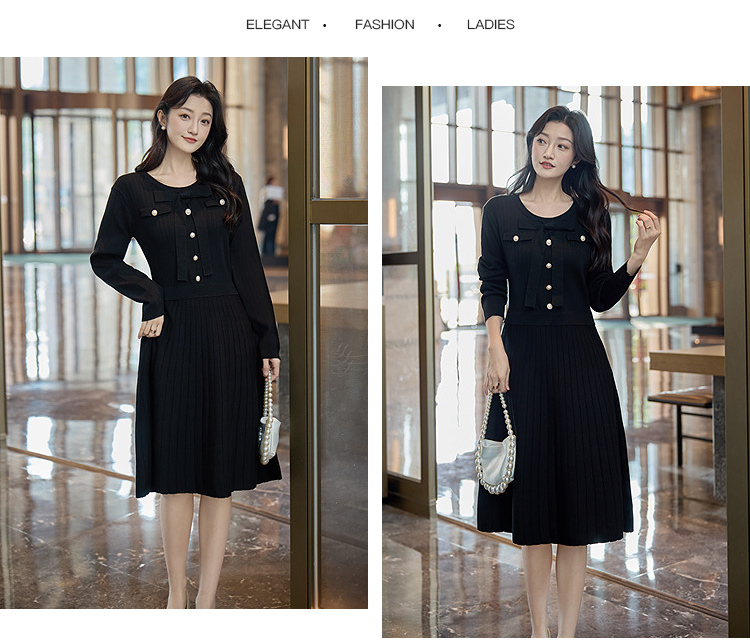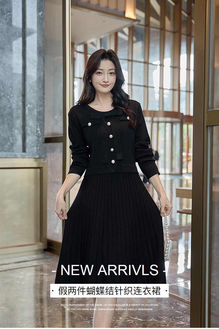 奢姿2025冬季大码毛衣连衣裙女假两件蝴蝶结珍珠扣针织裙气质款9154870531