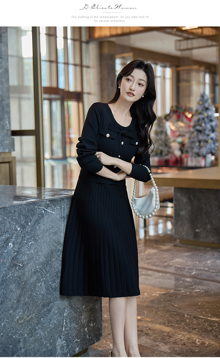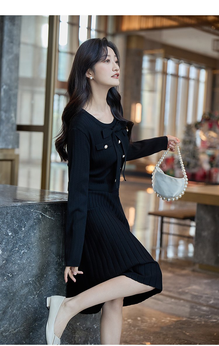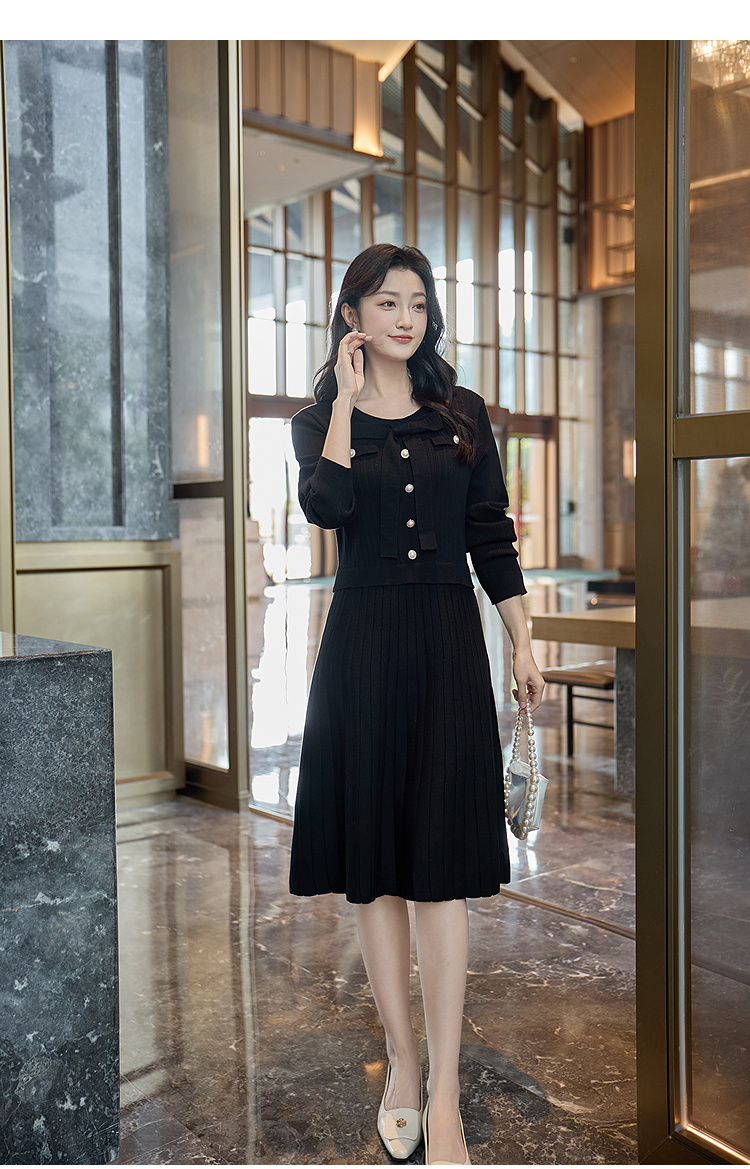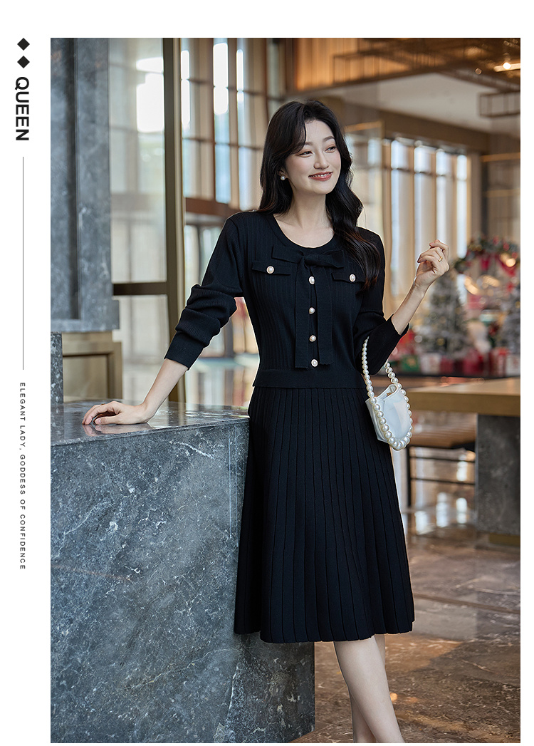 奢姿2025冬季大码毛衣连衣裙女假两件蝴蝶结珍珠扣针织裙气质款9154870531