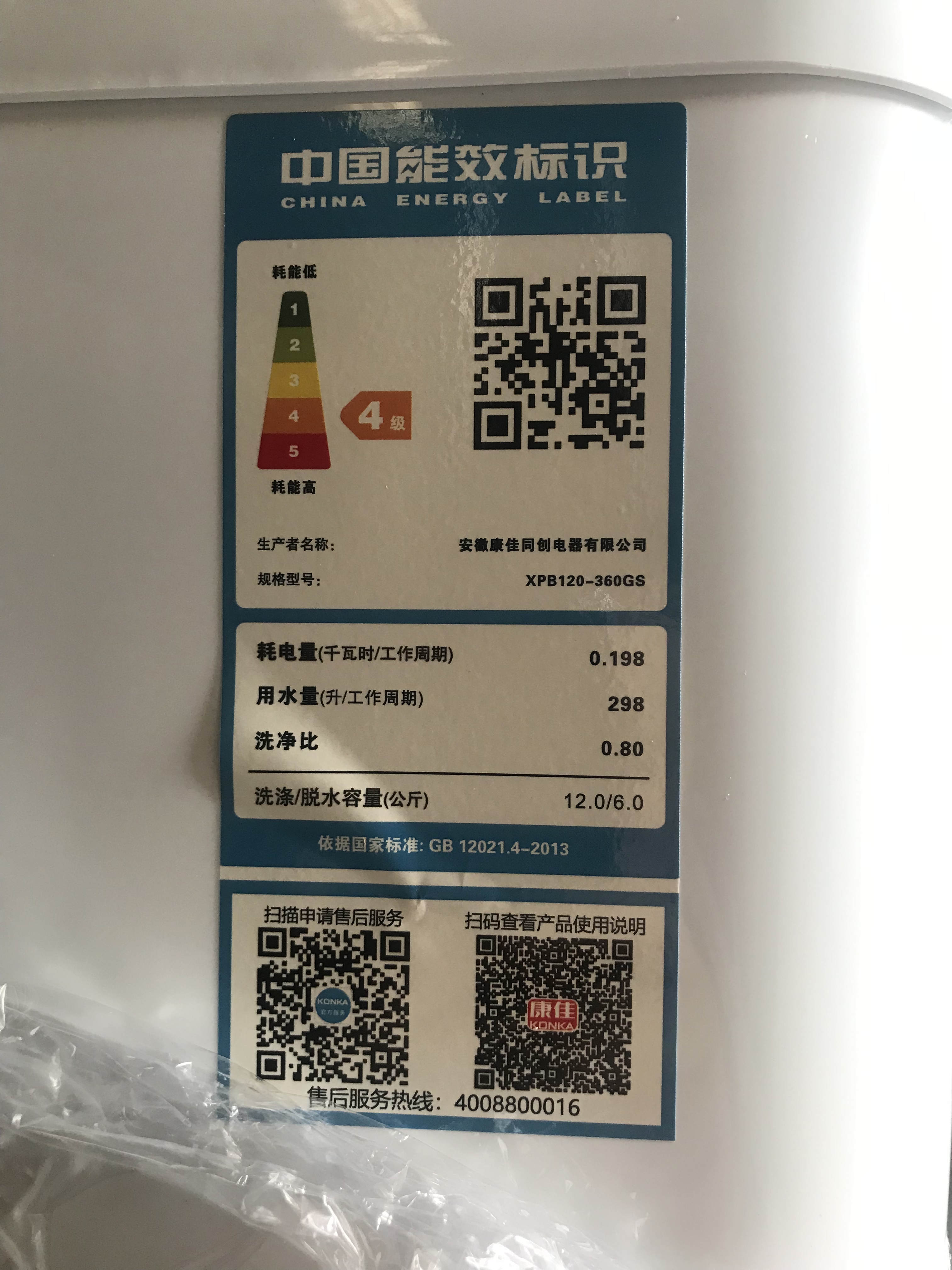 康佳 洗衣机 XPB120-360GS 12kg 双缸波轮洗衣机 不锈钢波轮内筒 大容量白色家 4级能效 控制方式 旋钮 电机类型 定频 净重 26Kg 转速 1300